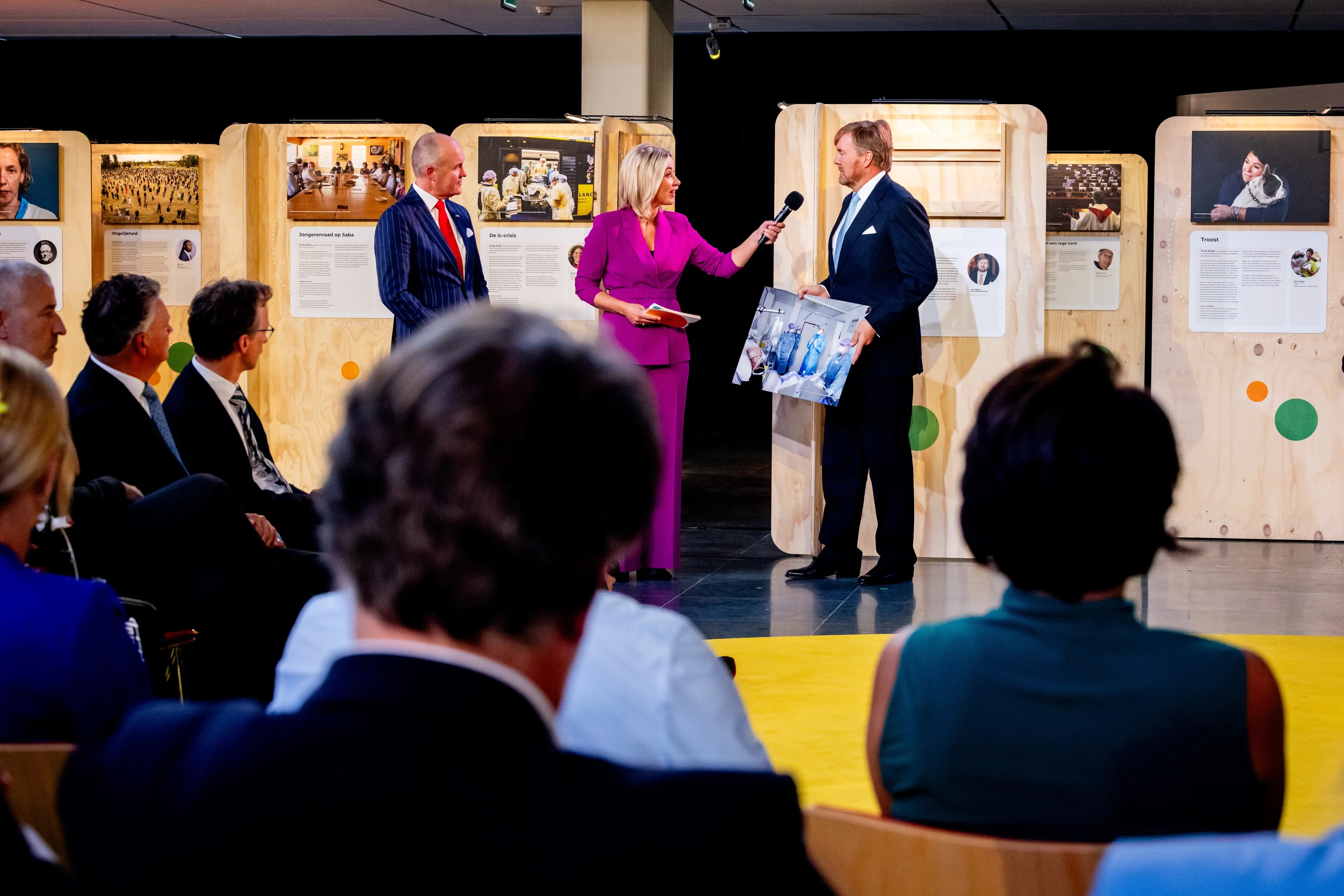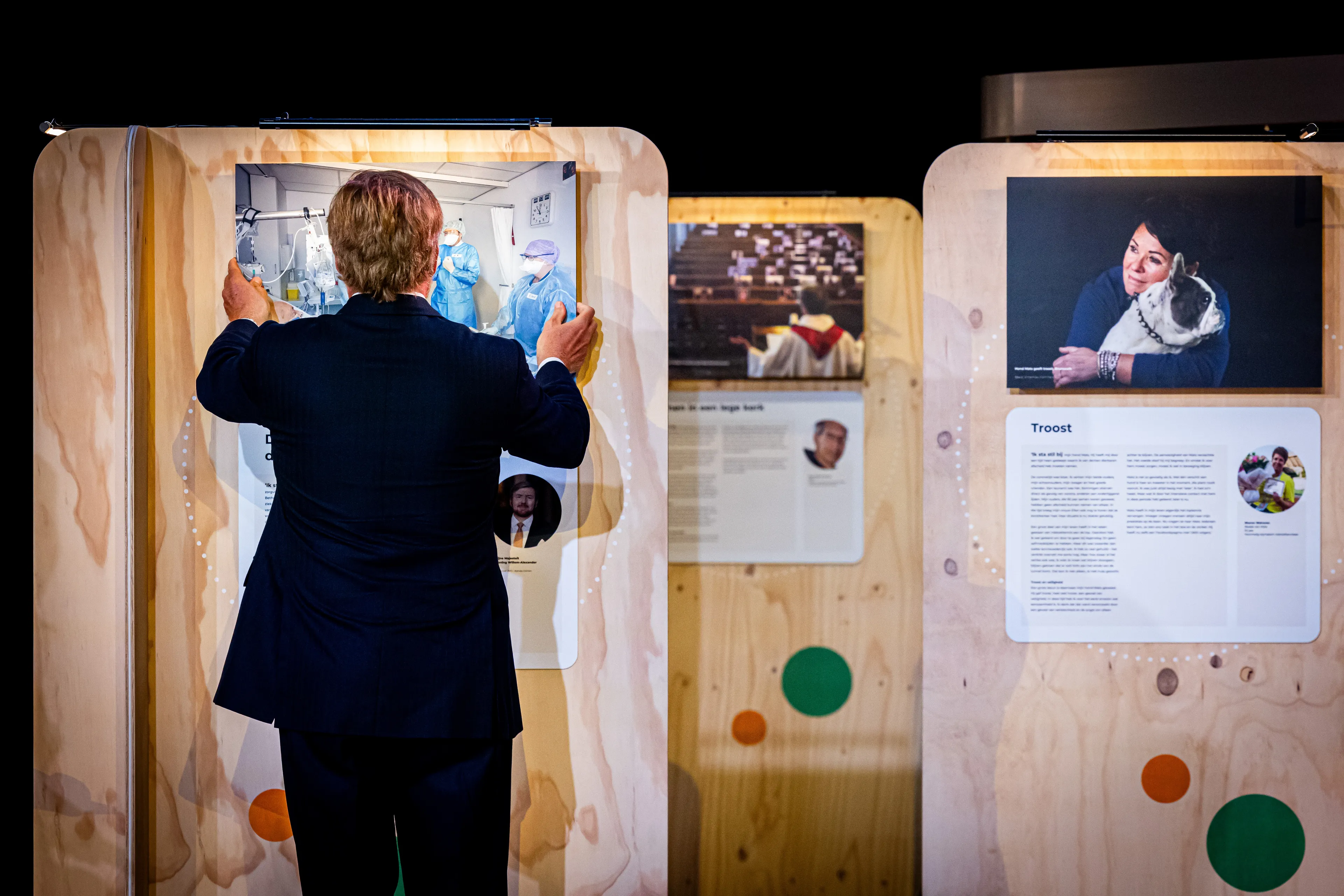 Koning Willem-Alexander heeft vrijdagmiddag de expositie Nationaal stilstaan bij corona geopend. In de tentoonstelling vertellen meer dan 40 mensen door middel van foto's over iemand die tijdens de pandemie indruk op hen heeft gemaakt. Dominee Evelijne Swinkels-Braaksma verzorgde tijdens de opening een levensbeschouwelijk moment.