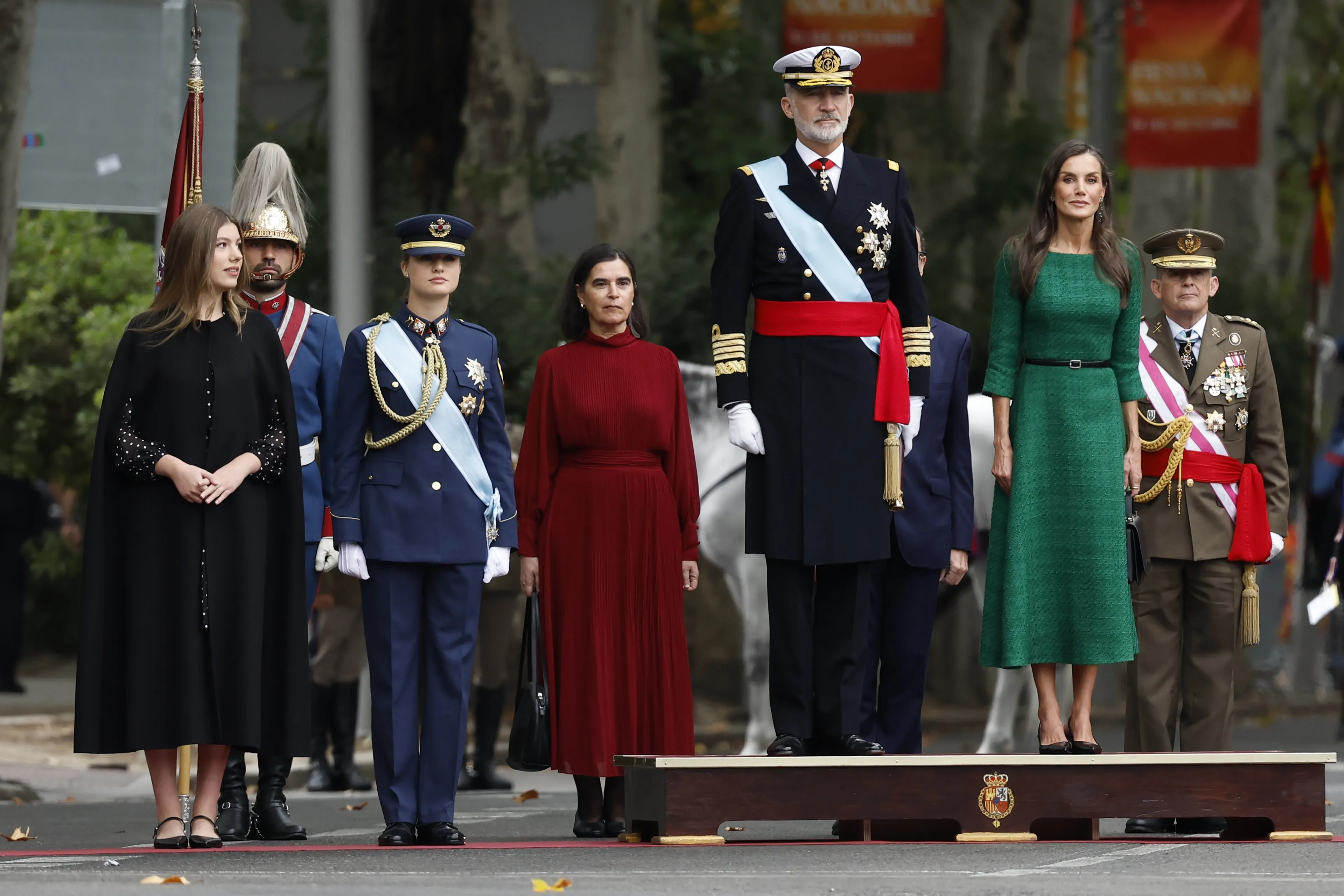 Koning Felipe, koningin Letizia en hun twee dochters prinses Leonor en prinses Sofía woonden zondag de festiviteiten bij in Madrid ter ere van de nationale feestdag. Waar prinses Sofía vorig jaar nog verstek moest laten gaan vanwege haar studie aan het UWC Atlantic College in Wales, was ze er deze keer gewoon bij. Haar oudere zus Leonor is inmiddels begonnen aan haar militaire opleiding bij de Spaanse luchtmacht, en ging dan ook gekleed in haar militaire uniform. Het was voor haar de tiende keer dat ze erbij was.