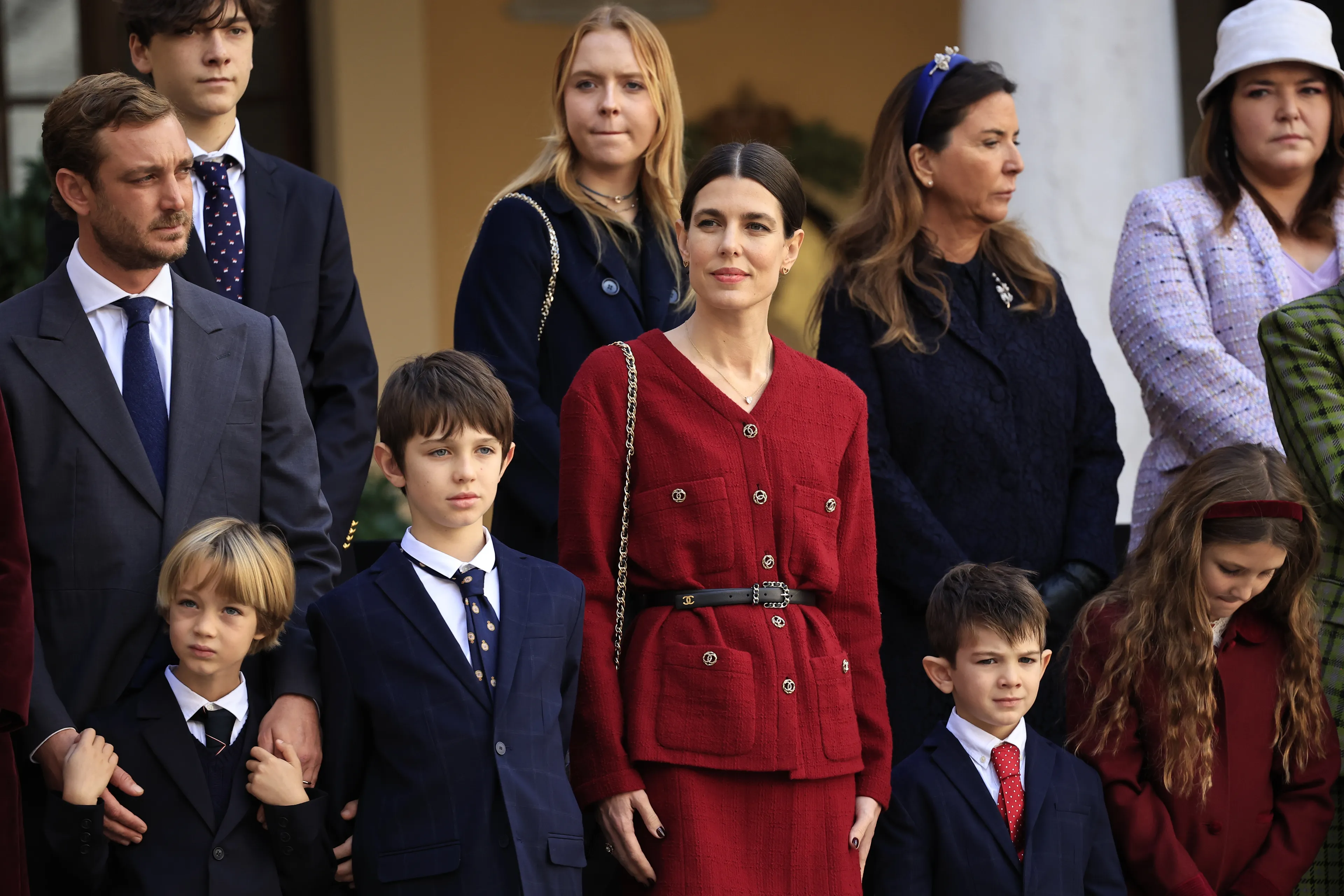 De Monegaskische royals zijn al jaren vaste klant van het Franse modehuis Chanel. Prinses Caroline en haar dochter Charlotte Casiraghi zijn beiden bevriend geweest met modeontwerper Karl Lagerfeld, die jarenlang het creatieve brein van Chanel was. Ook na zijn overlijden blijven de twee steevast Chanel dragen. Zo ook vandaag. Charlotte schittert in een tweed wol mantelpakje van Chanel in de kleur bordeauxrood.