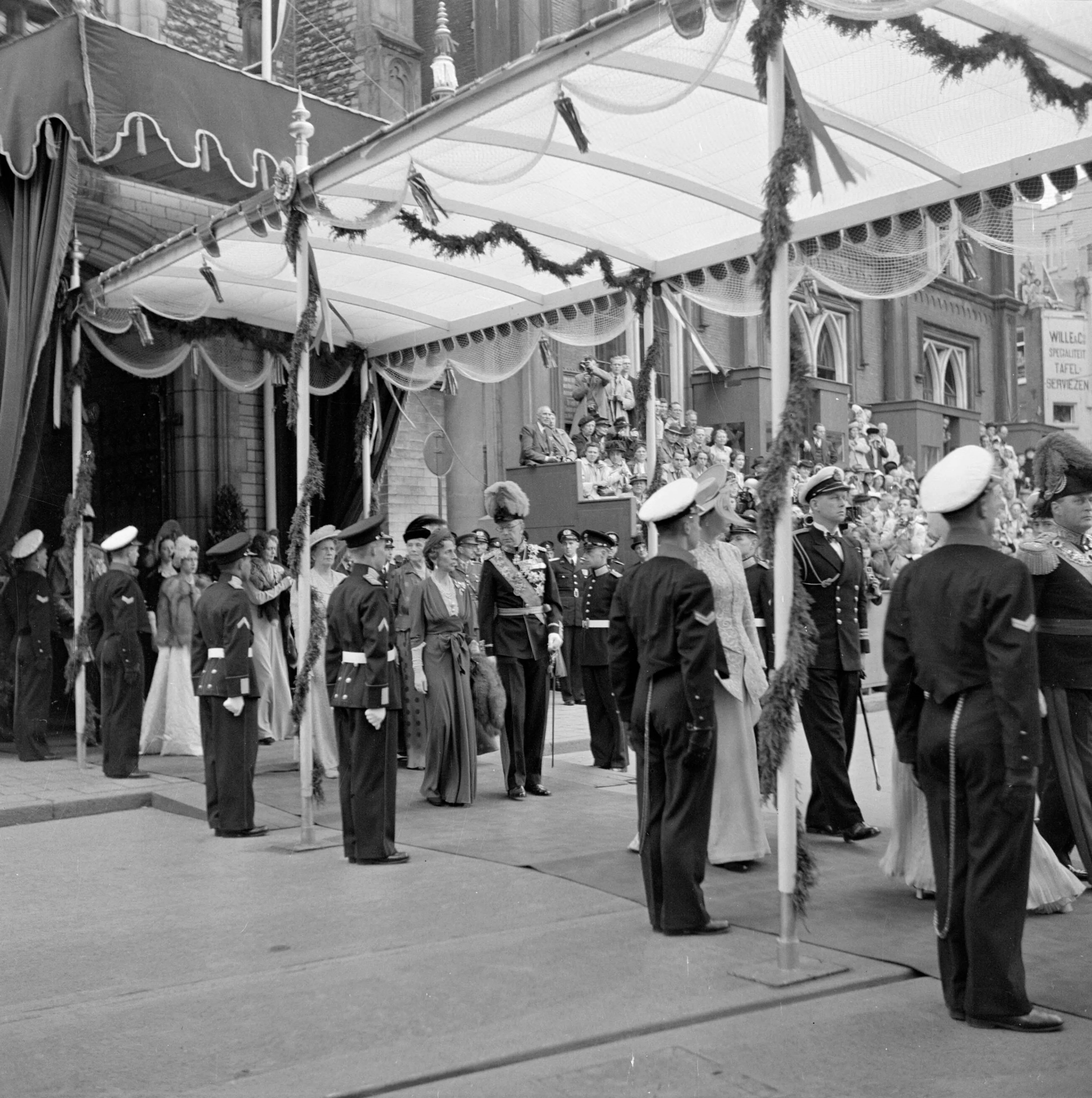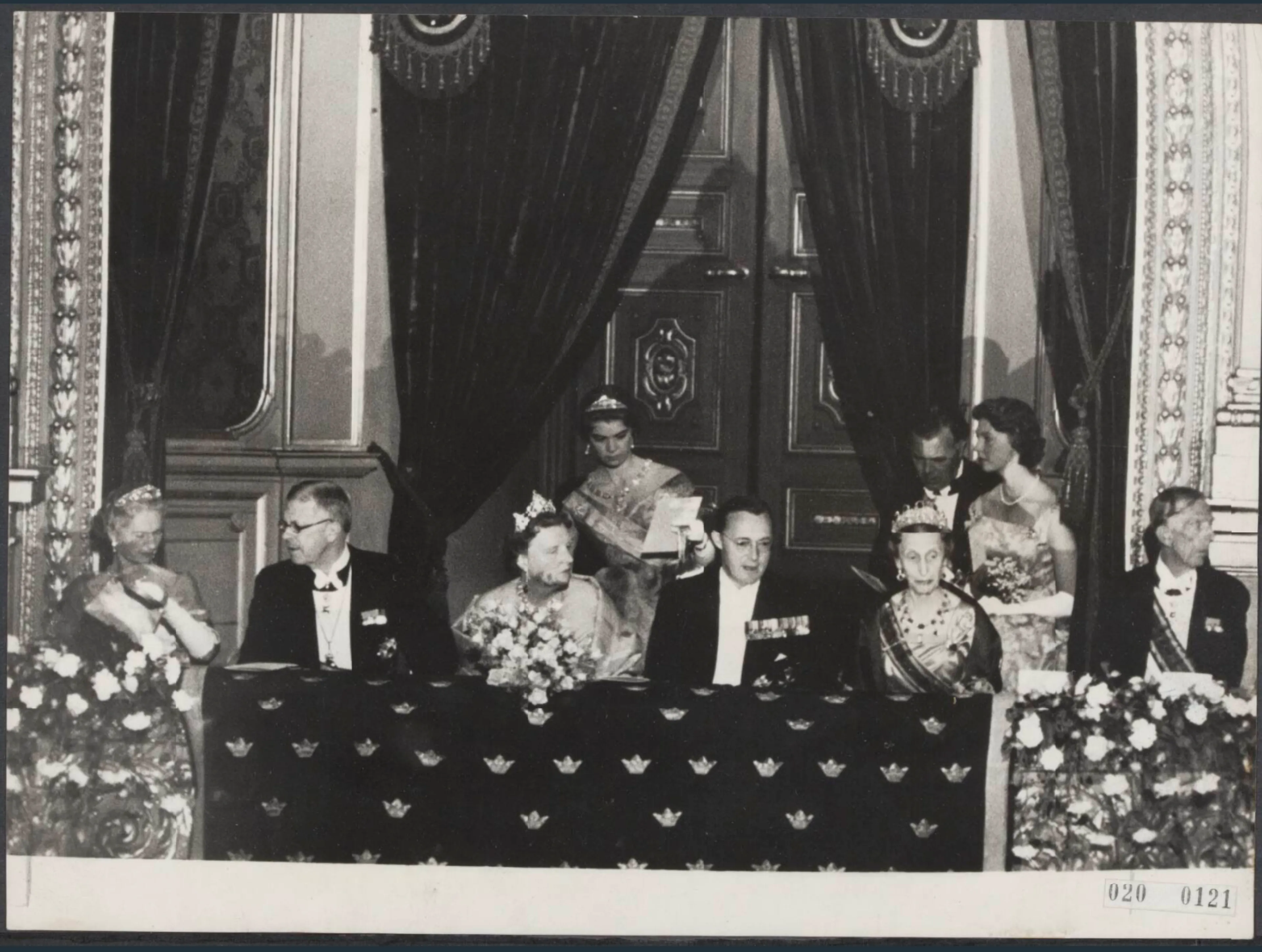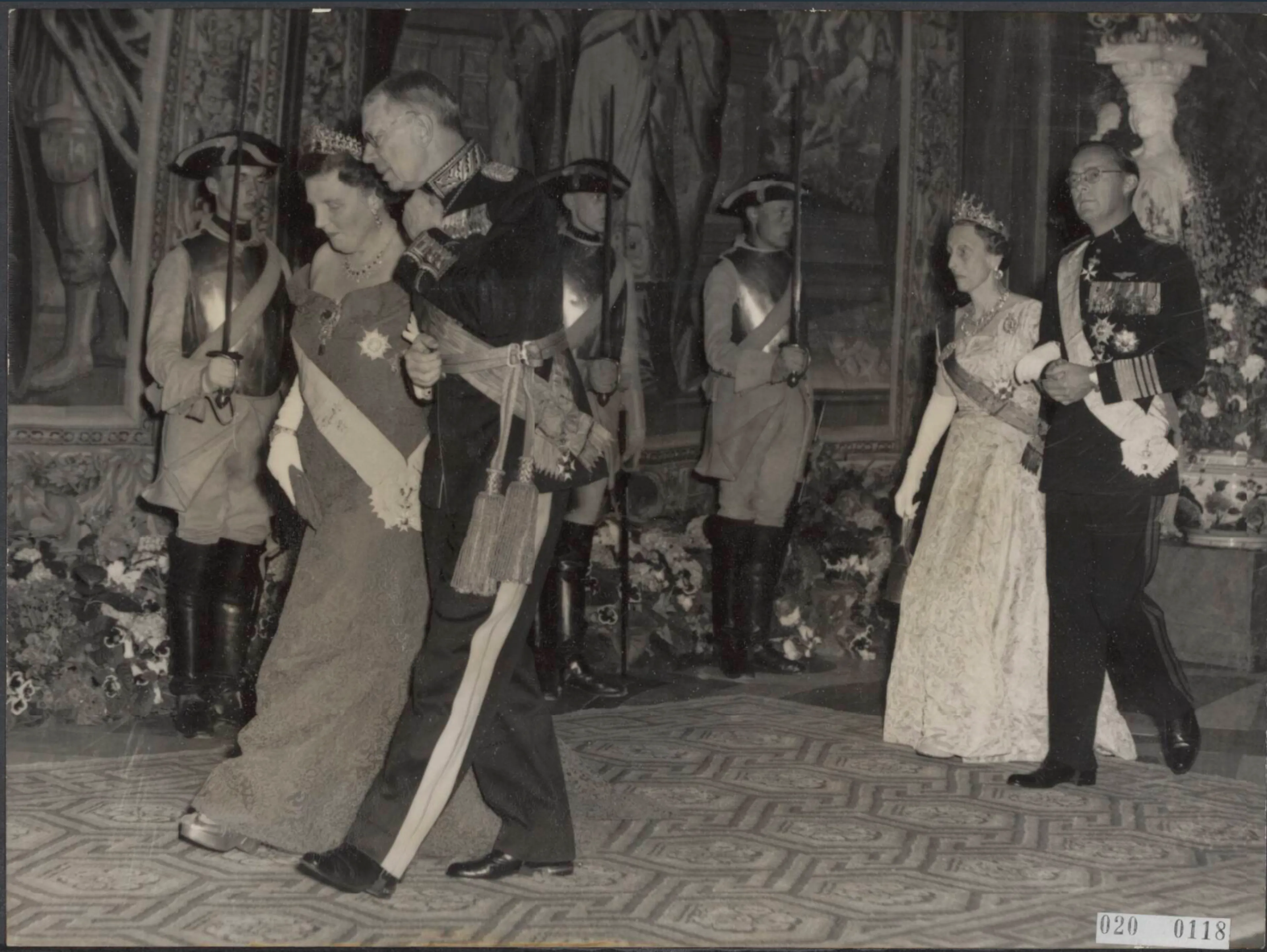 Ter ere van hun aanwezigheid wordt er een galadiner gehouden. Juliana loopt aan de arm van Gustaf VI Adolf en Louise aan die van Bernhard.