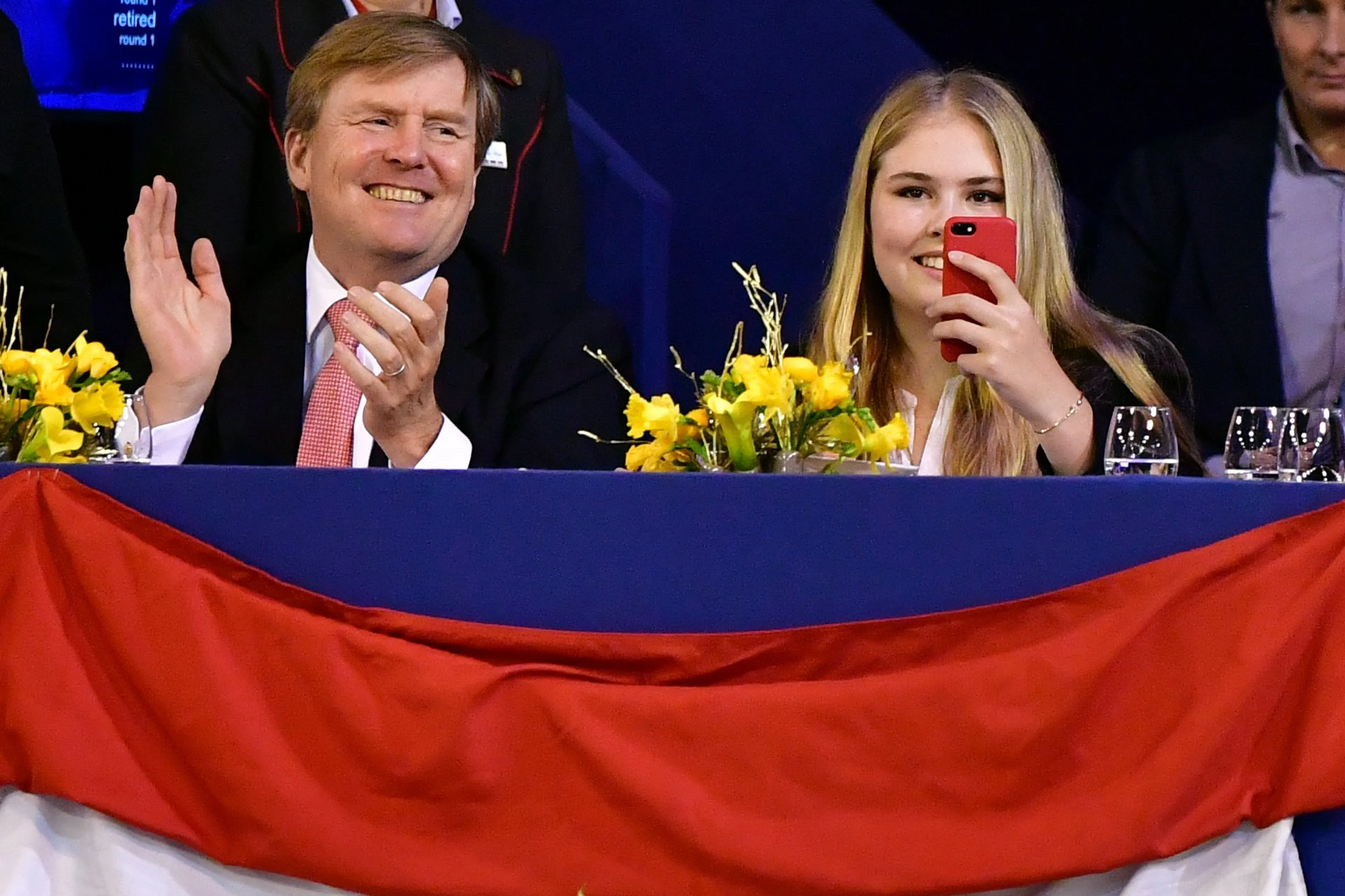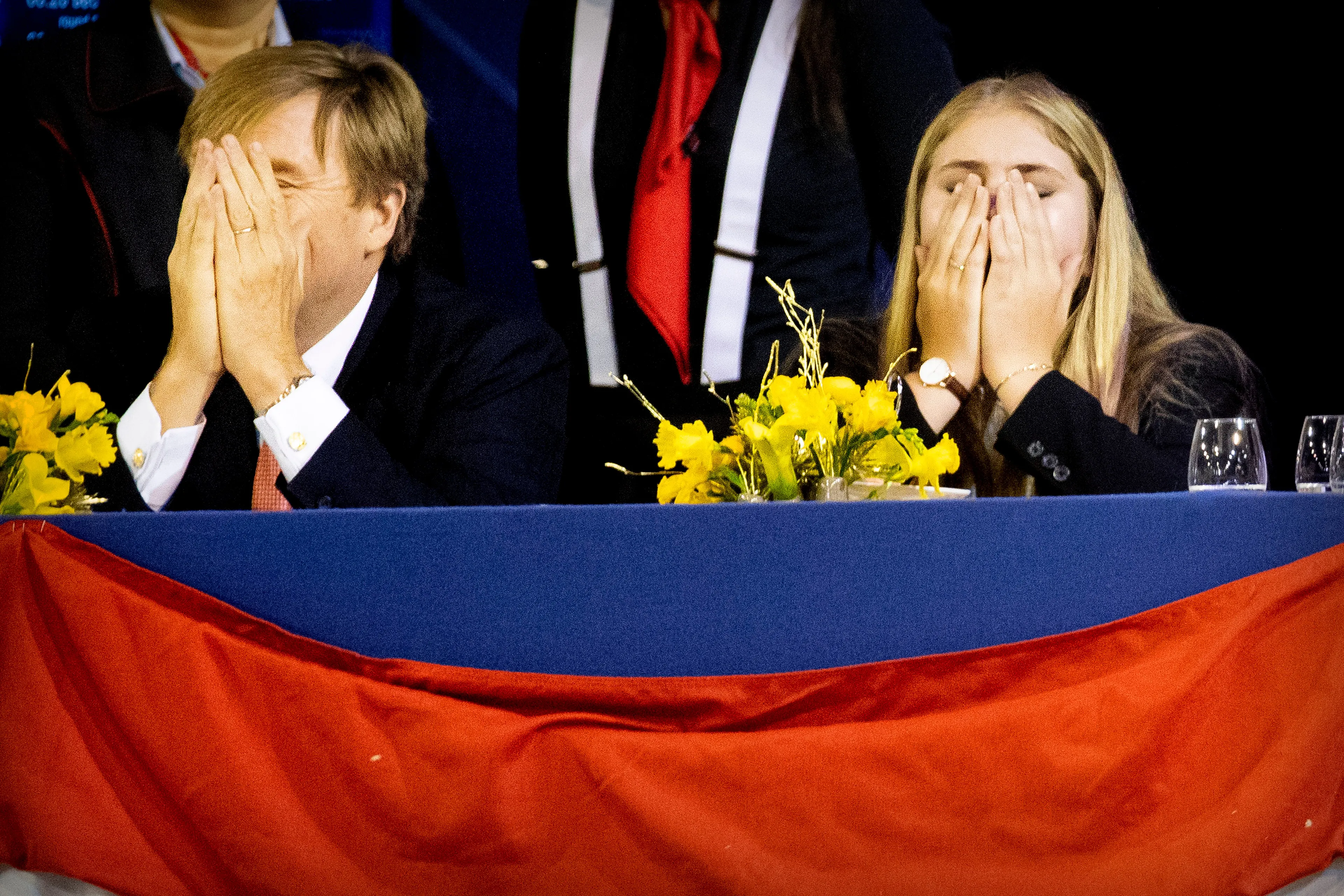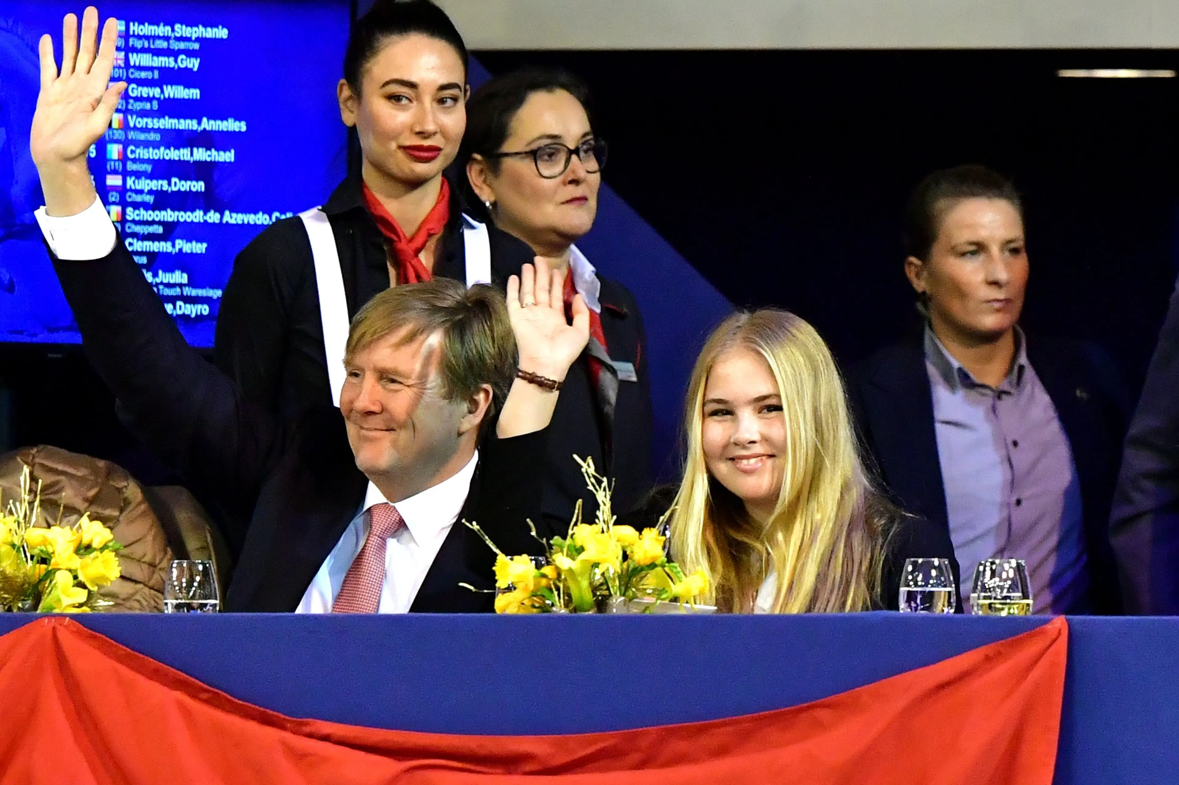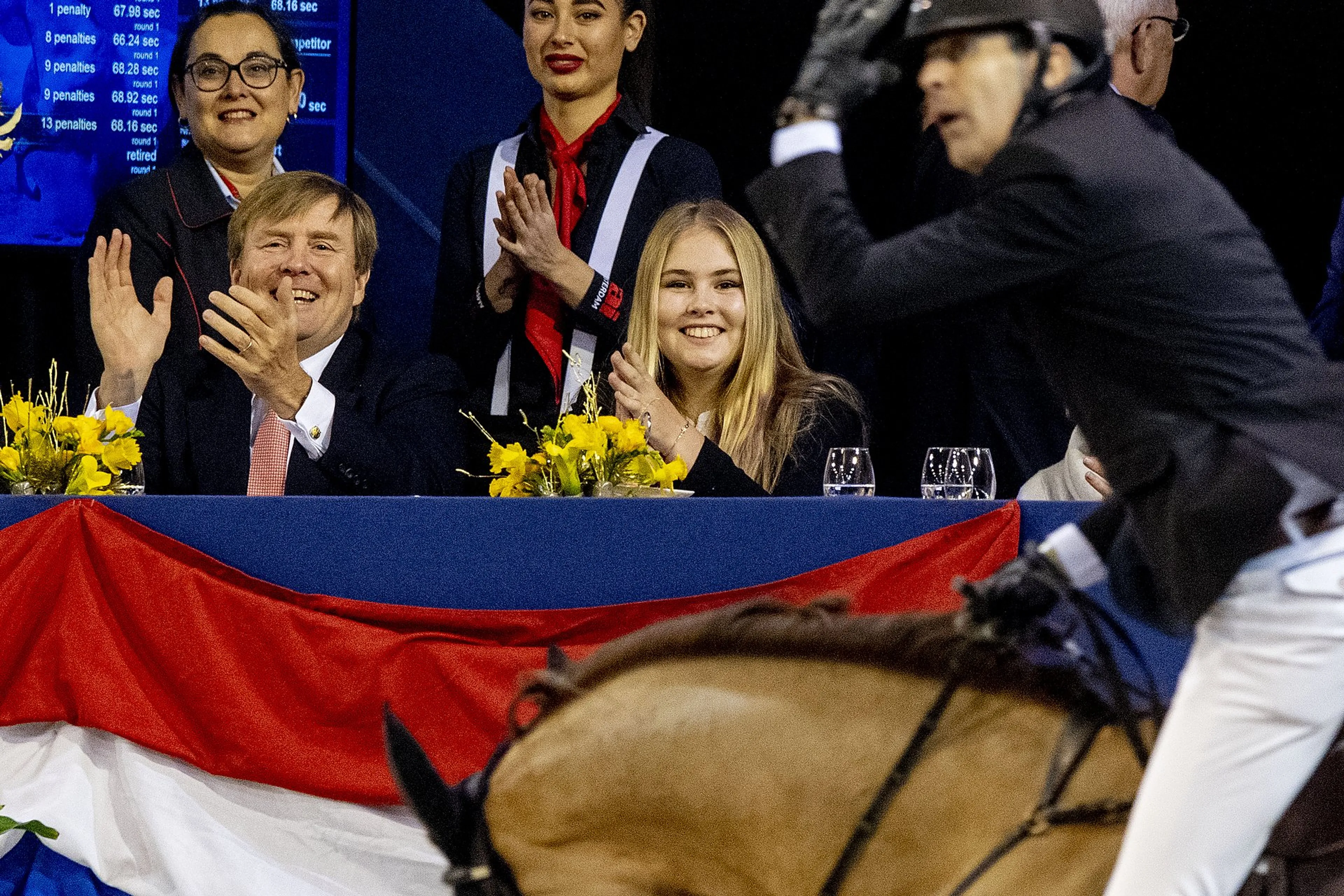De koning en zijn oudste dochter waren zondagmiddag aanwezig bij de wereldbeker springen. Ook prinses Irene en prinses Margarita zaten op de tribune.