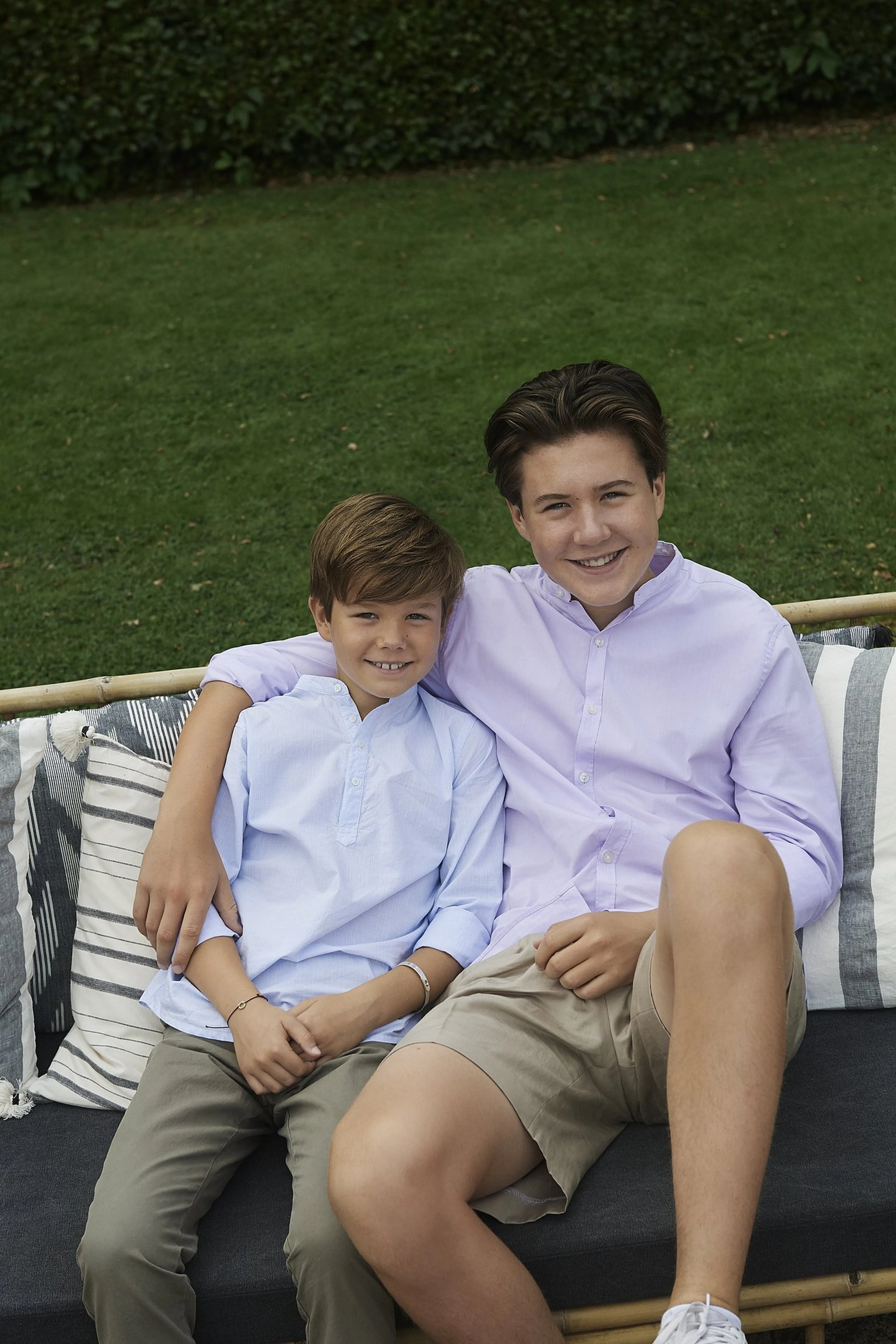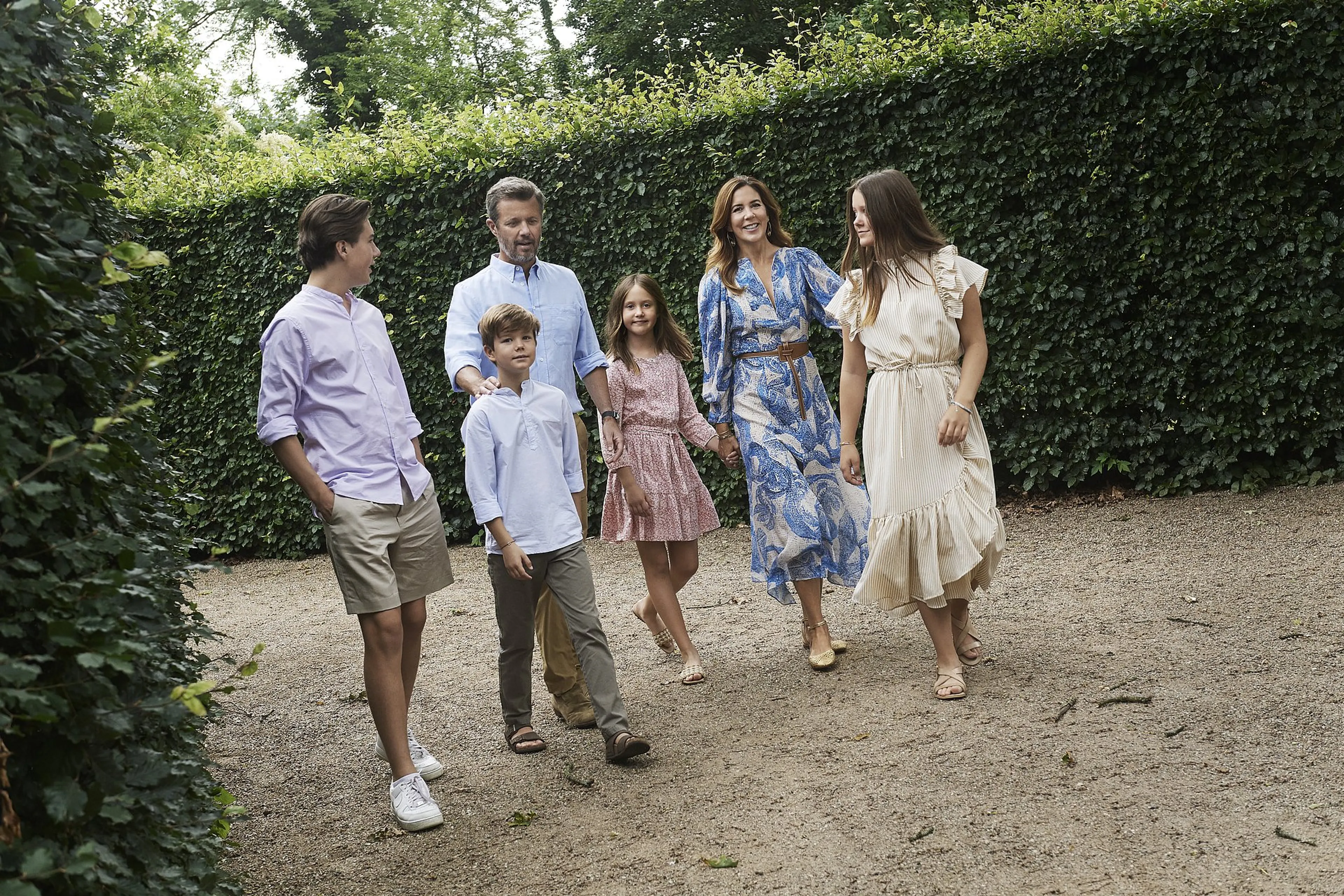 Frederik, Mary en hun kinderen Christian (15), Isabella (13) en de 9-jarige tweeling Vincent en Josephine brachten een deel van de zomer door op Gråsten Slot in Zuid-Jutland. De foto's zijn gemaakt door Franne Voigt, die de koninklijke familie wel vaker portretteert.