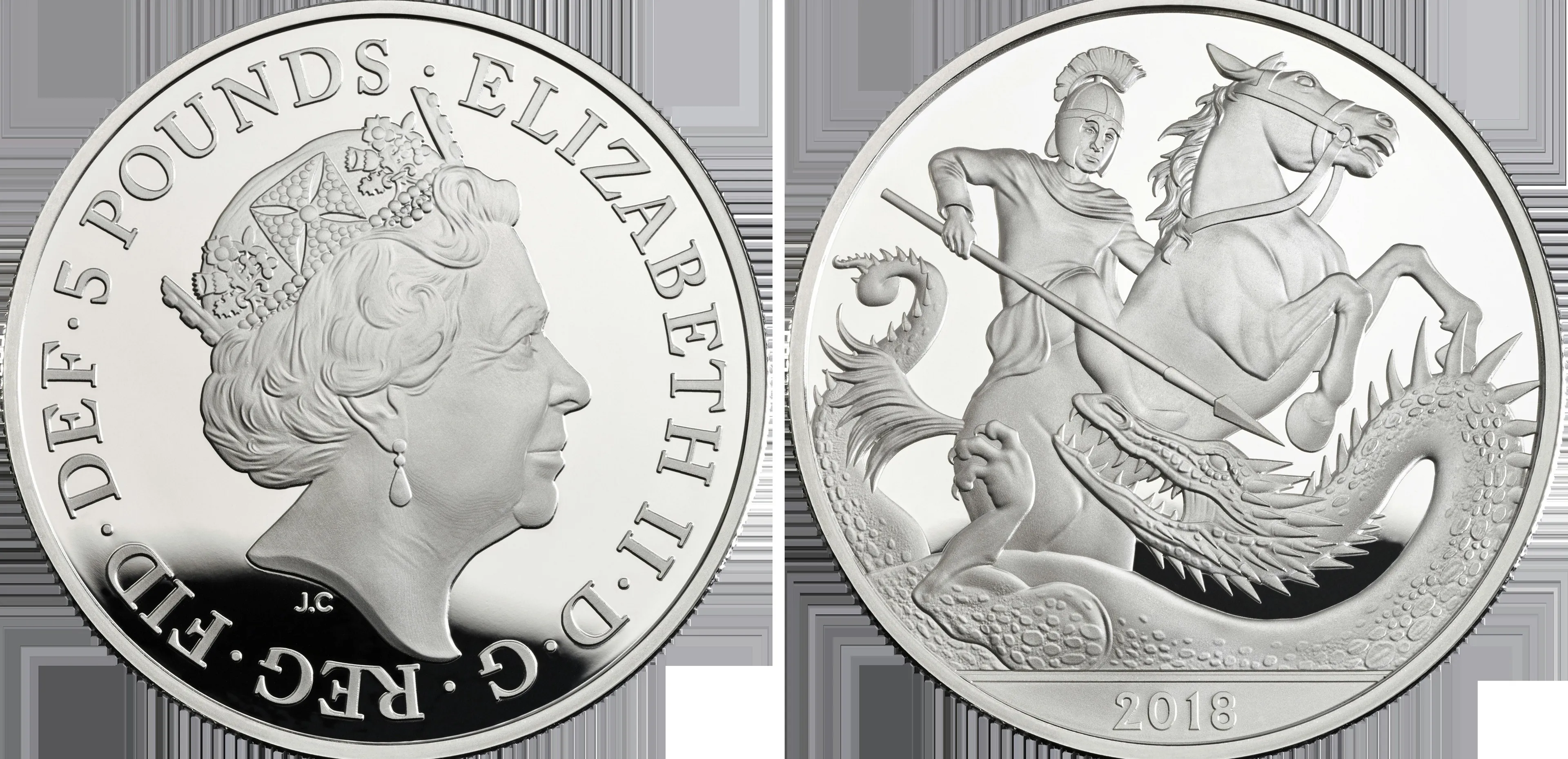 De Royal Mint grijpt de vijfde verjaardag van prins George aan voor het uitgeven van een nieuwe herdenkingsmunt. De officiële Britse geldmaker heeft een speciale munt van vijf pond gemaakt waarop een afbeelding staat van de legende van St. George and the Dragon, in Nederland beter bekend als Sint-Joris en de draak. Op de achterkant staat de overgrootmoeder van George, koningin Elizabeth, afgebeeld.