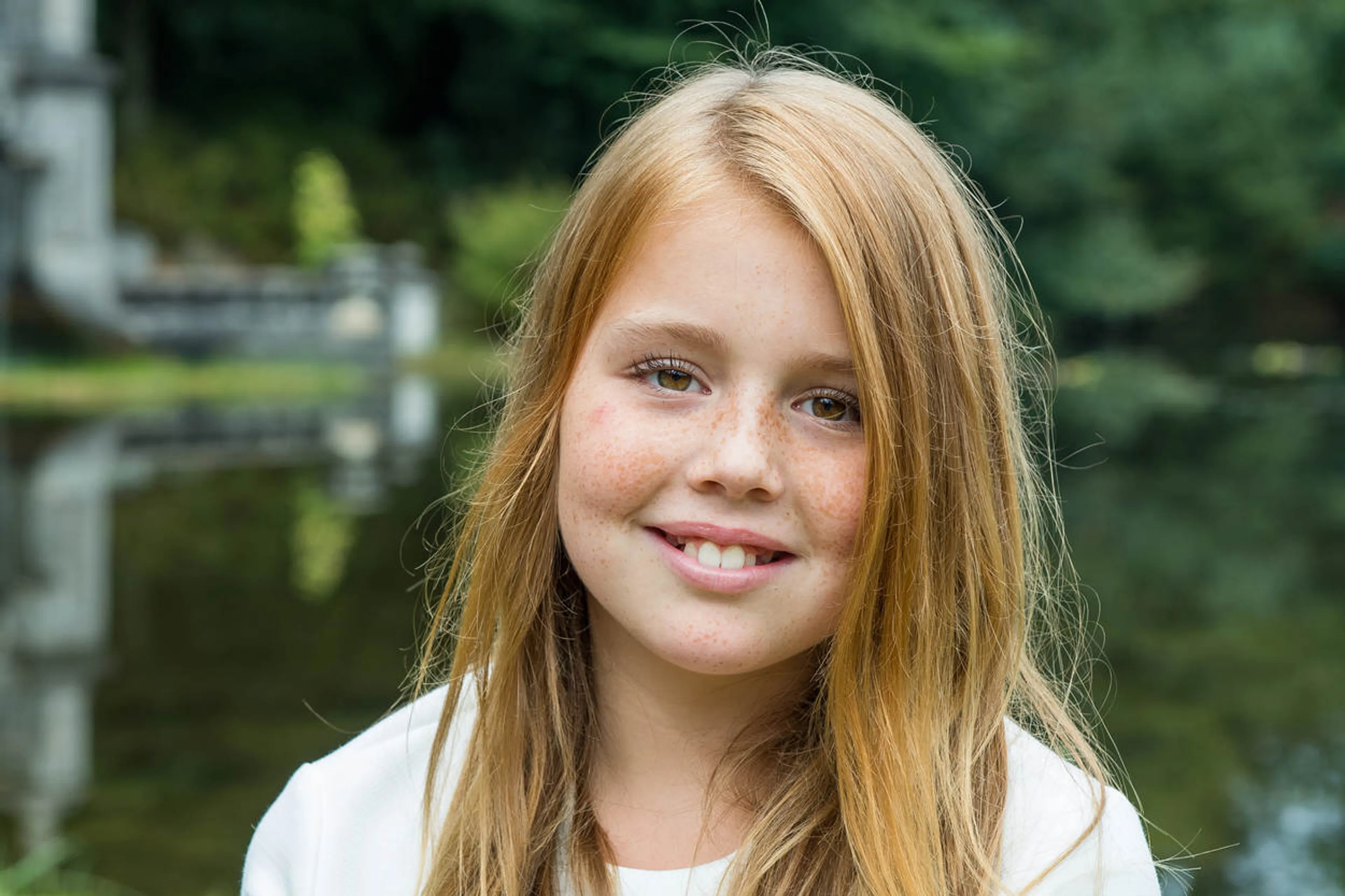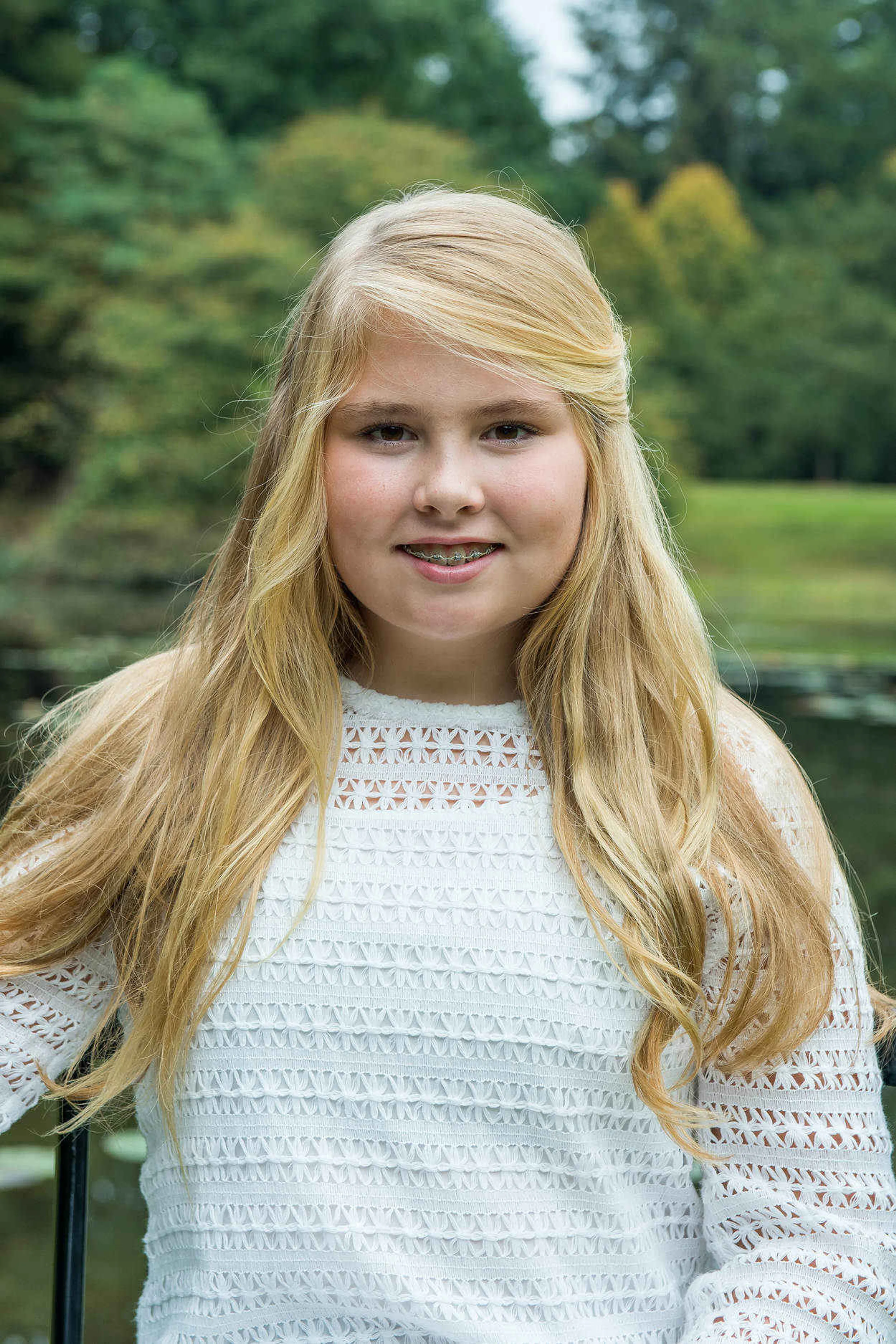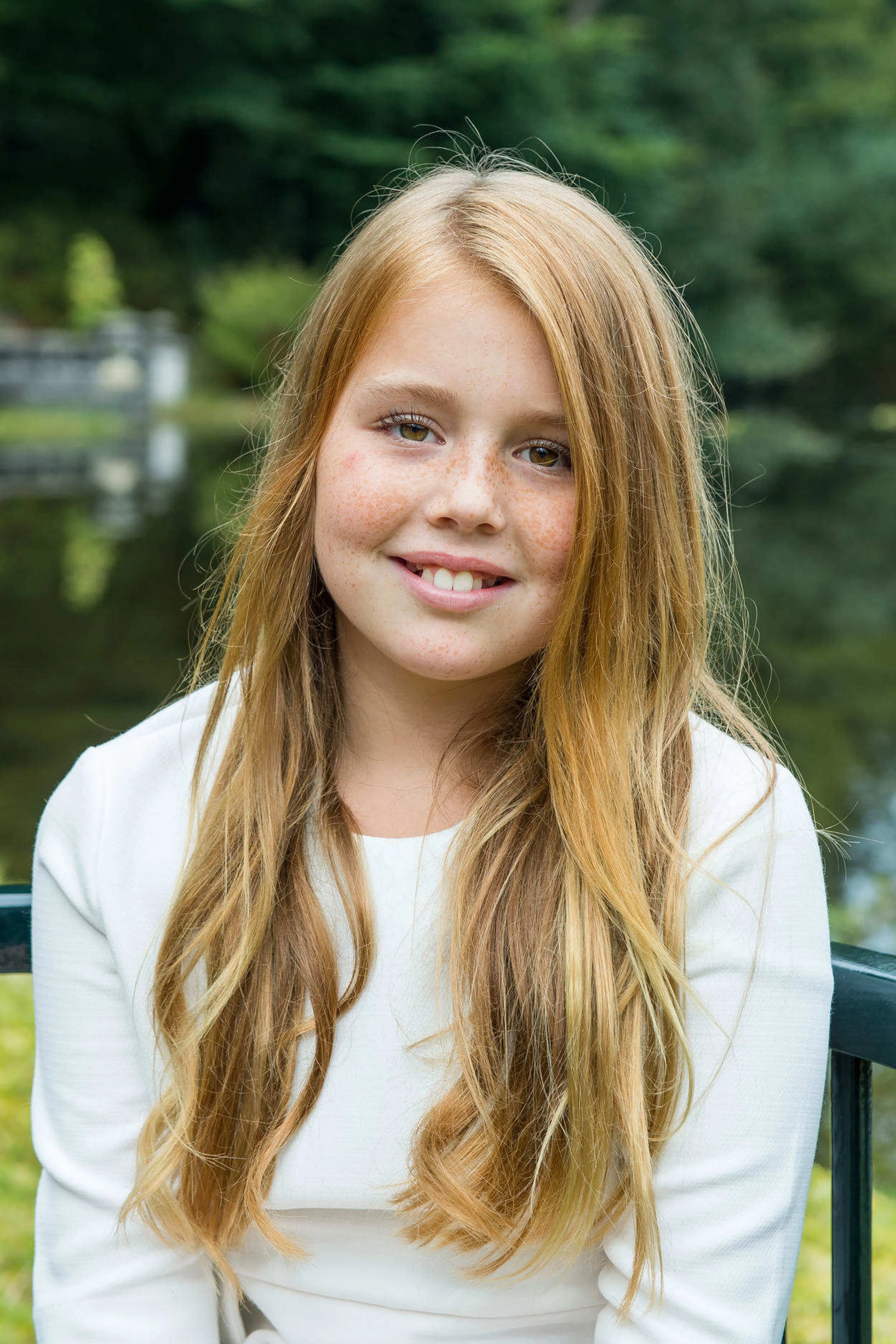 Willem-Alexander huurt het kasteeltje, een vijftiende-eeuws jachtslot dat vlakbij paleismuseum Het Loo ligt, als buitenverblijf van de staat. Amalia (12), Alexia (11) en Ariane (9) poseerden individueel en samen voor fotograaf Jeroen van der Meyde.