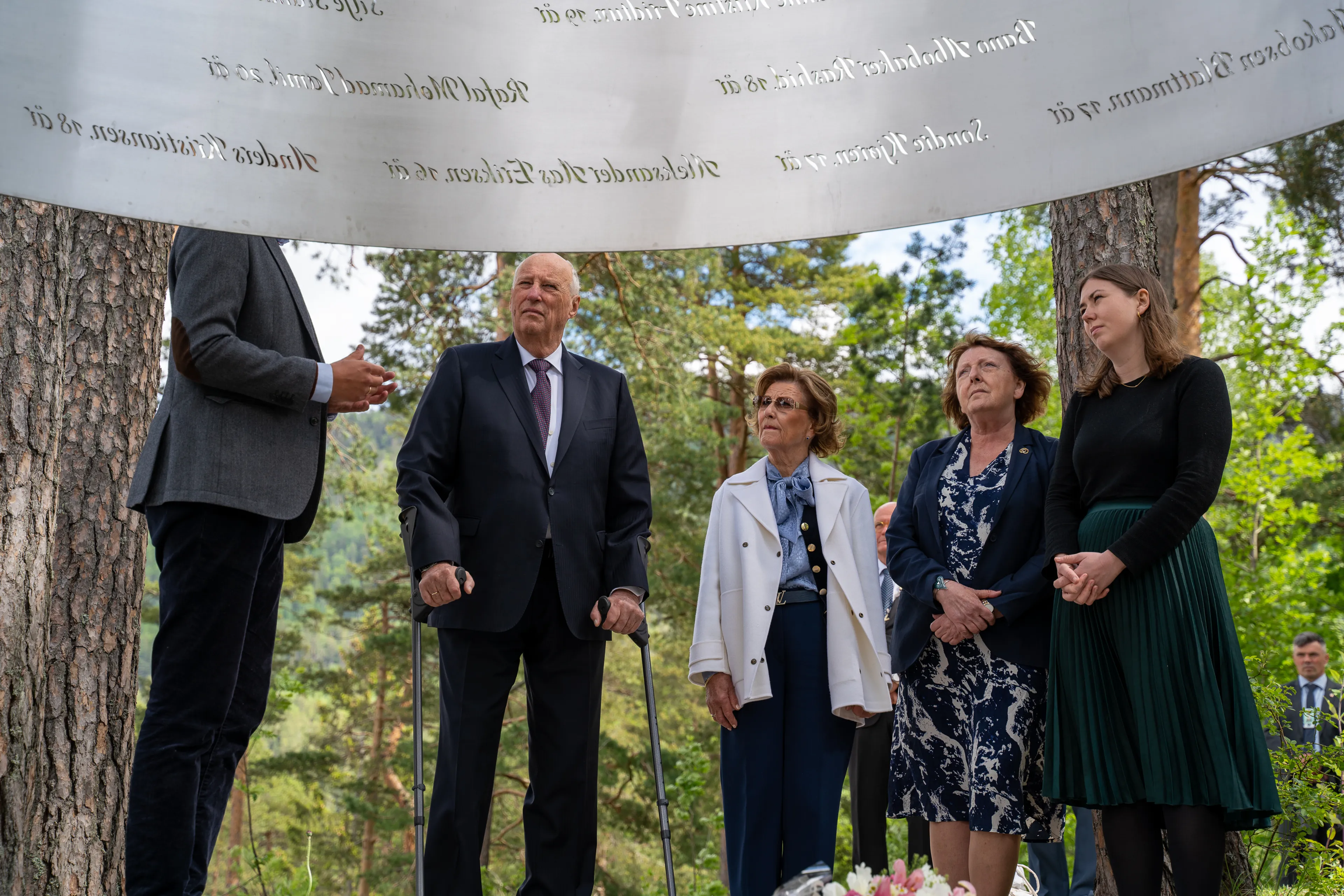 Bij de aanslag op 22 juli 2011 kwamen 69 leden van de Noorse Arbeiderspartij op Utøya om het leven toen de rechts-extremistische dader Anders Breivik het vuur opende. "22 juli heeft ons bewust gemaakt van hoe kostbaar onze waarden zijn", zei Harald bij aankomst op het eiland. "We moeten elke dag werken om ze te behouden en te verbeteren."