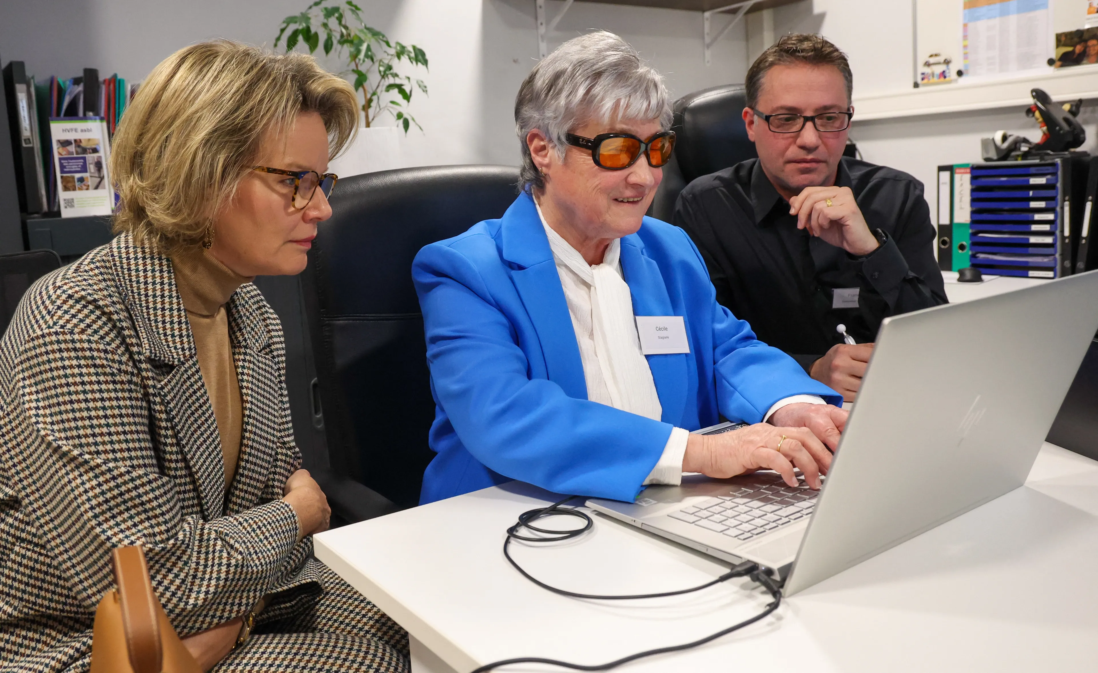 Koningin Mathilde had vandaag een wel heel bijzonder werkbezoek op de planning staan. In het Belgische Montignies-sur-Sambre was ze te gast bij de Handicap Visuel Formation Emploi (HVFE), een organisatie die zich inzet voor de integratie van blinden en slechtzienden. Het werkbezoek leverde leuke beelden op.