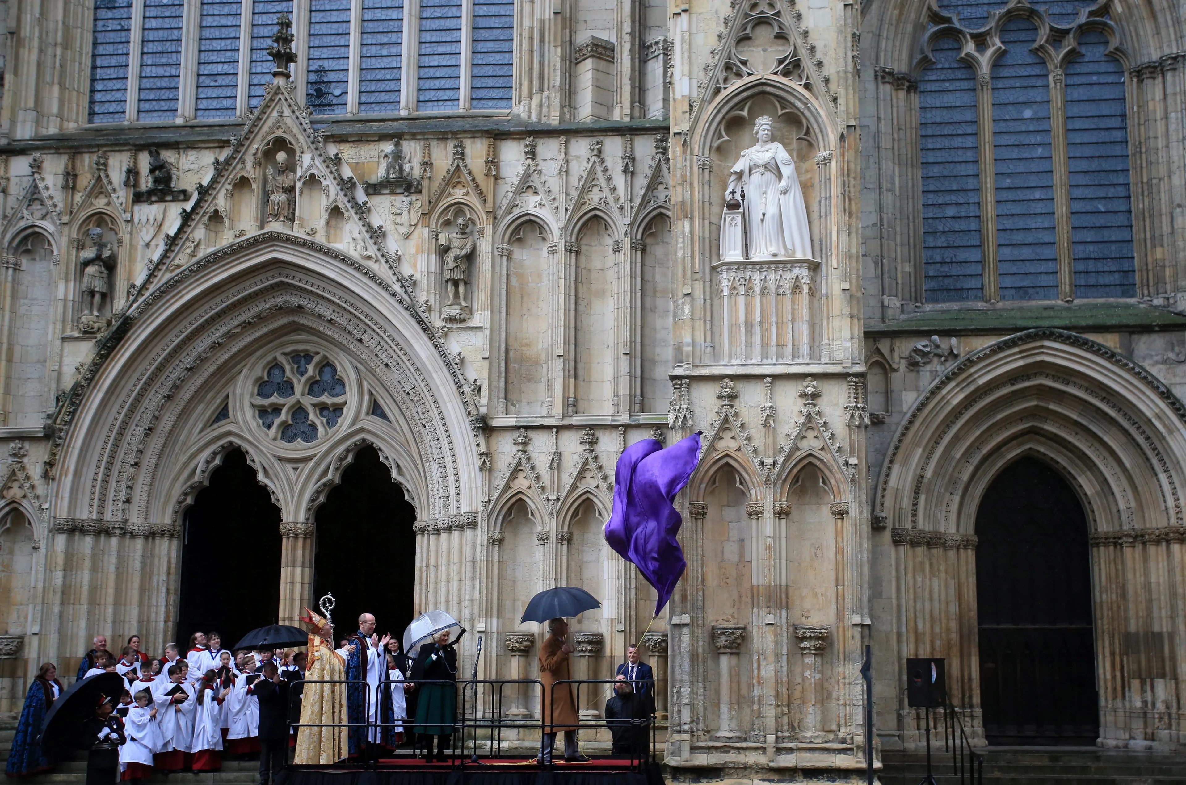 Koning Charles heeft in de Engelse stad York een standbeeld van koningin Elizabeth onthuld. Het beeld bij de plaatselijke kathedraal zou eigenlijk al eerder onthuld worden door de aartsbisschop van York, maar dat werd uitgesteld vanwege het overlijden van de Britse koningin.