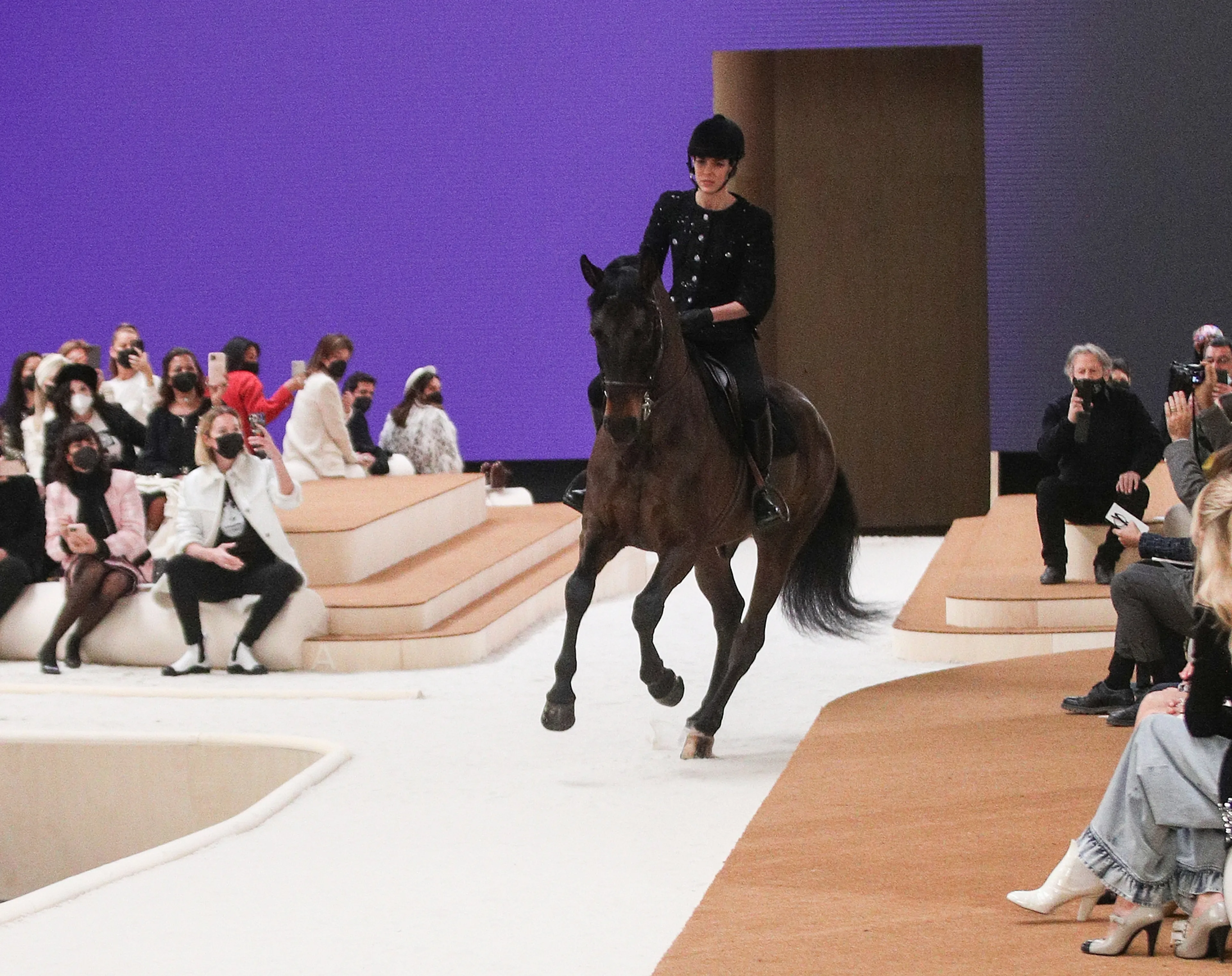 Charlotte, kleindochter van wijlen Grace Kelly, is een volleerd ruiter die vaak meedoet aan professionele wedstrijden. Haar kwaliteiten als ruiter worden dan ook niet in twijfel getrokken, maar het feit dat er een dier gebruikt wordt tijdens een coutureshow is voor velen niet te begrijpen. Casiraghi bereed haar 8 jaar oude paard Kuskus op de catwalk en was gekleed in de nieuwste collectie van het Franse modemerk Chanel, waarvan ze sinds 2020 ambassadeur is.