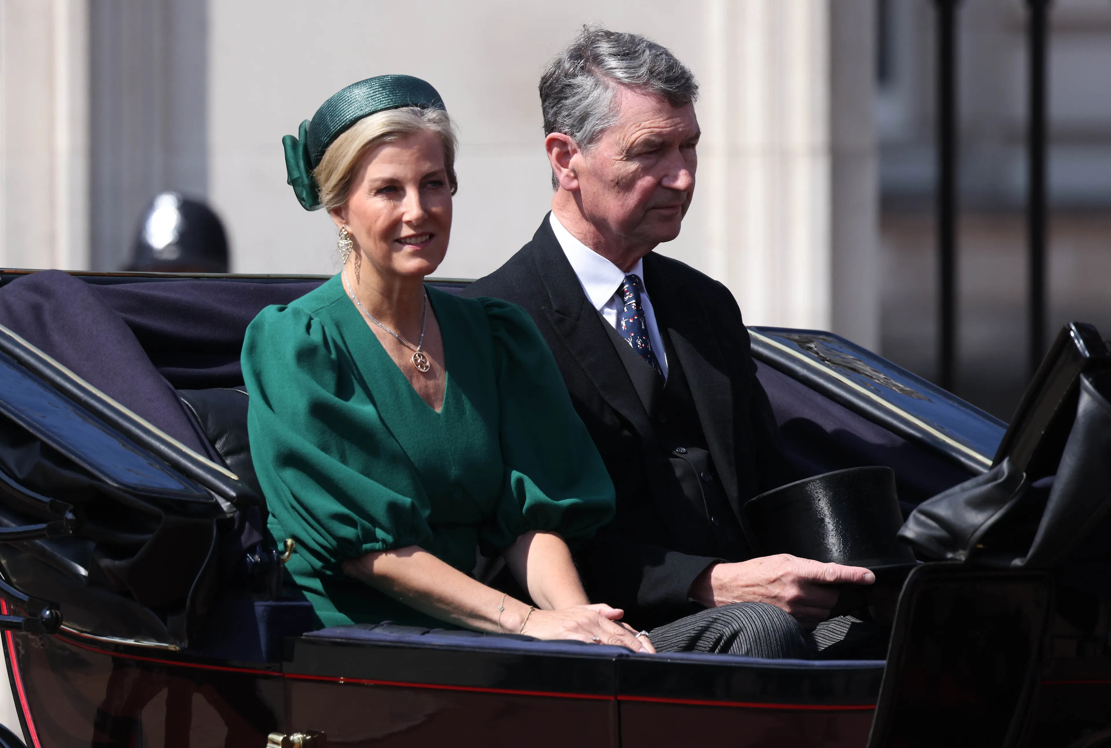 Hertogin Sophie draagt vandaag een donkergroene jurk van het merk Beulah met een bijpassende hoed van Jane Taylor.