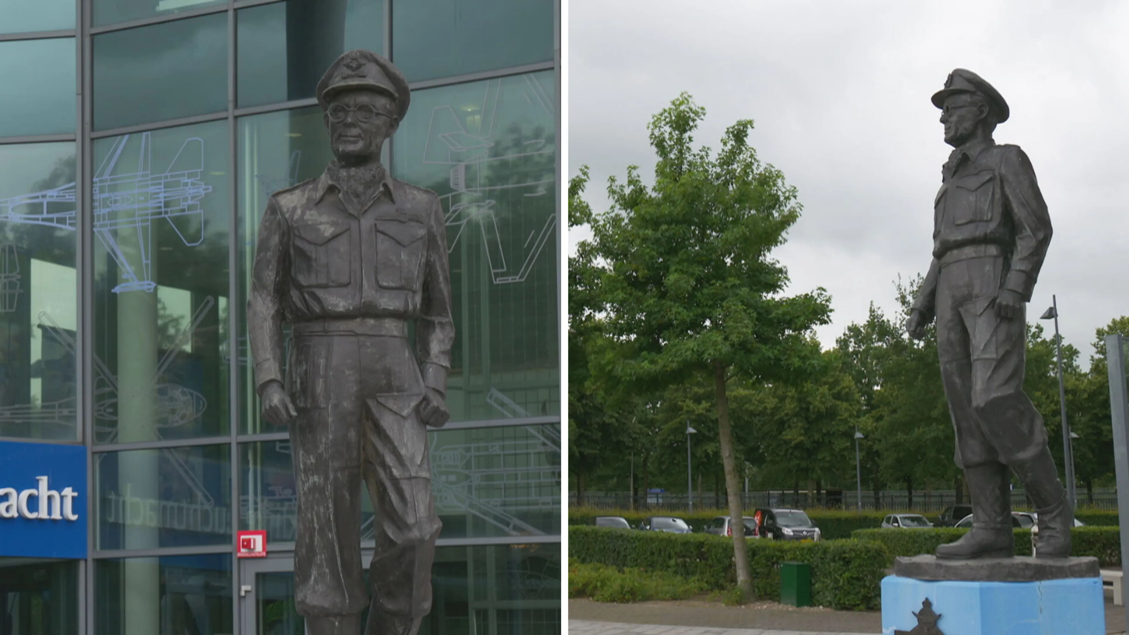 Oorspronkelijk stond het beeld bij het hoofdkwartier in Den Haag, maar toen de Luchtmacht naar Breda vertrok, verhuisde het beeld mee. Bernhard had vele uniformen en die droeg hij ook vaak. Zoals elk jaar op Prinsjesdag. In augustus 1976 verscheen het rapport van de ‘Commissie van Drie’ over de Lockheed-affaire. “De prins had zich te lichtvaardig begeven in transacties, die de indruk moesten wekken dat hij gevoelig was voor gunsten” aldus het rapport. Een van de maatregelen die de regering trof was dat de prins zijn functies en adviseurschappen bij de krijgsmacht moest neerleggen. Het uniform ging uit, en blééf uit.