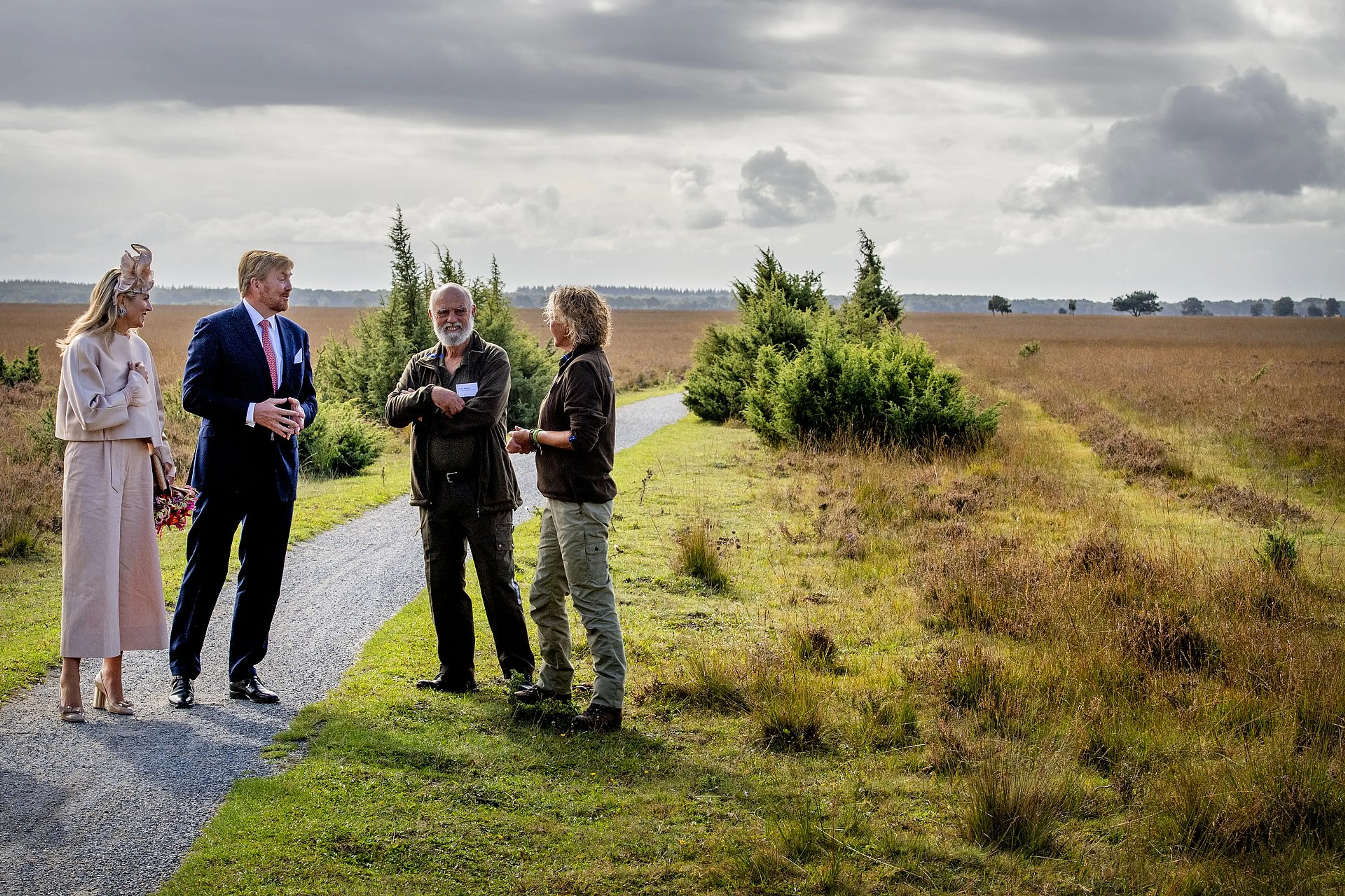 In september 2019 brengen de koning en koningin een streekbezoek aan Zuidwest-Drenthe. Ze komen dan ook op het Dwingelderveld. Een nationaal park. Het is het grootste natte heidegebied van West-Europa. Een poseermoment.