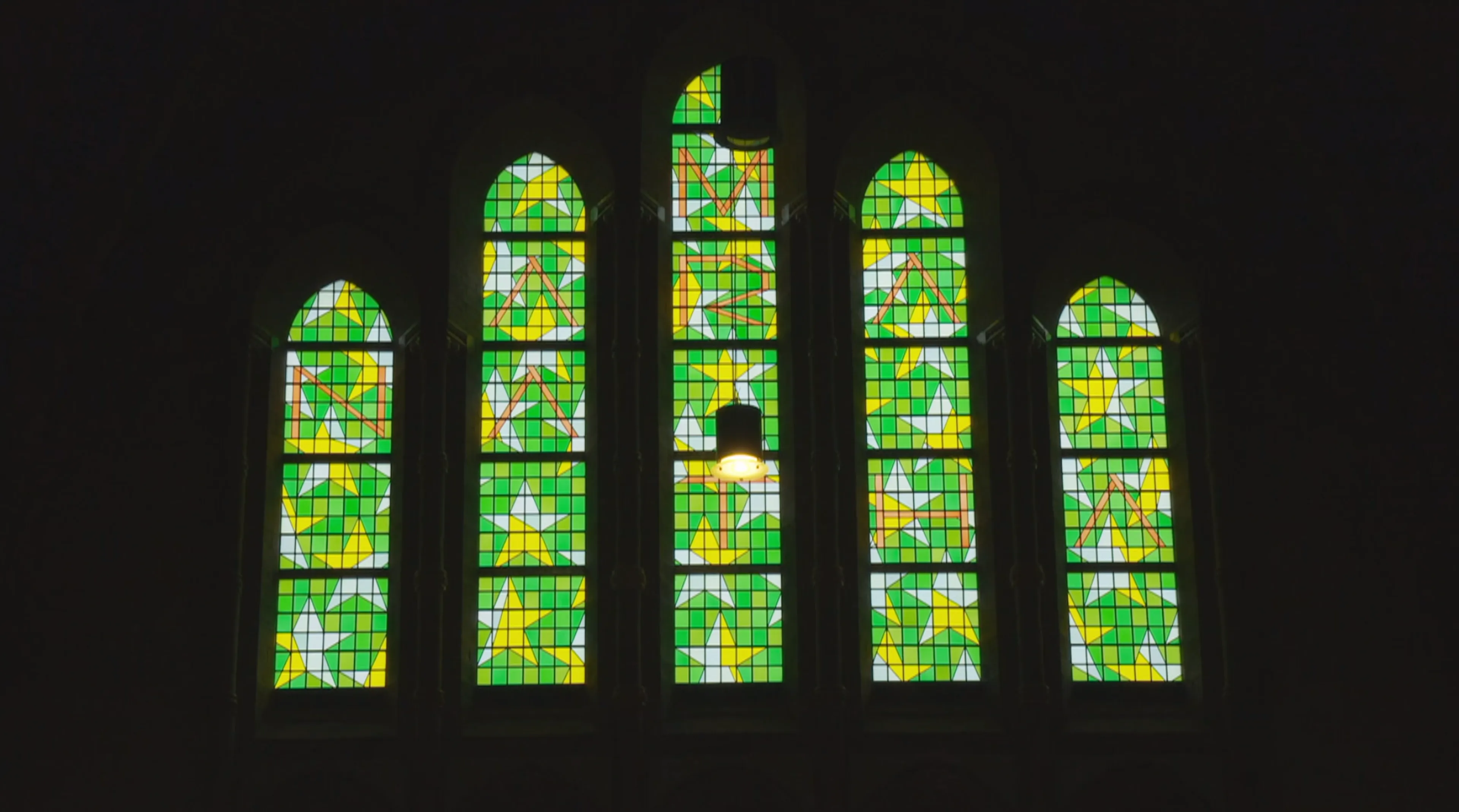 "De eerste woorden van de Bijbel staan in het raam verwoord: ‘Er zij licht'. Jan Dibbet heeft dit vormgegeven en heeft daarbij ook rekening gehouden met een maximale lichtinval."