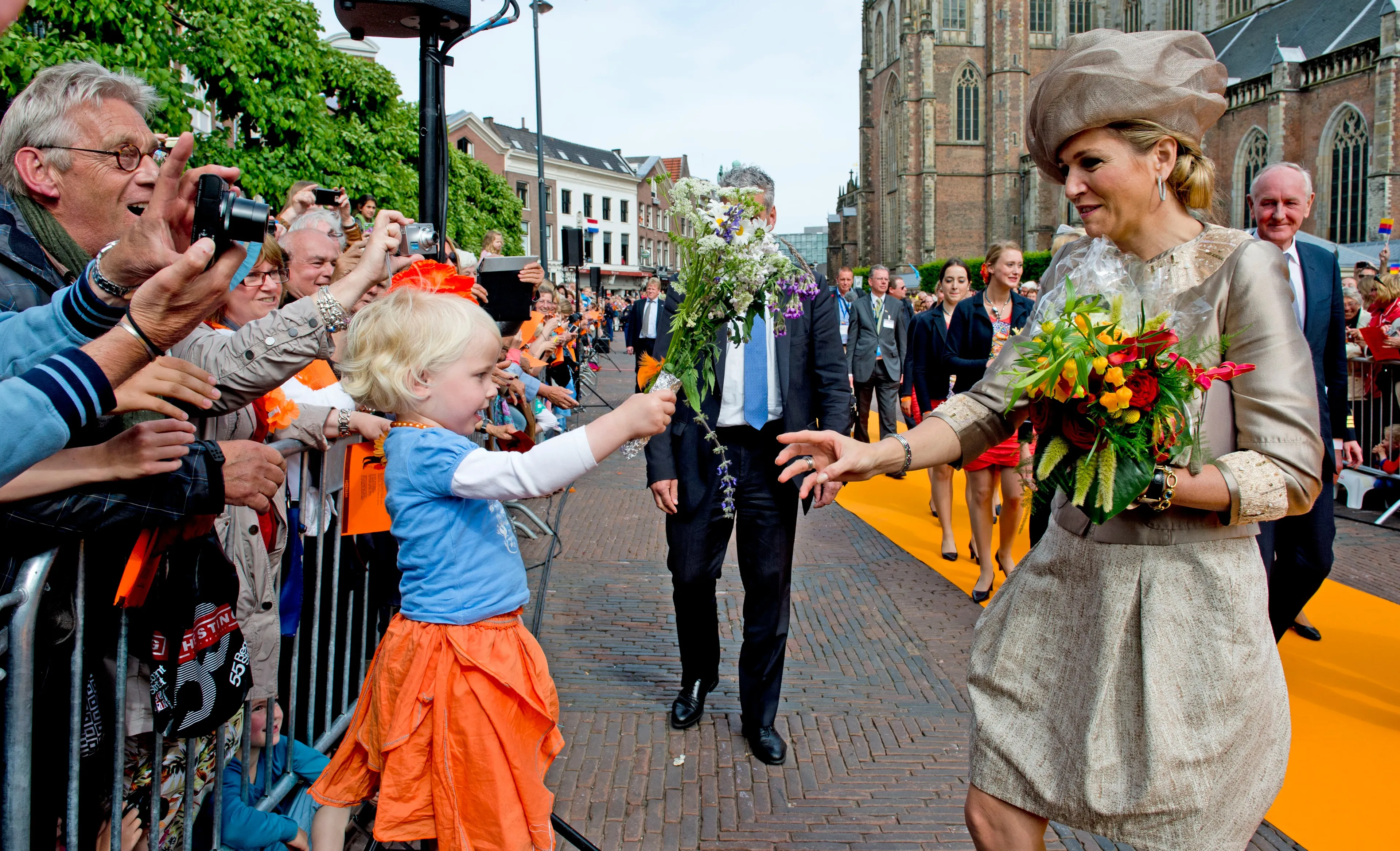 Ook in 2013 bezoeken de nieuwe koning en koningin Haarlem. Het einde van de provincietoer door Friesland en Noord-Holland. Ze worden hier op de Groote Markt toegezongen door onder andere Dolly Bellefleur.