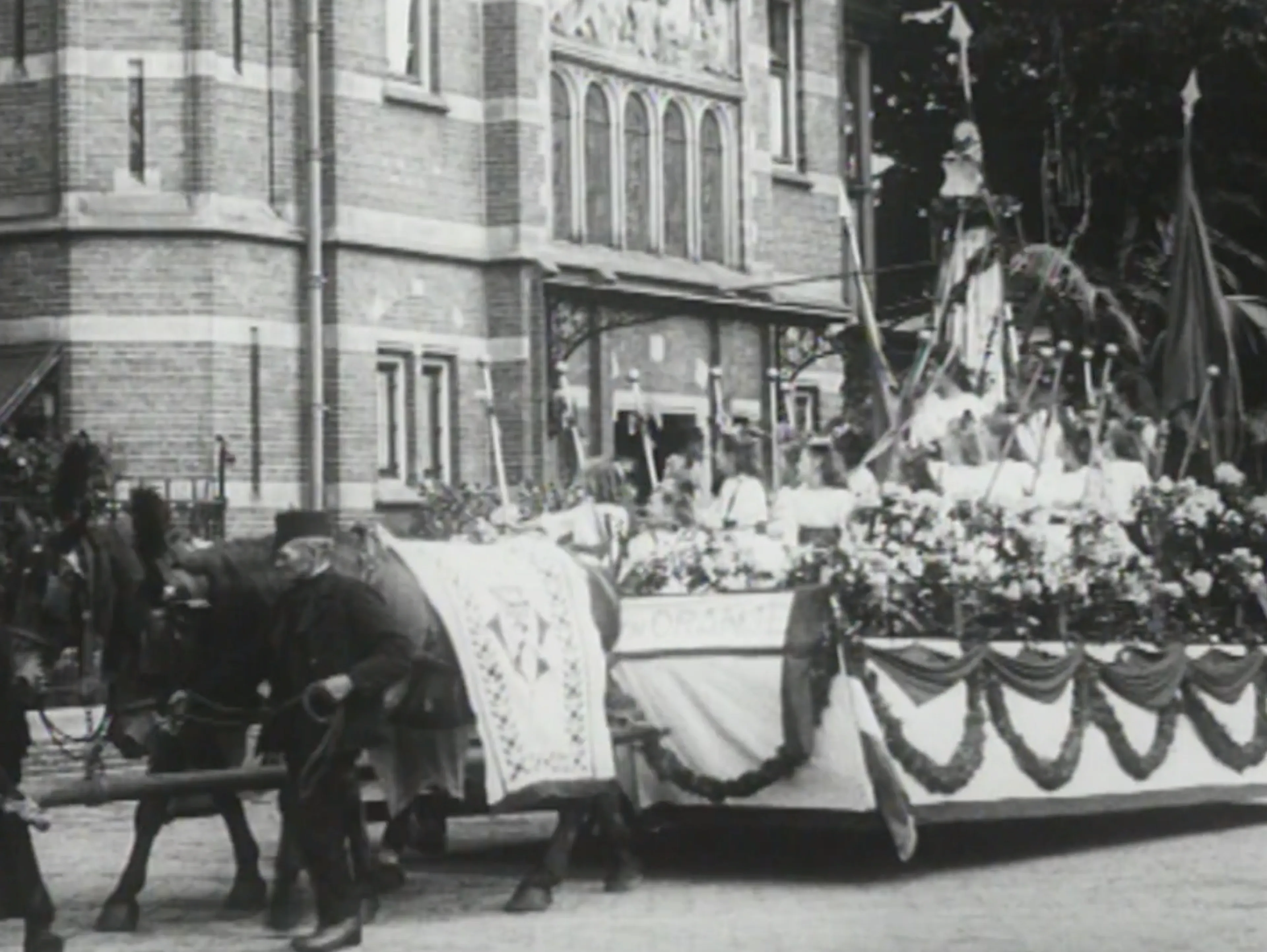In mei 1921 bezoeken koningin Wilhelmina en prins Hendrik Zwolle. Er is een optocht voor ze georganiseerd en het paar kijkt toe vanuit een open raam. De trots van Zwolle trekt aan ze voorbij.