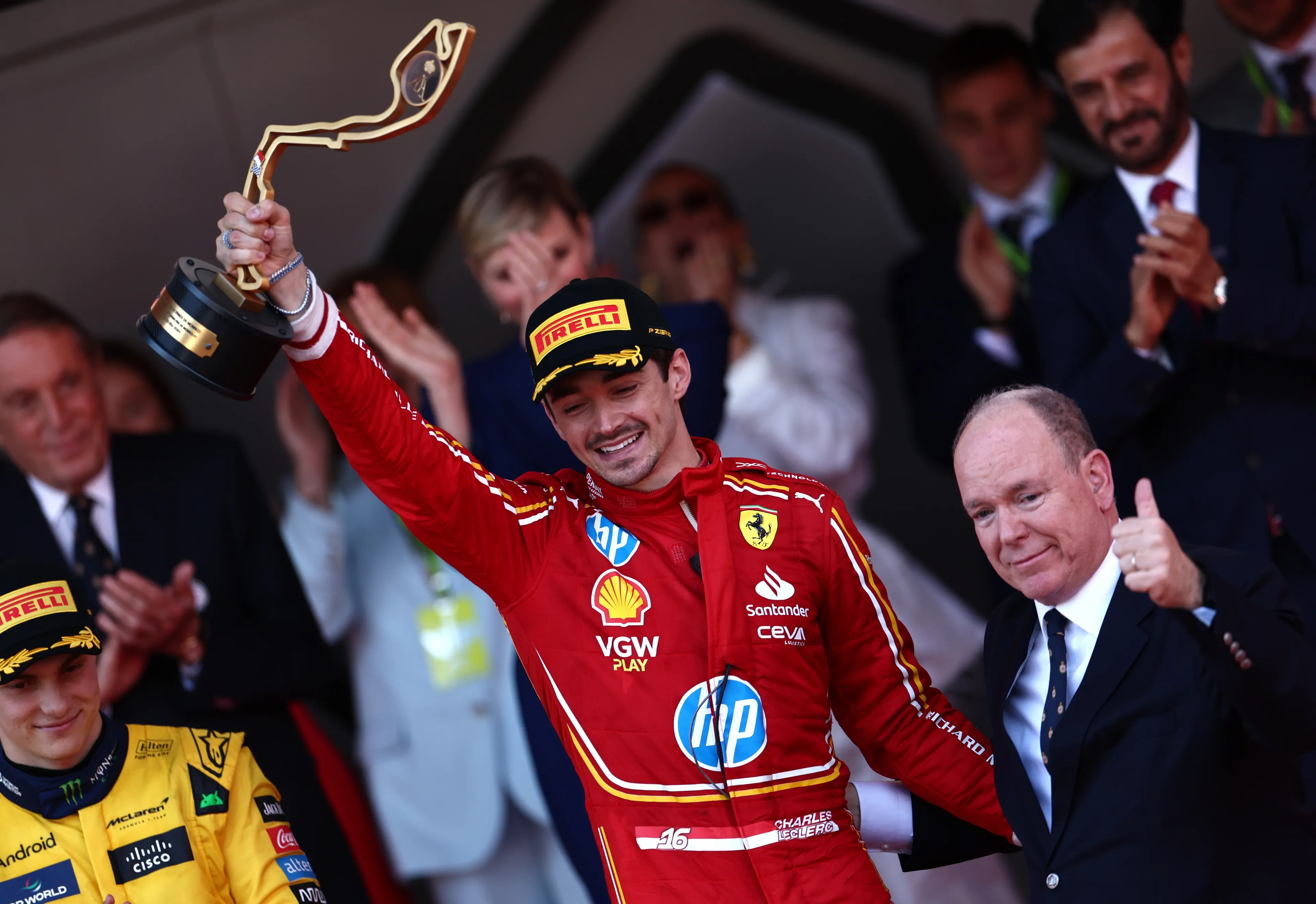 Tijdens de race zien prins Albert en prinses Charlène hoe hun landgenoot Charles Leclerc zijn Ferrari naar de eindoverwinning stuurt. Leclerc is daarmee de eerste Monegaskische coureur die het evenement op zijn naam schrijft sinds de Formule 1 is opgericht in 1950. Aan de finish was de Ferrari-rijder niet de enige die emotioneel was. De 66-jarige prins Albert was namelijk zichtbaar geëmotioneerd toen hij de coureur feliciteerde met zijn historische overwinning.