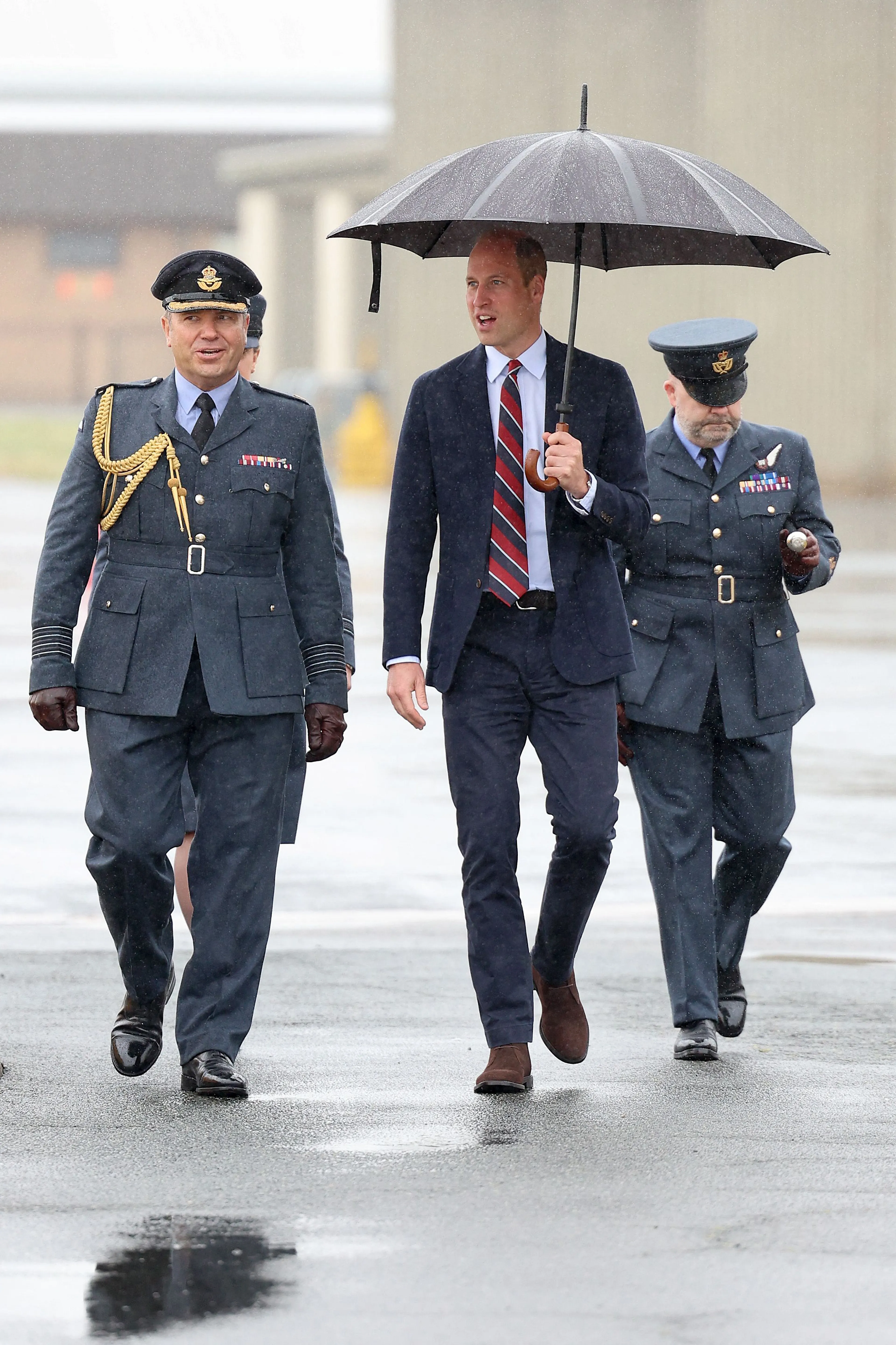Prins William werd dinsdagmiddag door weer en wind hartelijk ontvangen op de vliegbasis in Noord-Wales. Nadat zijn paraplu binnenstebuiten waaide, zei hij lachend: "Het zou niet als thuiskomen voelen als het niet op een regenachtige dag als deze was". Gelukkig klaarde het weer op toen hij de luchtverkeerstoren betrad, waardoor hij een mooi overzicht had over de RAF-basis en de omgeving. "Voor mij is het een nostalgisch bezoek", gaf de prins van Wales toe.