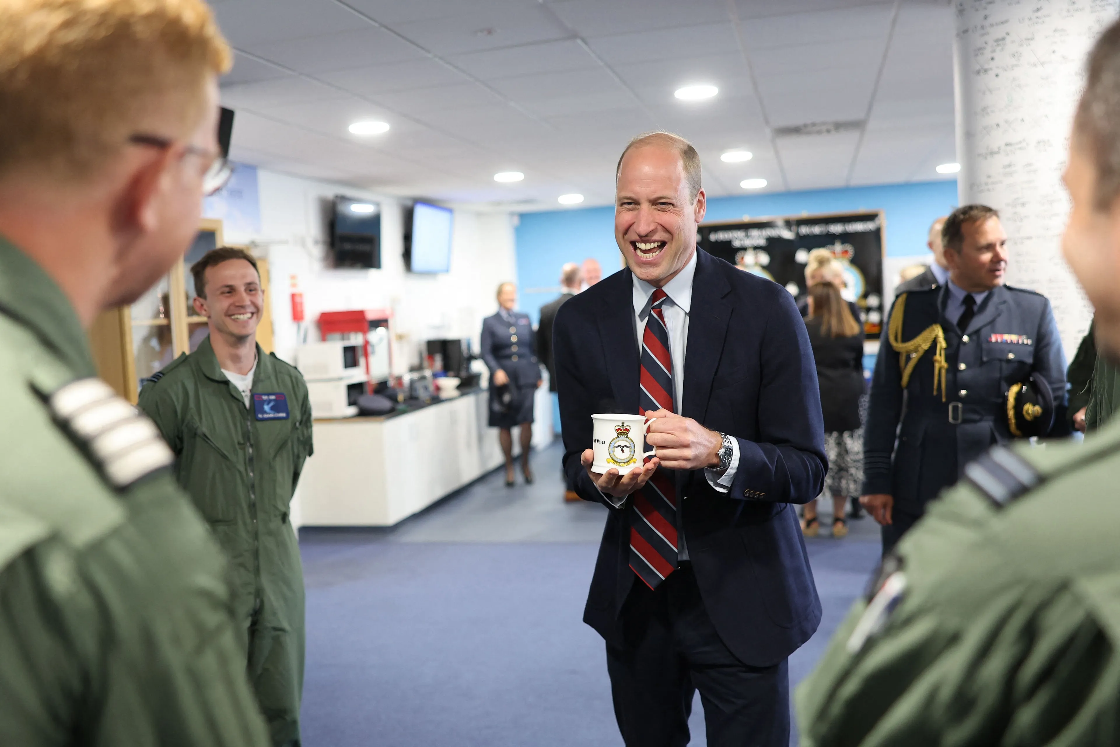Tijdens het bezoek sprak prins William onder het genot van een kopje thee onder meer met instructeurs, stagiaires en ingenieurs, onder het genot van een kopje thee. Dat deed hij niet uit een gewone mok, maar uit een ware 'prins of Wales'-mok die hem werd aangeboden. Daarna werd hij herenigd met zijn voormalig vlieginstructeur, kapitein Brian Wills. "Het was geweldig, echt leuk om hem te zien. De laatste keer dat ik hem zag was in 2009", vertelde de kapitein.
