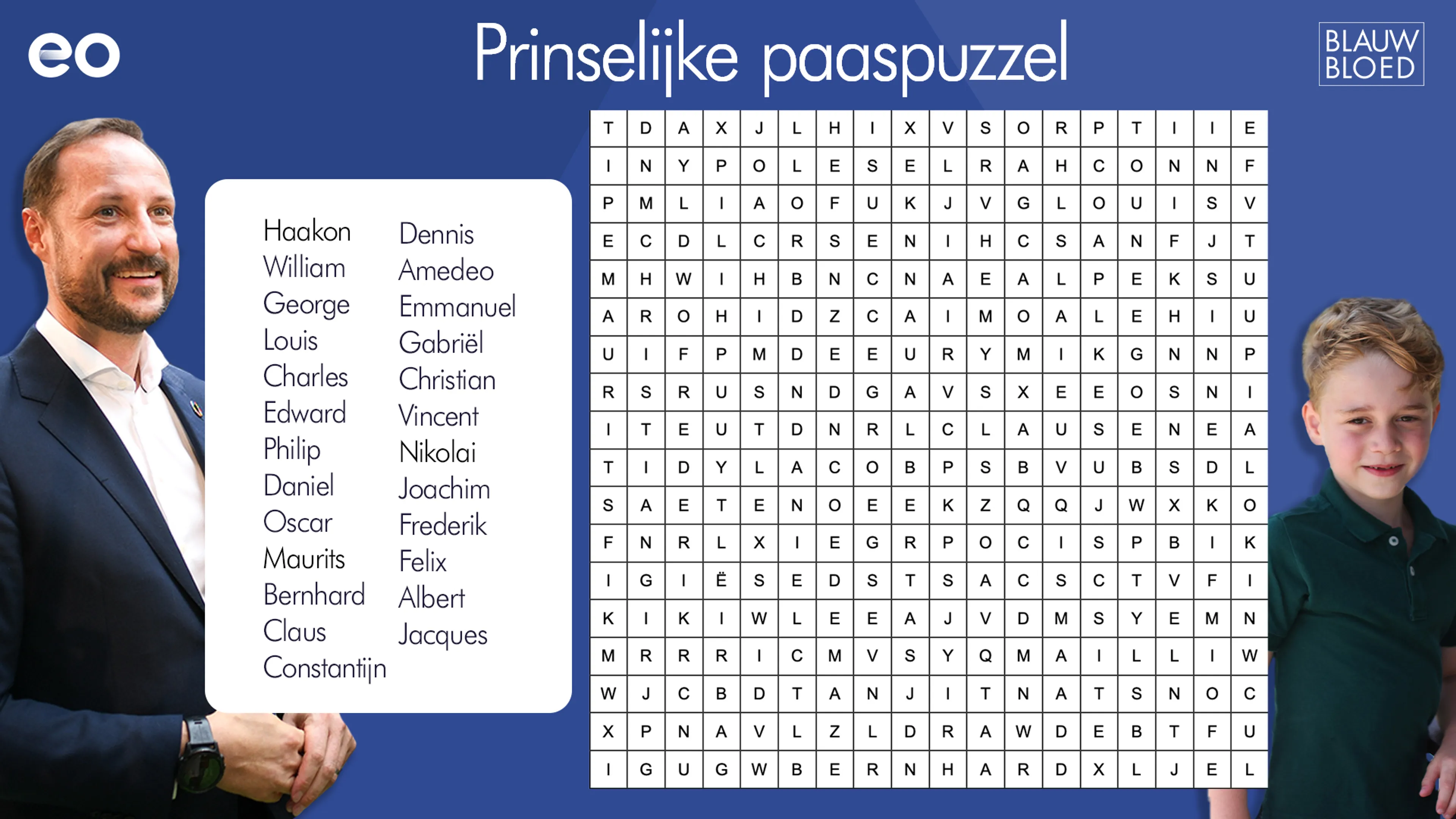 Het is Tweede Paasdag! Naast het zoeken van paaseieren hebben ook wij een leuke zoekopdracht voor jou. Pak een pen, neem een lekker chocolade-eitje en ga op zoek naar de prins! Weet jij alle prinsjes en prinsen te vinden in onze woordzoeker?