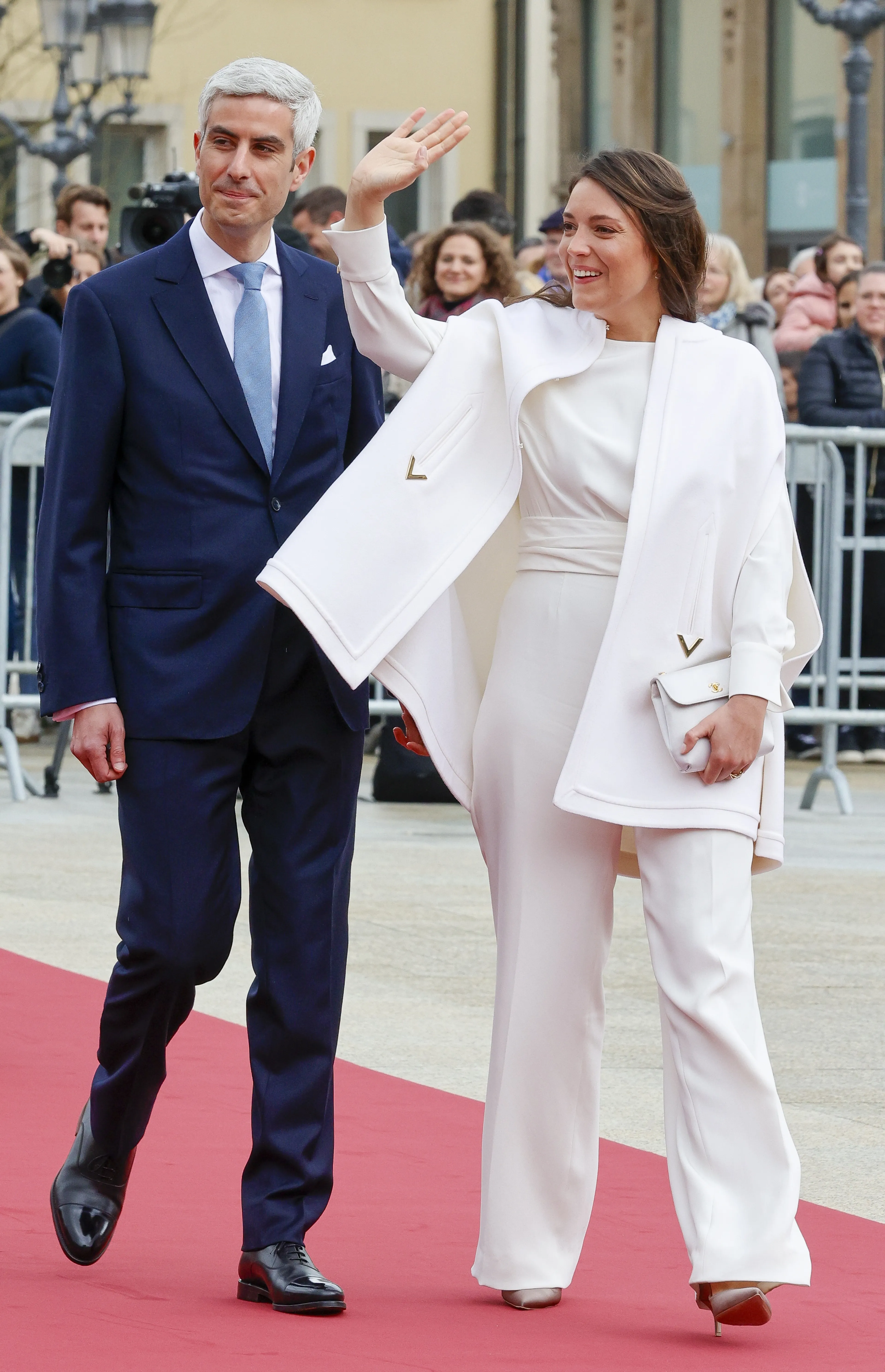 Toeschouwers waren naar het plein bij de trouwlocatie gekomen, zo is te zien op beelden die het hof heeft gedeeld. Na afloop van de bruiloft verschenen Alexandra en haar kersverse echtgenoot op het balkon om naar de toeschouwers te zwaaien. De prinses droeg een wit pak van Valentino.