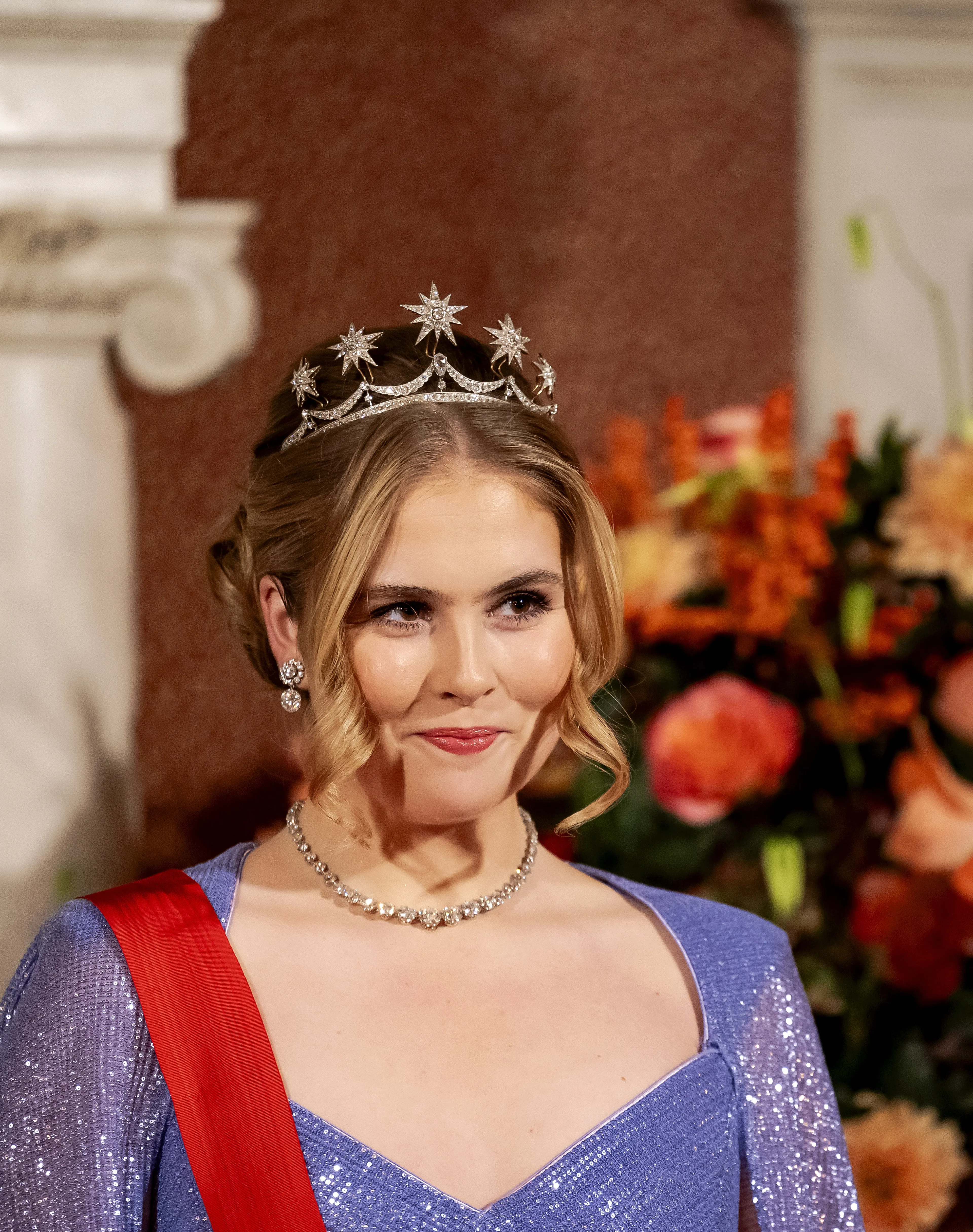 Vanavond wordt de eerste dag afgesloten met een staatsbanket op het Koninklijk Paleis in Amsterdam. Wederom zijn alle ogen gericht op prinses Amalia, die voor de tweede keer bij een staatsdiner aanwezig is en een zelfverzekerde indruk maakt. De prinses vierde afgelopen weekend haar 21ste verjaardag en is vanwege haar volwassen leeftijd vaker te zien tijdens dergelijke gelegenheden. Dinsdagavond steelt ze de show in een opvallende én nieuwe glitterjurk van Tadashi Shoji. Verder heeft ze gekozen voor het huwelijksdiadeem van haar moeder, koningin Máxima.