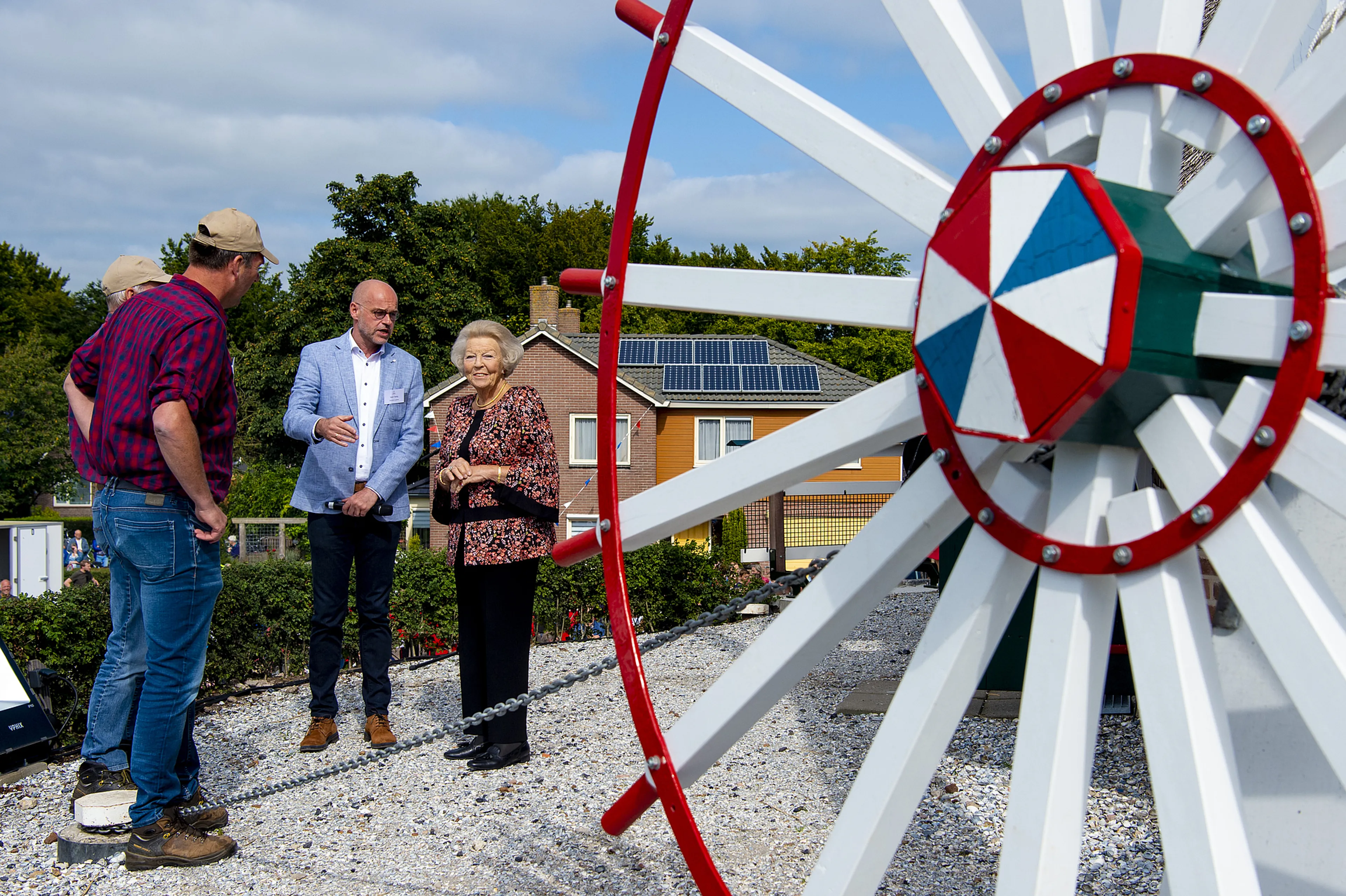 Prinses Beatrix laat in Zuidwolde molen weer draaien