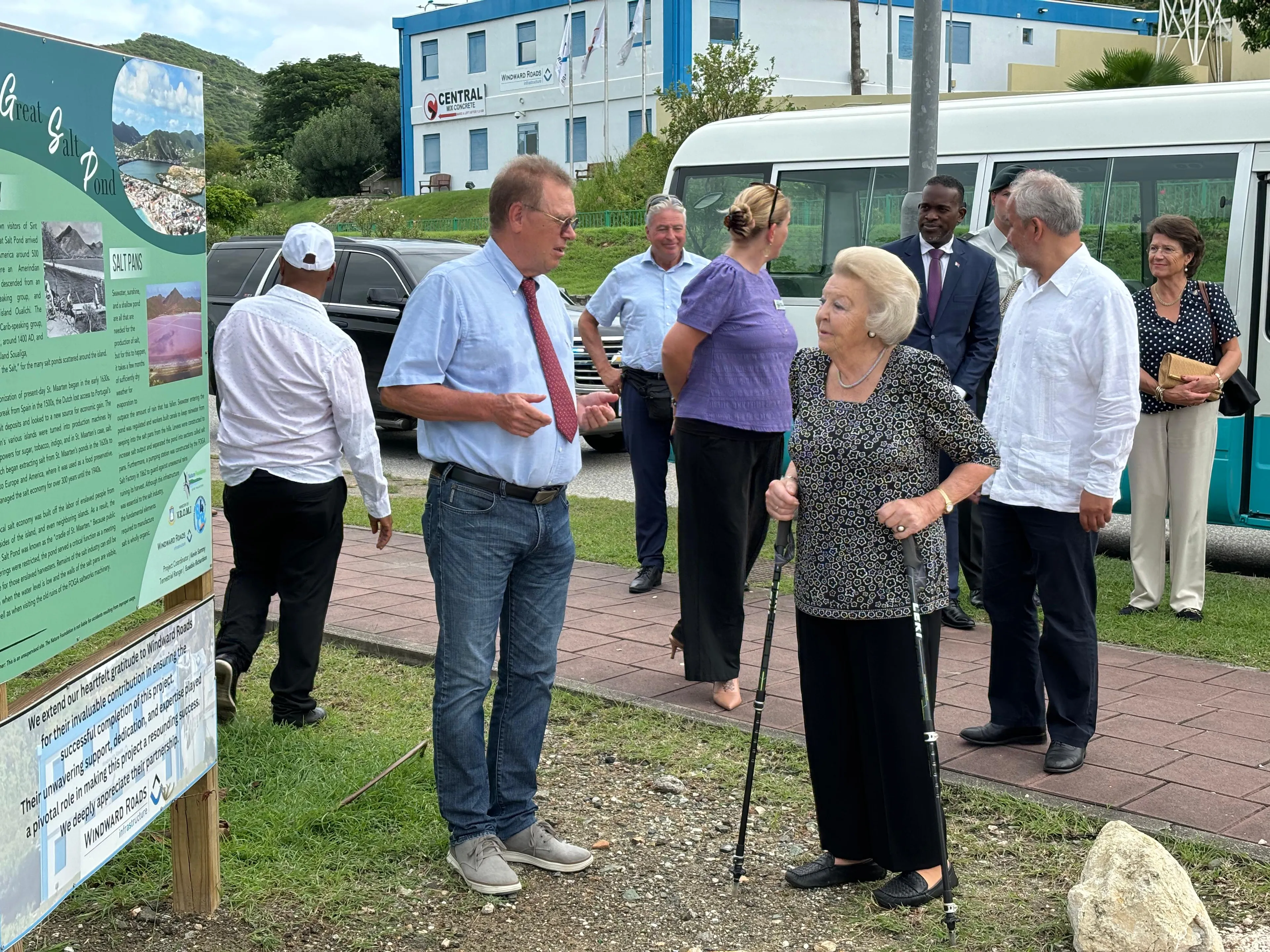 Donderdagochtend begint prinses Beatrix de dag met een korte wandeling over het vlonderpad bij de Salt Pond op Sint Maarten, waar ze uitleg krijgt over lokale vogels. Het pad is speciaal aangelegd om vogels goed te kunnen bekijken.
