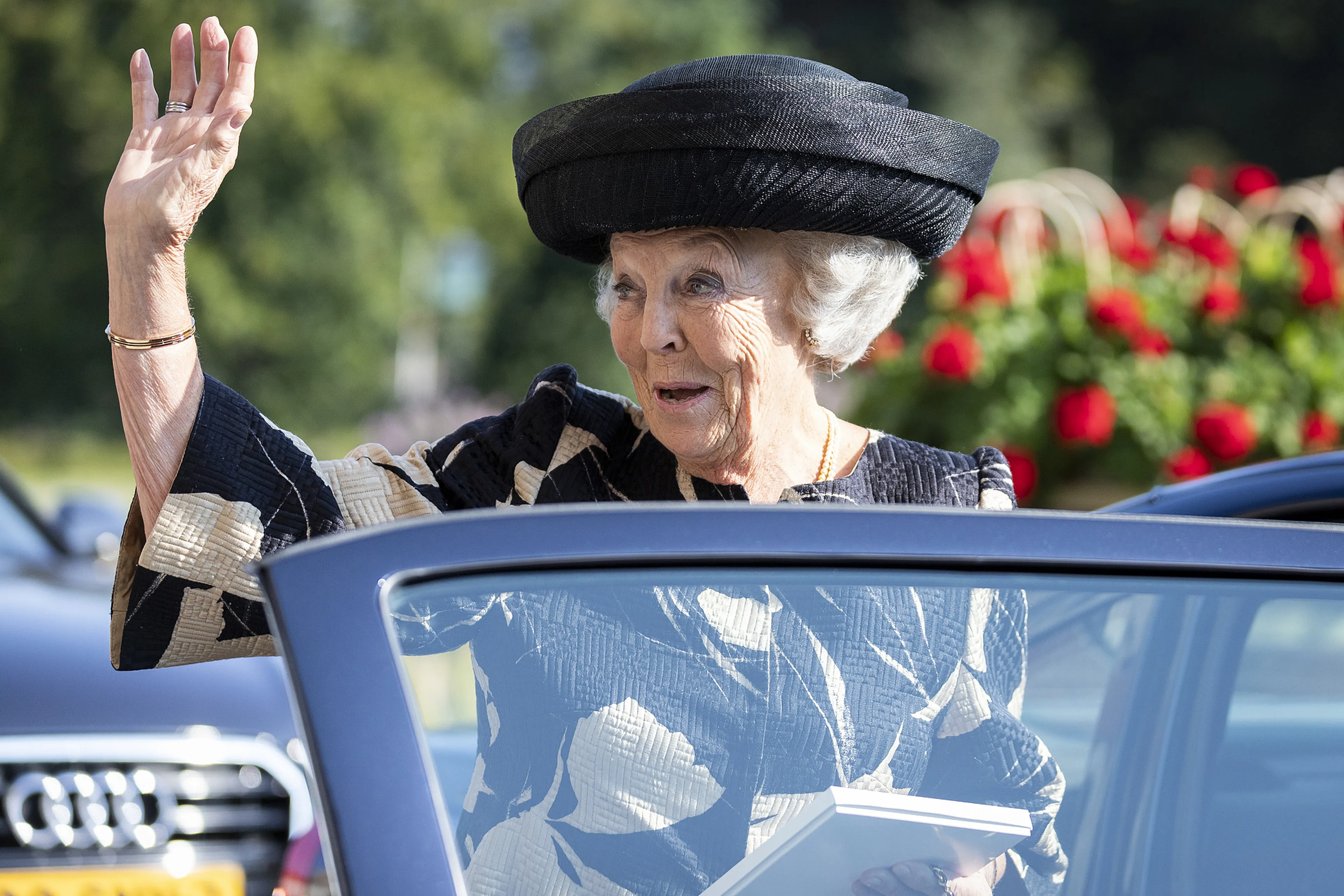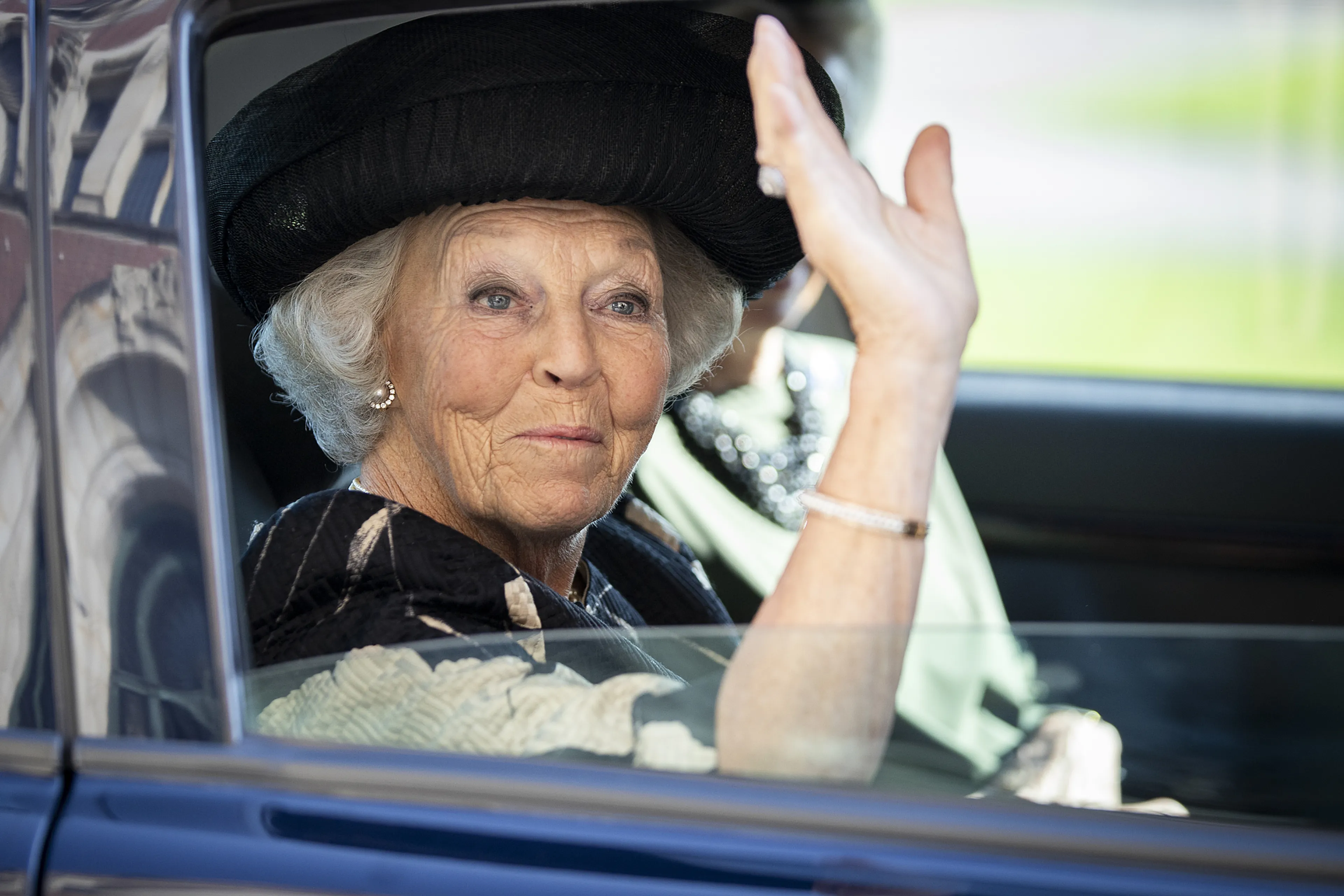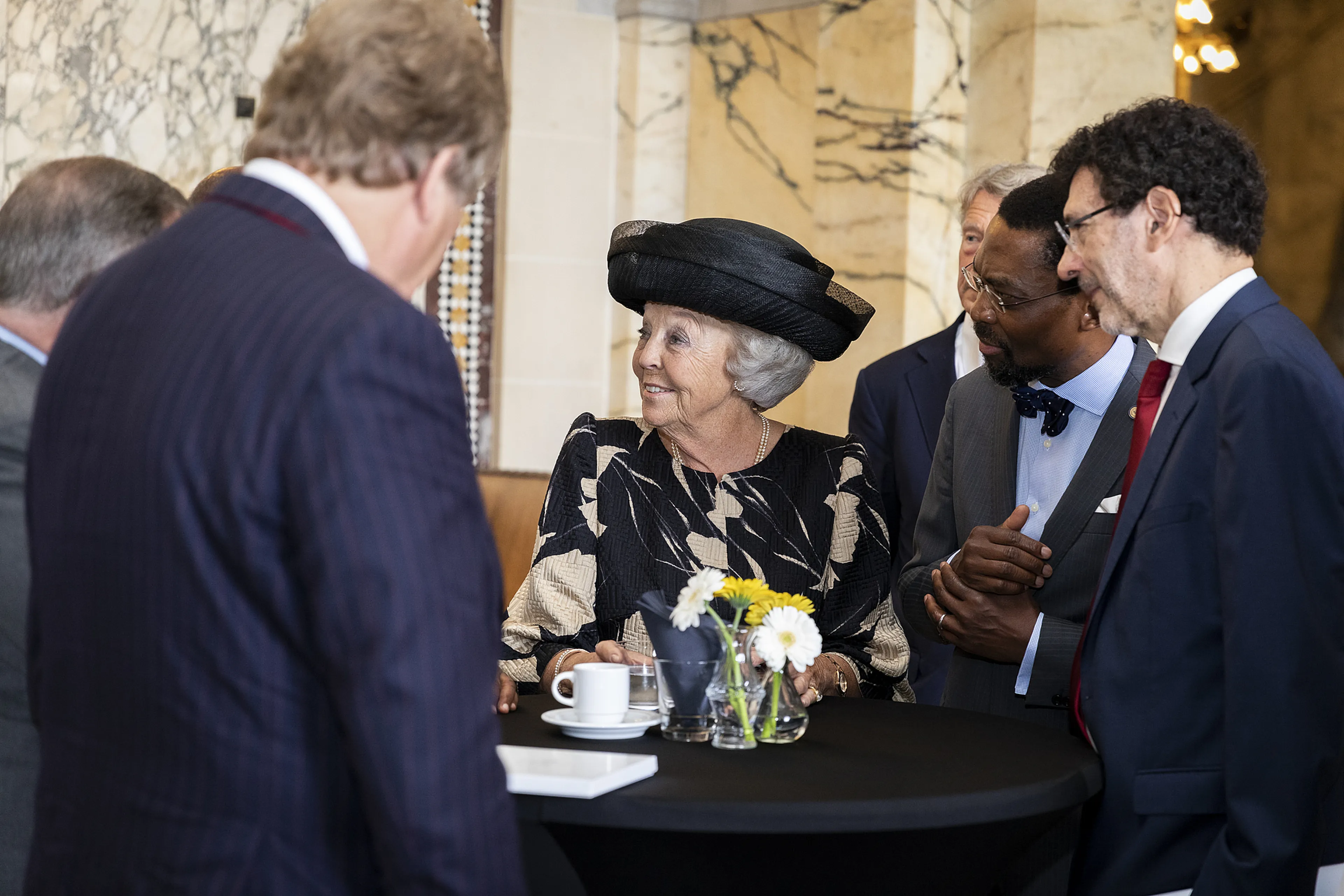Prinses Beatrix was maandagochtend aanwezig bij de opening van de 79e zitting van het Institut de Droit International (IDI) in het Vredespaleis in Den Haag. Het was haar eerste werkbezoek na het overlijden van haar jongste zus, prinses Christina.