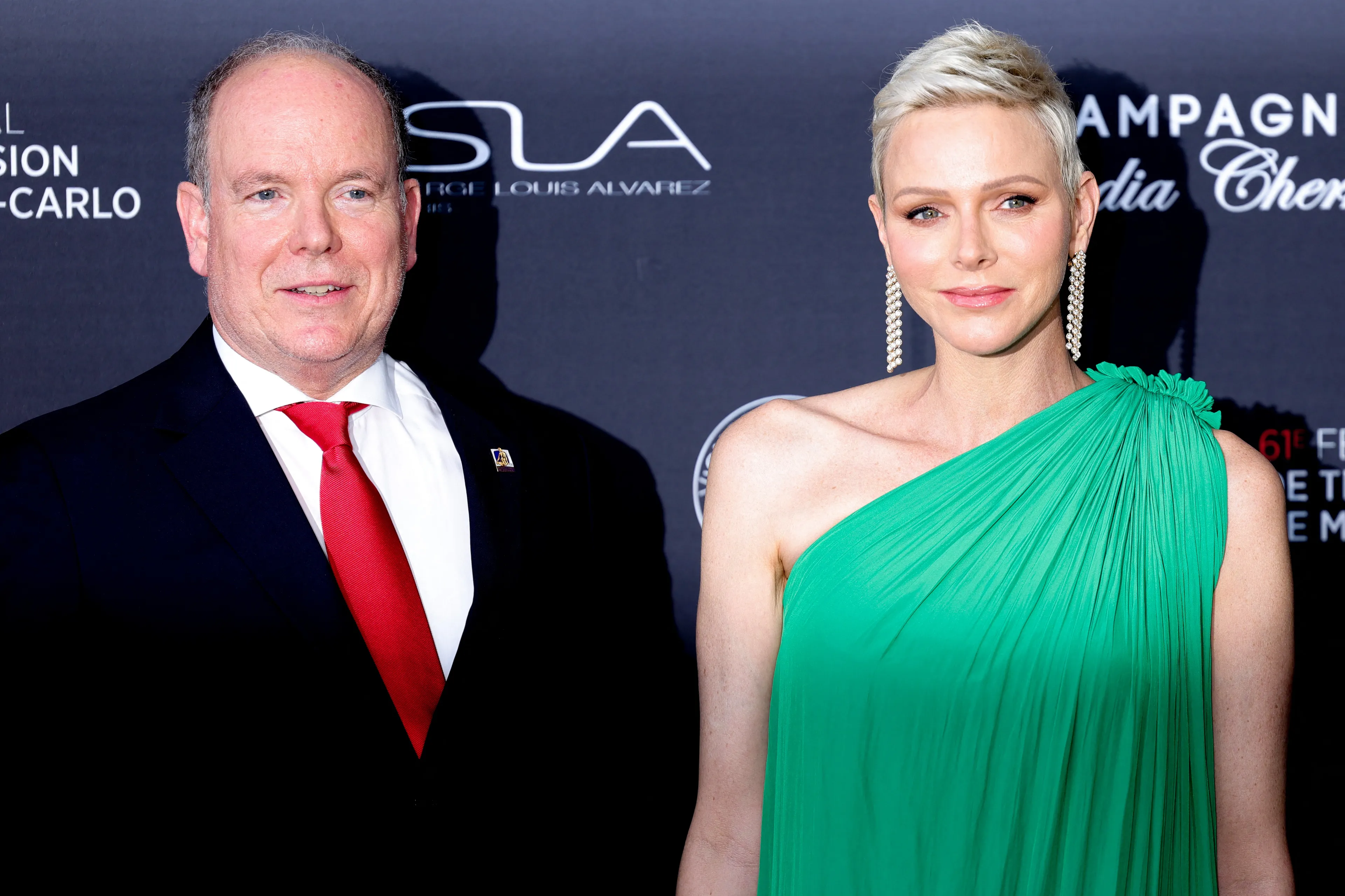 Prinses Charlène schittert in opvallende jurk bij tv-festival
