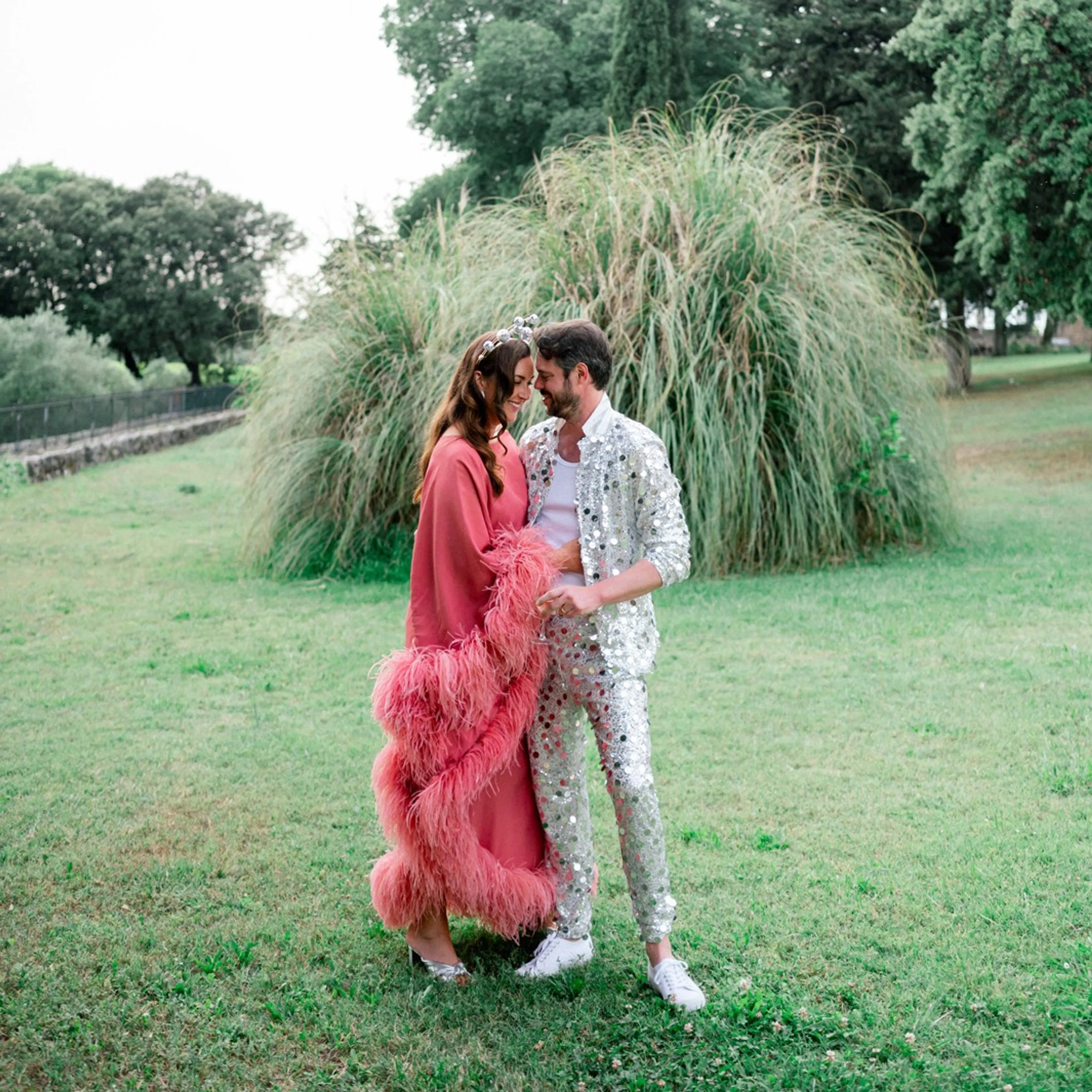 Een prins in een discopak? Dat zie je niet elke dag. Het Luxemburgse hof deelt een feestelijke privéfoto van prins Félix en zijn jarige vrouw prinses Claire. Prinses Claire mag vandaag veertig kaarsjes uitblazen en zij bedankt op social media iedereen voor de verjaardagswensen. De jarige jet draagt op de foto een opvallende roze galajurk en in haar haren draagt ze geen kostbaar diadeem, maar een haarband met discoballen.