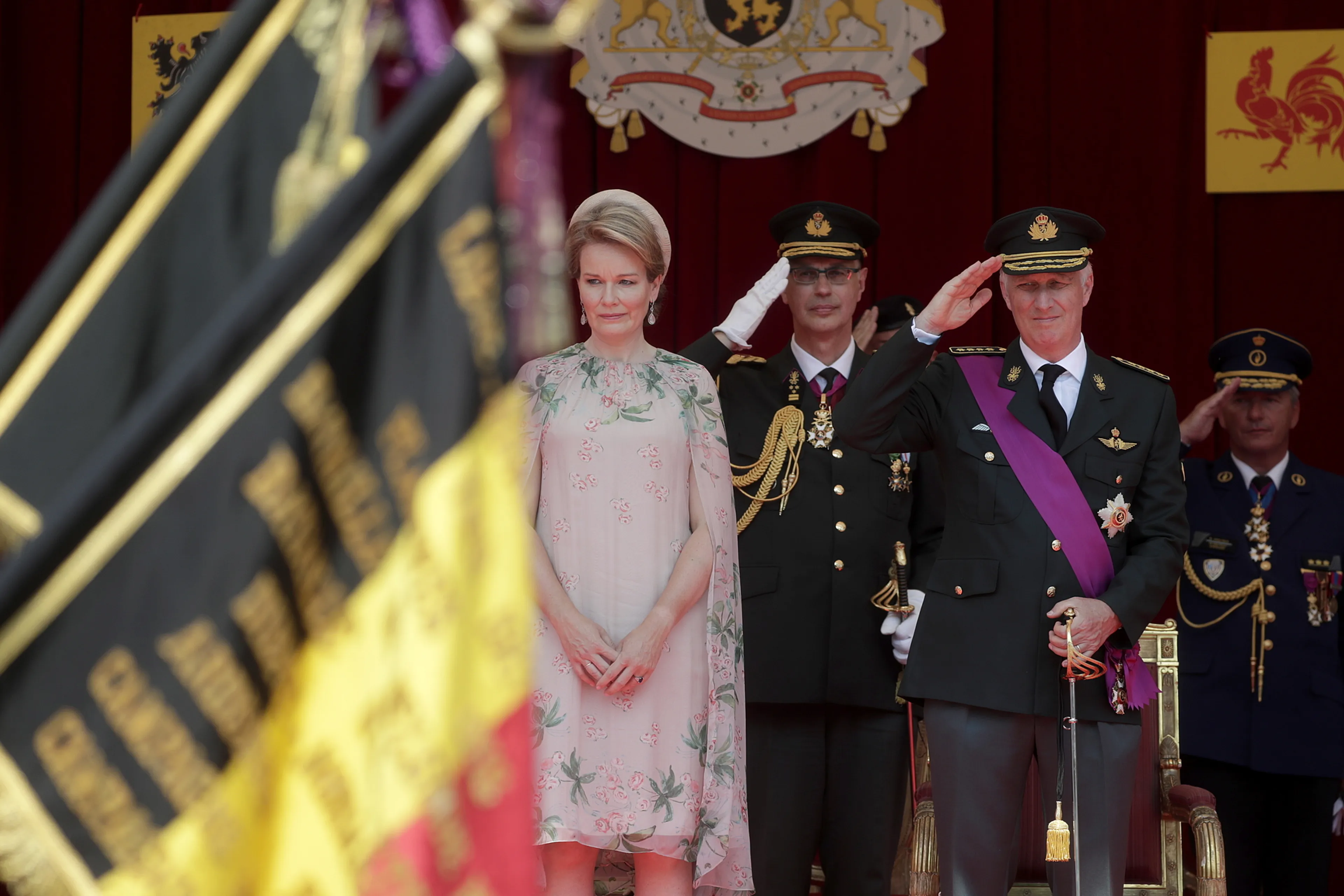 België viert zijn nationale feestdag steevast met een defilé in de hoofdstad Brussel. Dat wordt afgenomen door koning Filip, Delphines halfbroer. De ceremonie is dit jaar een stuk kaler en soberder dan anders. Het leger en andere diensten hebben nog de handen vol in het door overstromingen zwaar getroffen Wallonië.