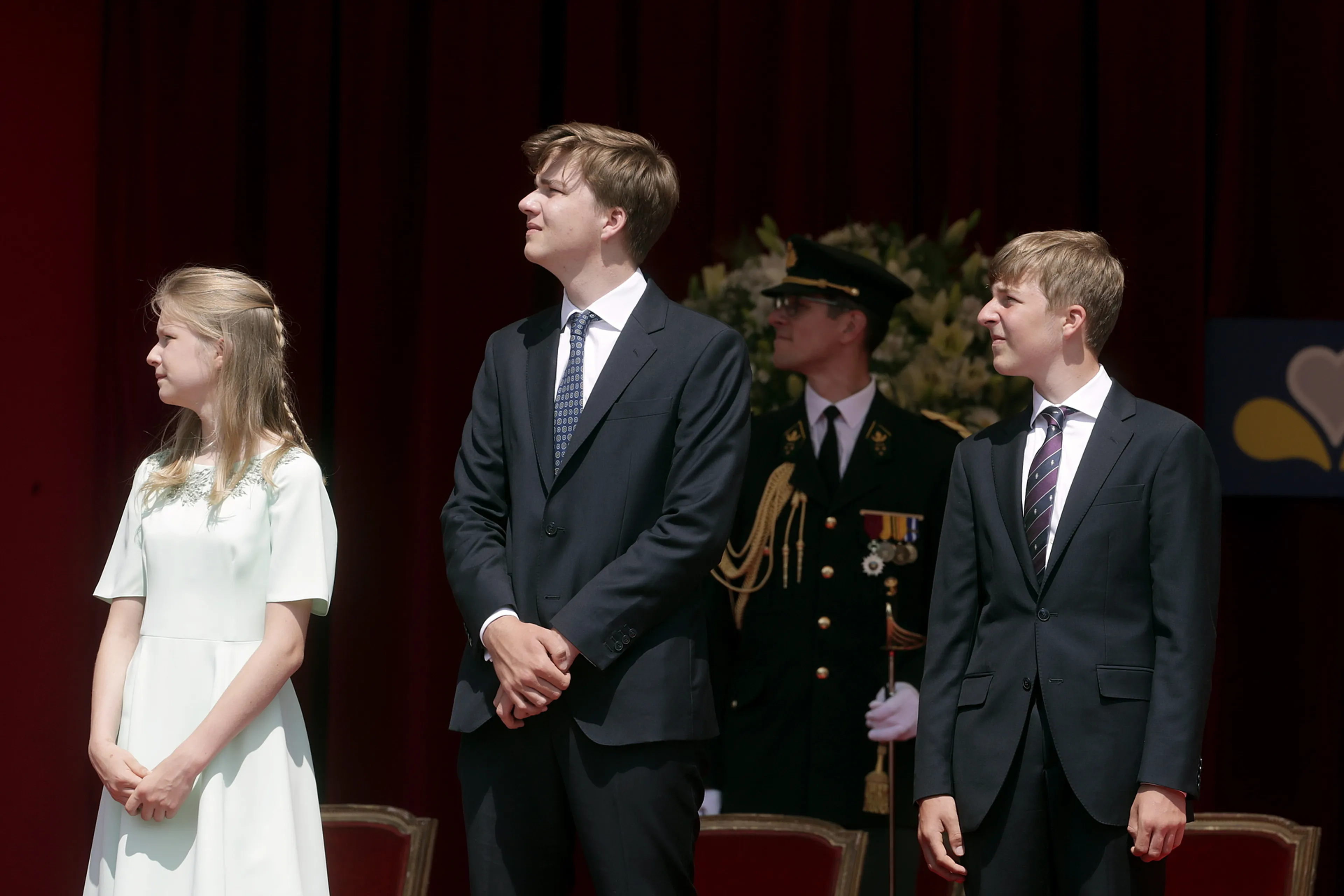 Wel marcheerde kroonprinses Elisabeth langs de koninklijke tribune met haar ouders en andere familie. Ze volgde afgelopen jaar een militaire opleiding.