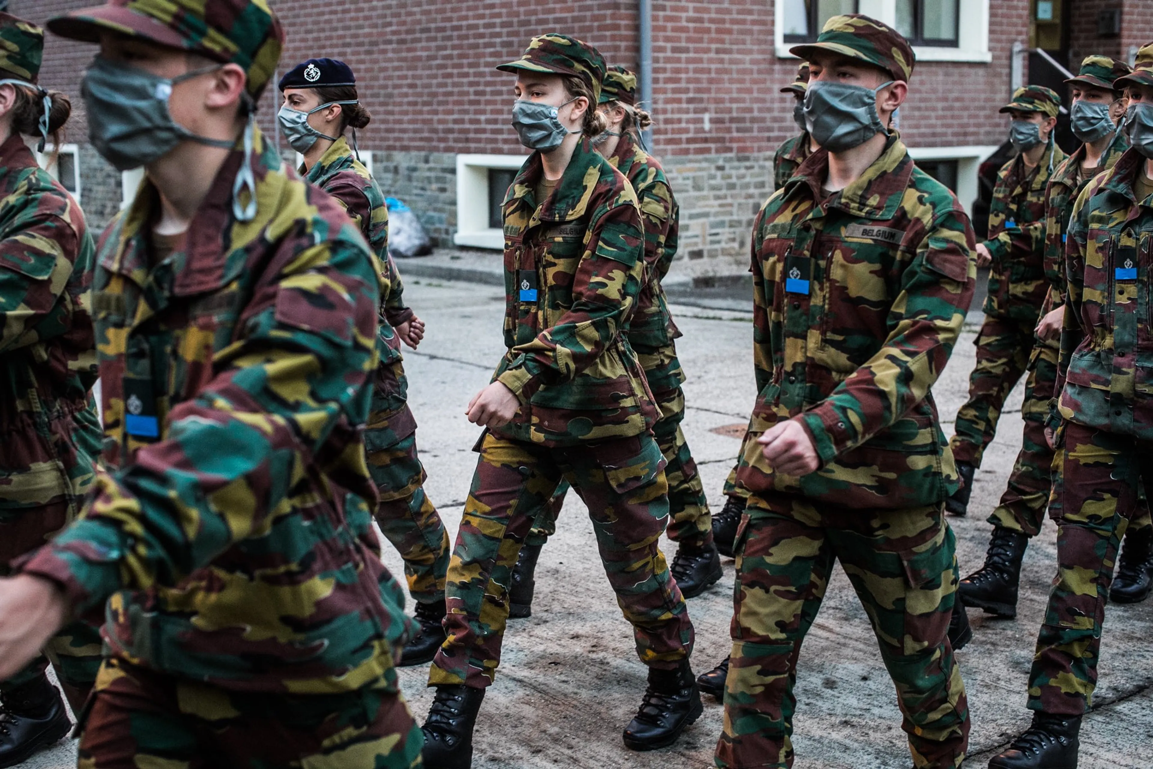 Het Belgische koningshuis heeft op twitter foto's gedeeld van een marcherende hertogin van Brabant in uniform met geweer. Elisabeth is deze zomer begonnen bij de koninklijk militaire academie.