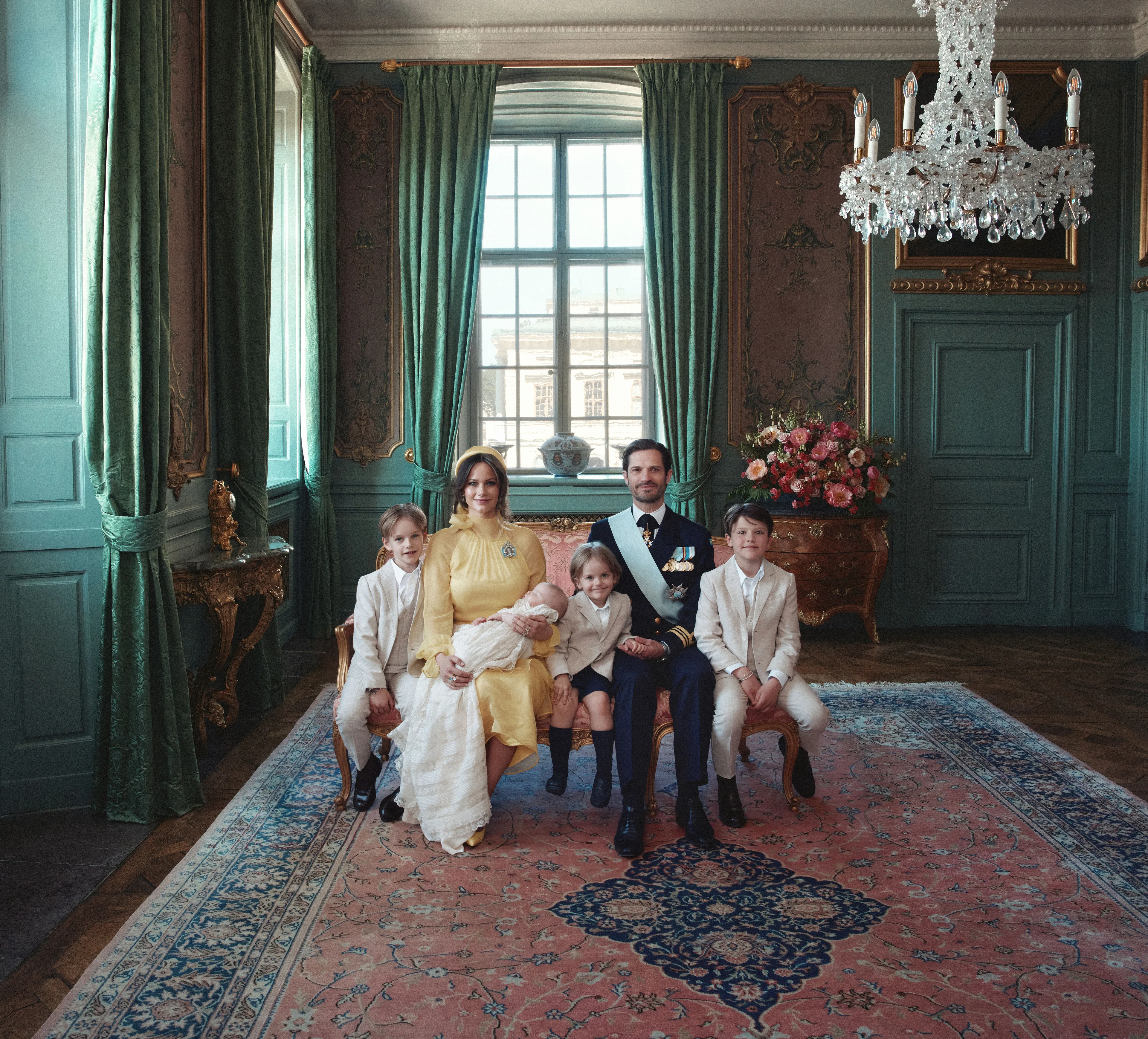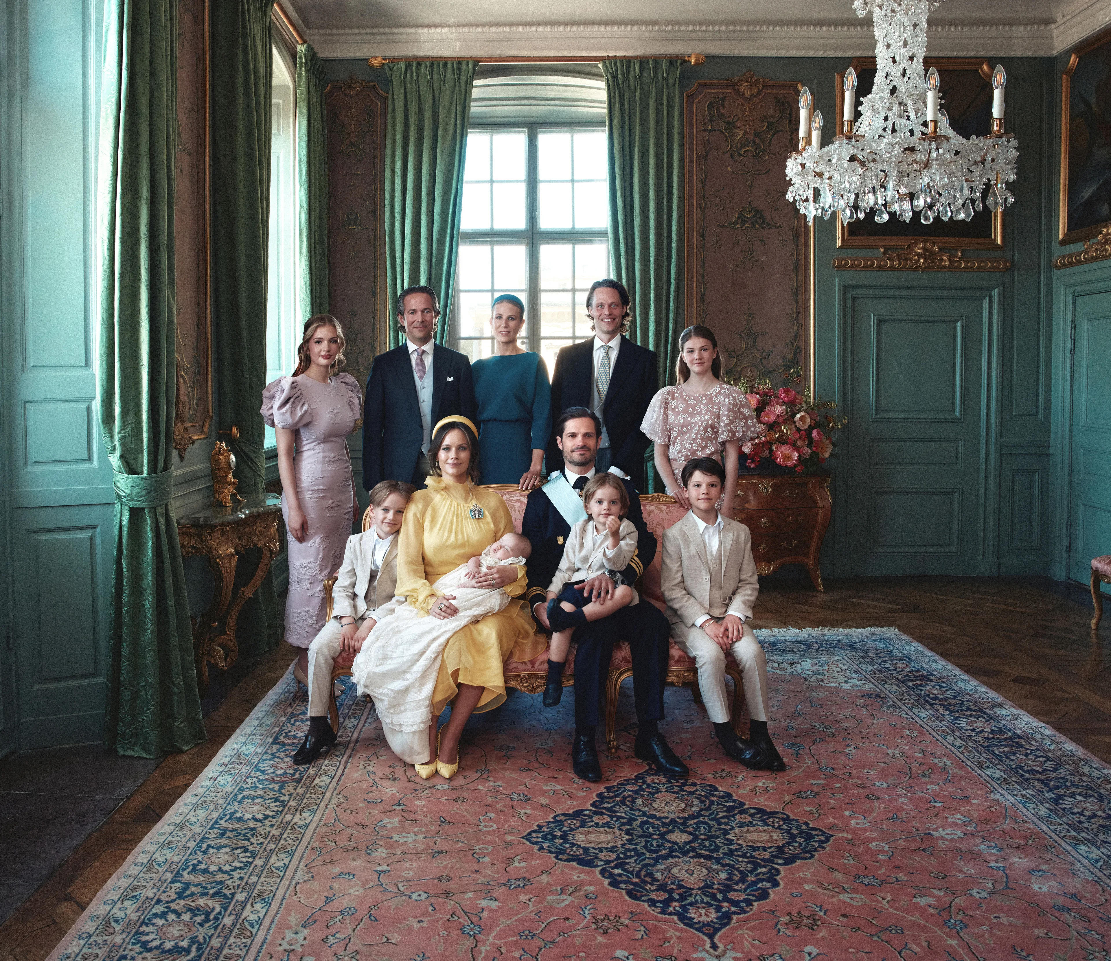 Later die dag deelde het Zweedse hof de officiële foto's met het gezin van prins Carl Philip en prinses Sofia, de koninklijke familie én een samen met de peetouders.