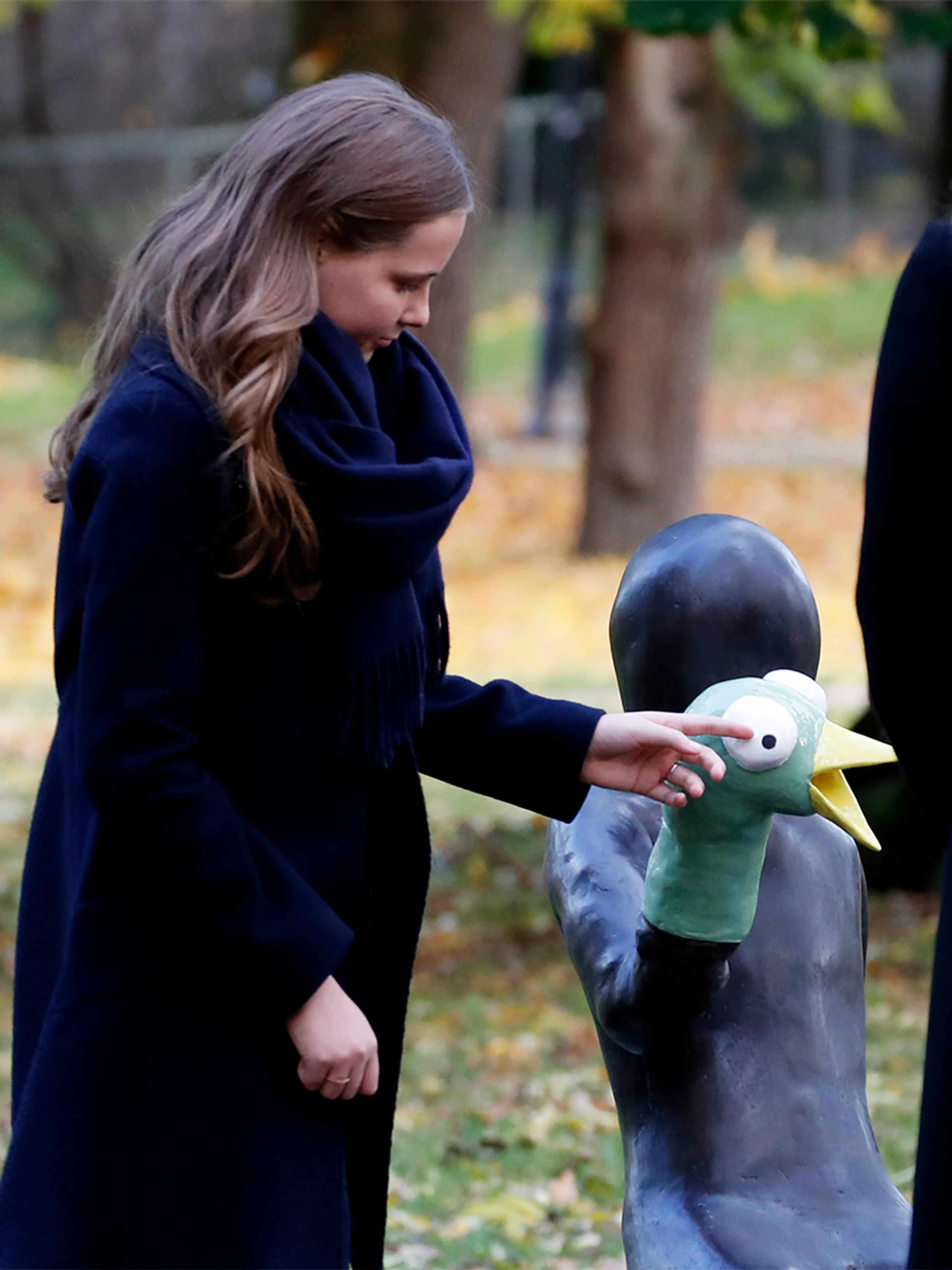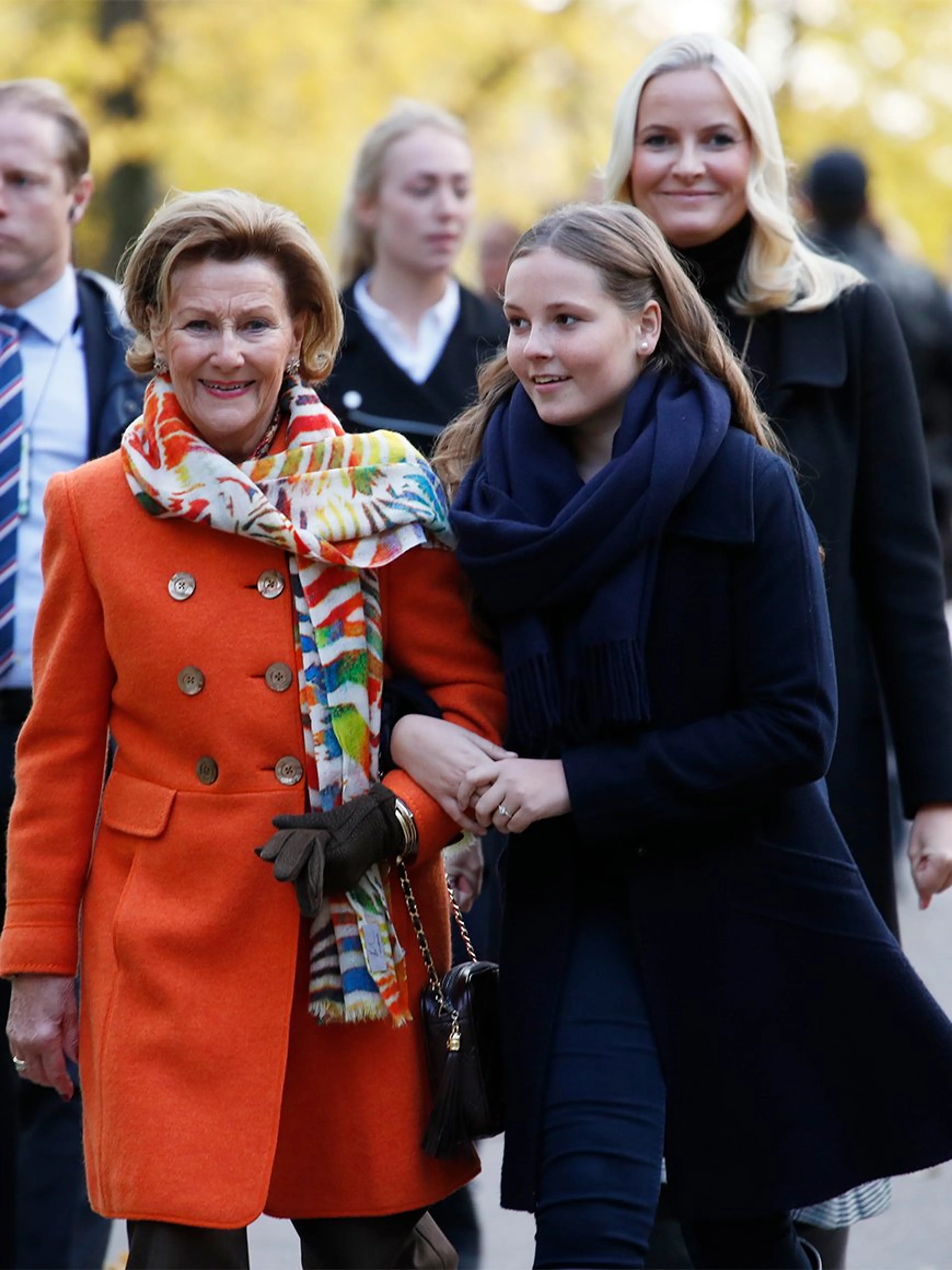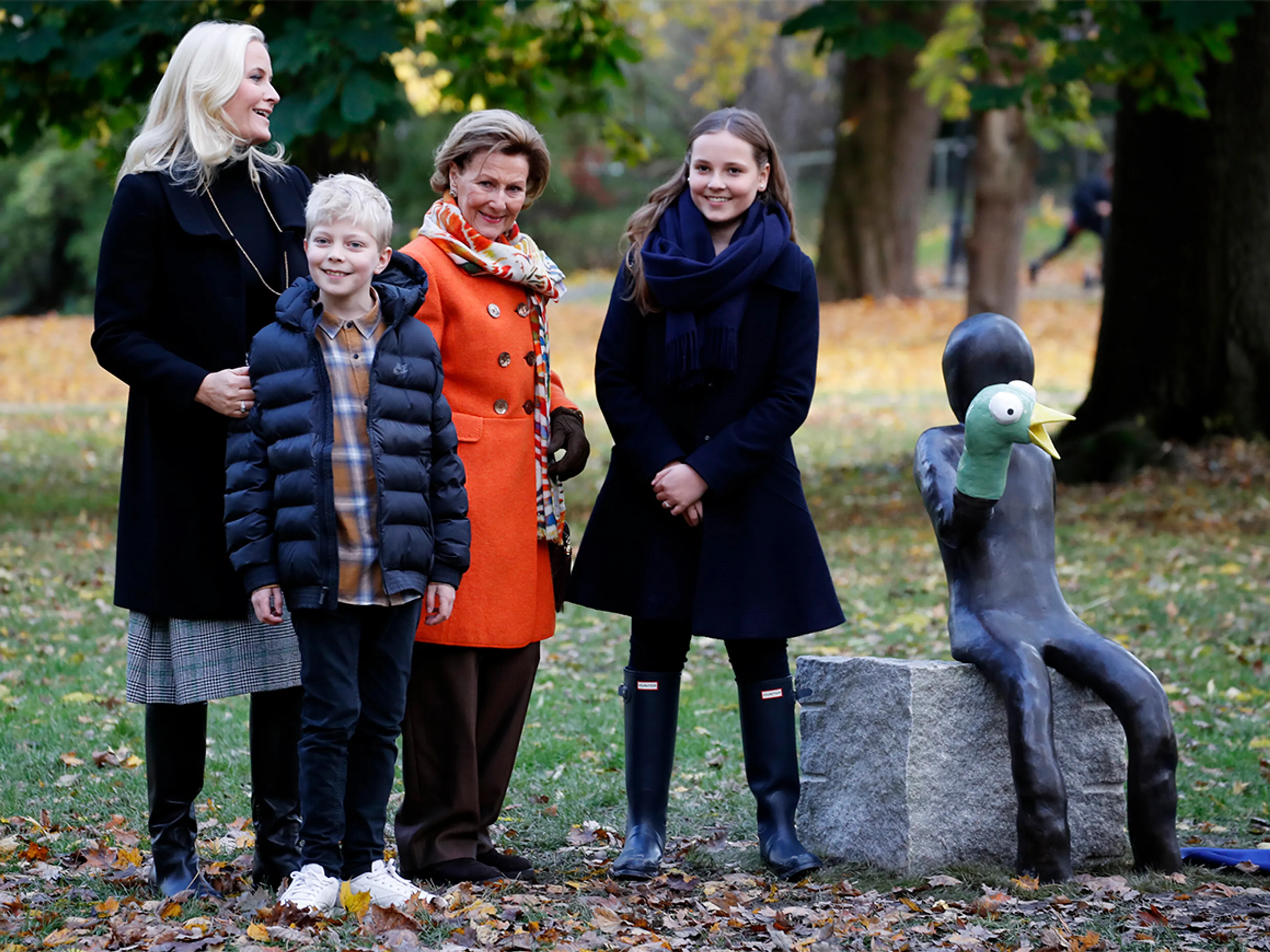 De Noorse prinses Ingrid Alexandra (13) heeft donderdagmiddag onder toeziend oog van haar moeder kroonprinses Mette-Marit en oma koningin Sonja twee beelden onthuld in de naar haar vernoemde Ingrid Alexandra-beeldentuin in het Slottspark bij het koninklijk paleis in Oslo.