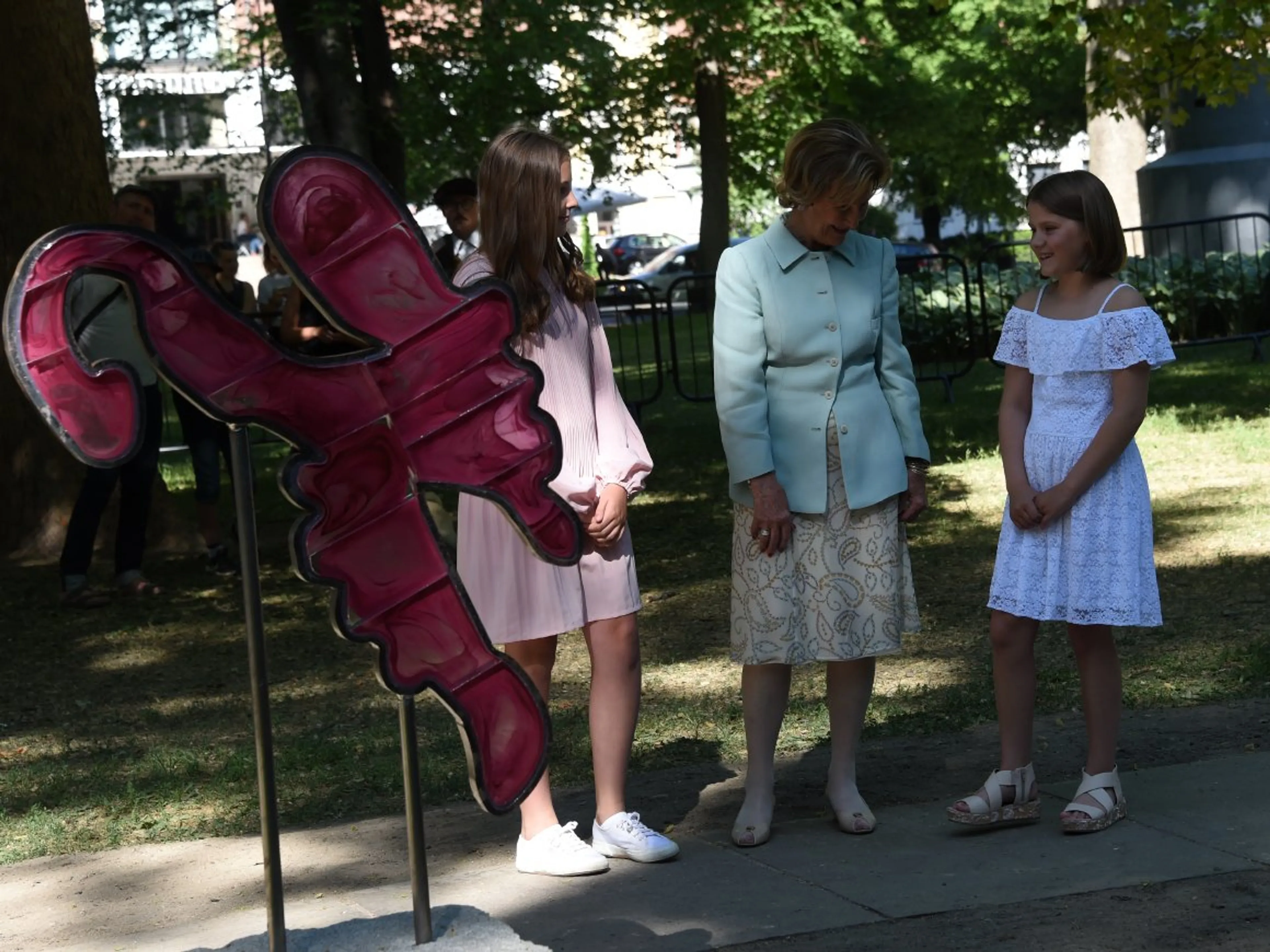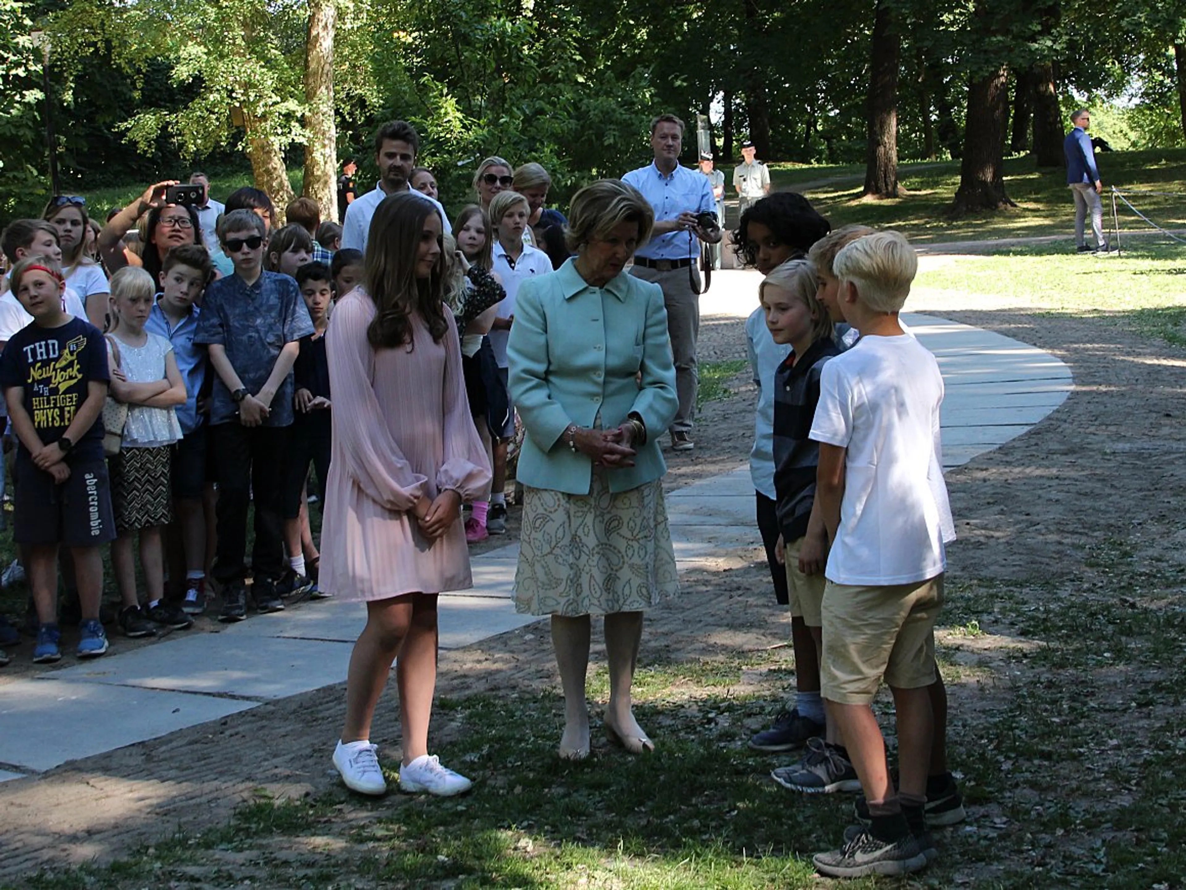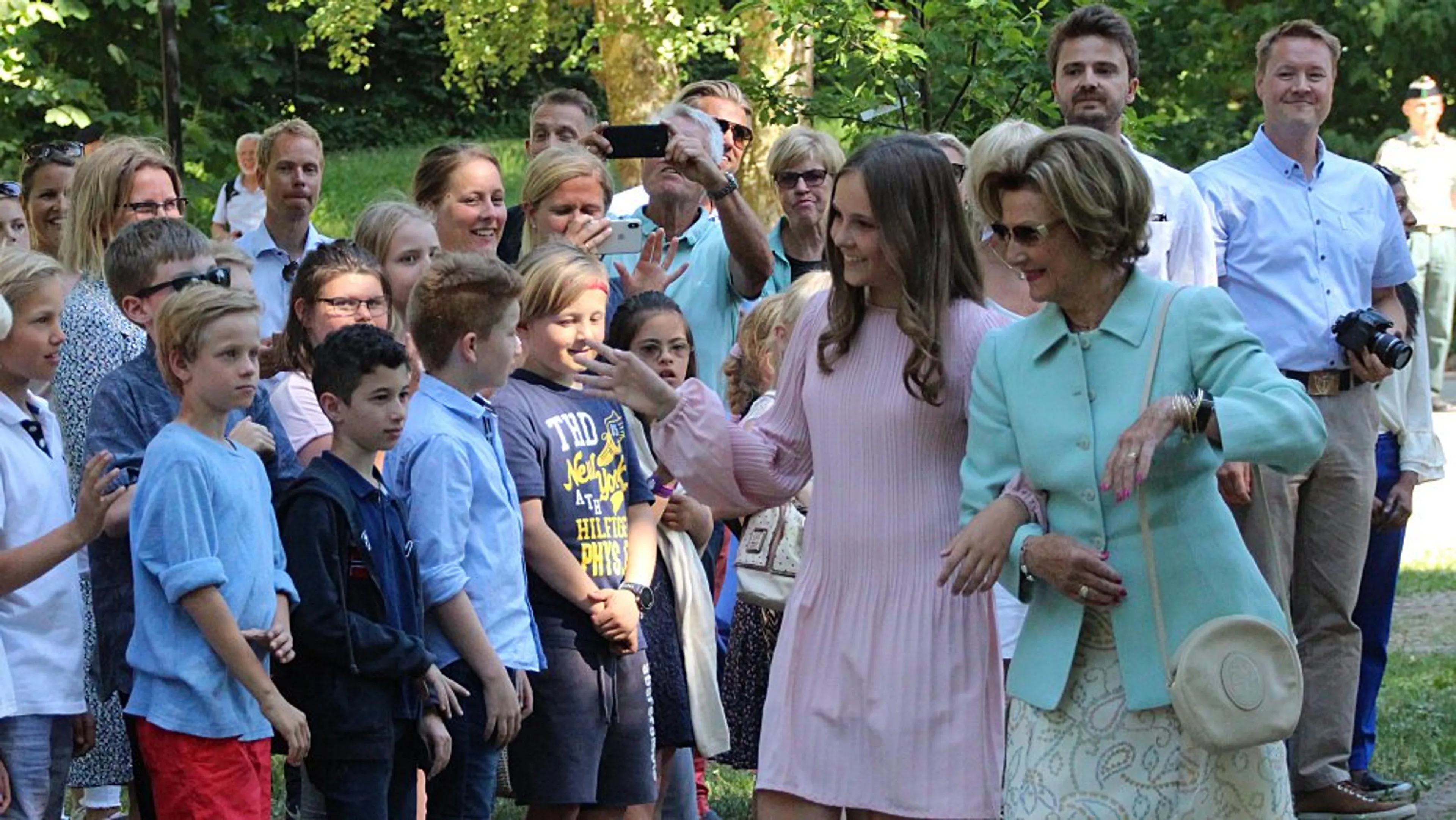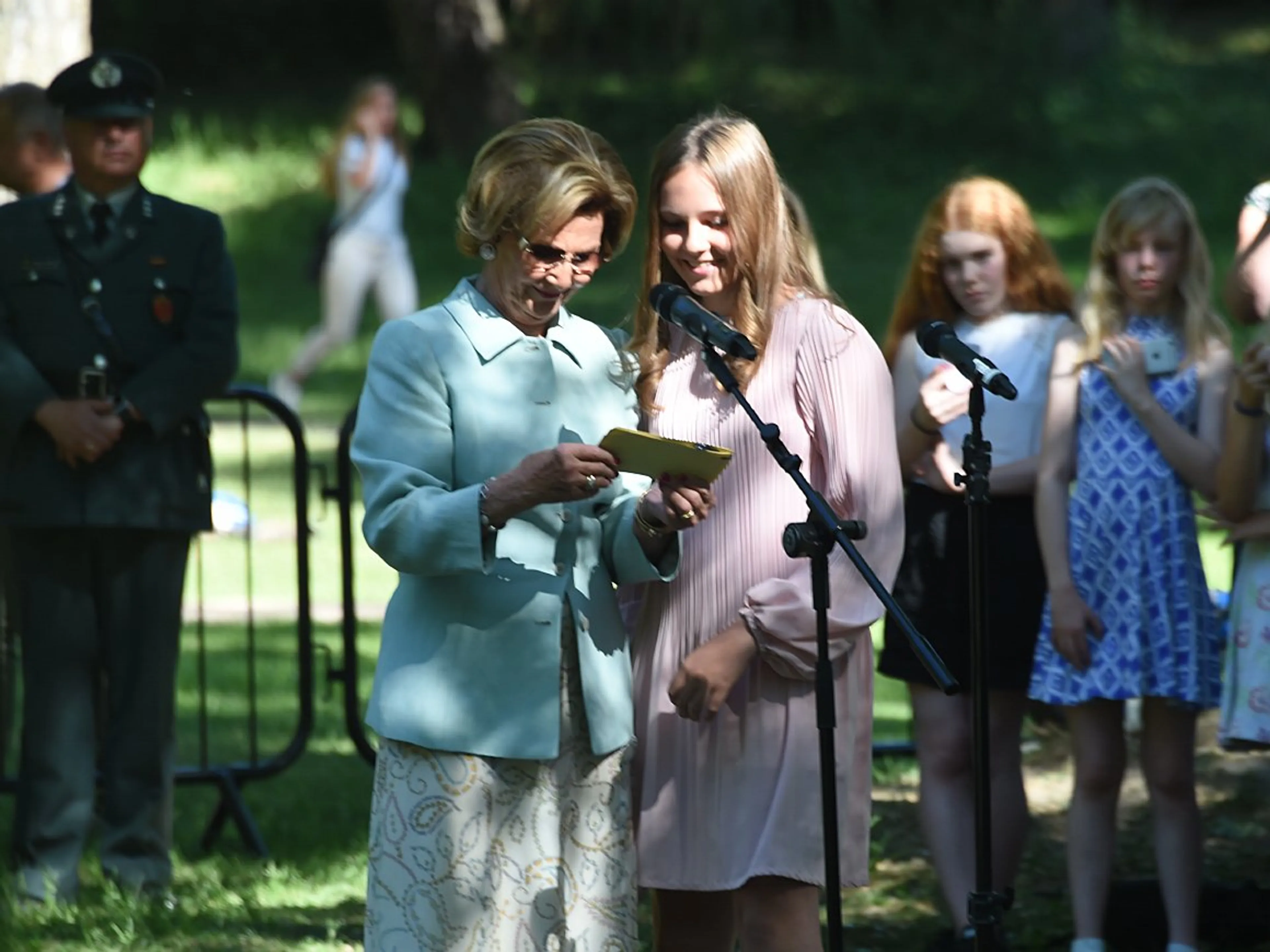 De zeven scholieren werden samen met hun familie en klasgenoten in het beeldenpark getrakteerd op broodjes en sap voordat de onthulling van de sculpturen plaatsvond. Onder tromgeroffel onthulde prinses Ingrid Alexandra één voor één de beelden.