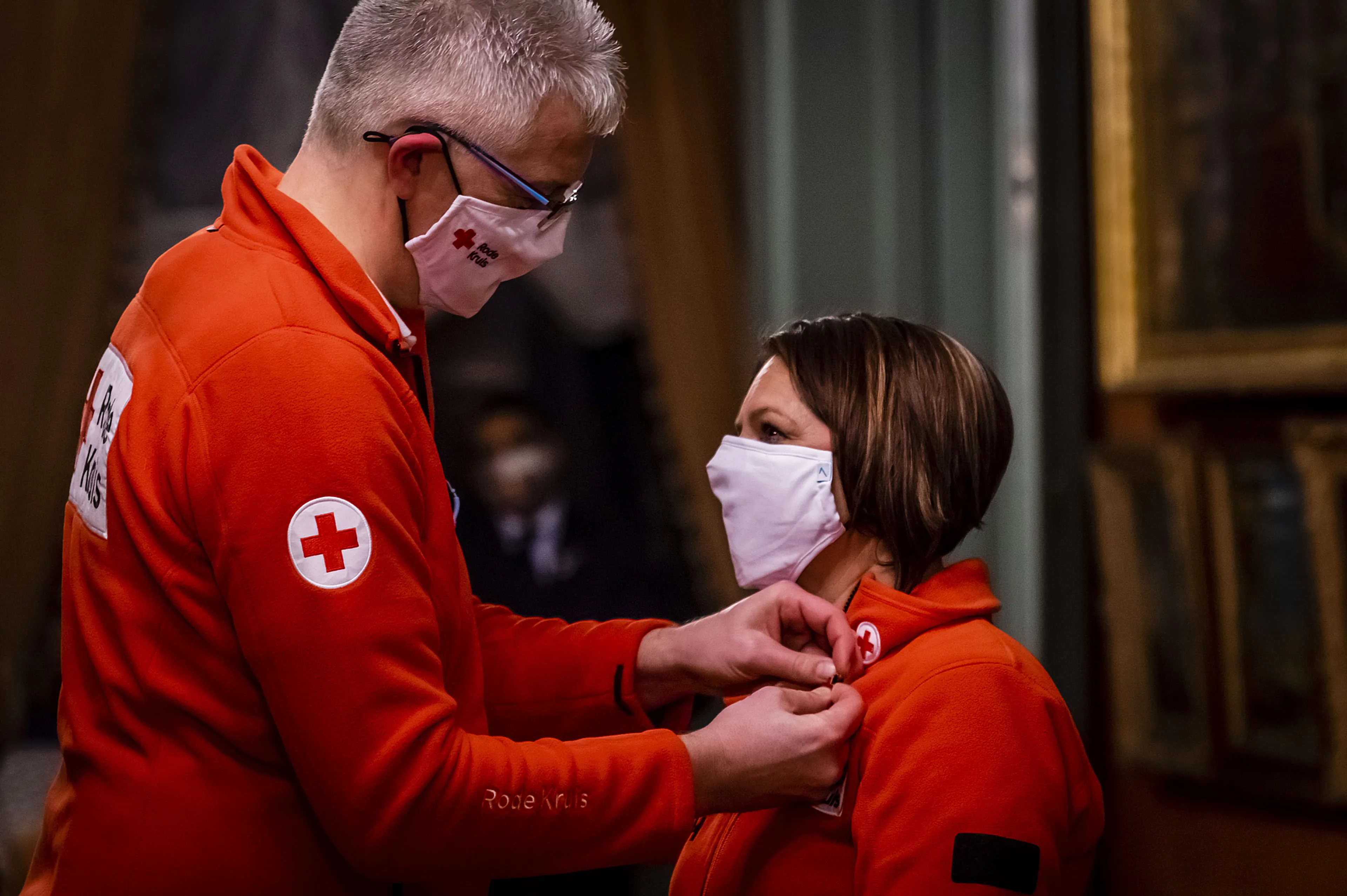 In het afgelopen jaar hebben de vrijwilligers "zich vol overgave ingezet voor de bestrijding van het coronavirus én dat doen zij nog steeds", stelt het Rode Kruis. "Deze inzet is de grootste sinds WOII en de Watersnoodramp in 1953. Daarom worden de vrijwilligers tijdens een speciale bijeenkomst in Den Haag geëerd met een herinneringsmedaille", aldus het Rode Kruis.