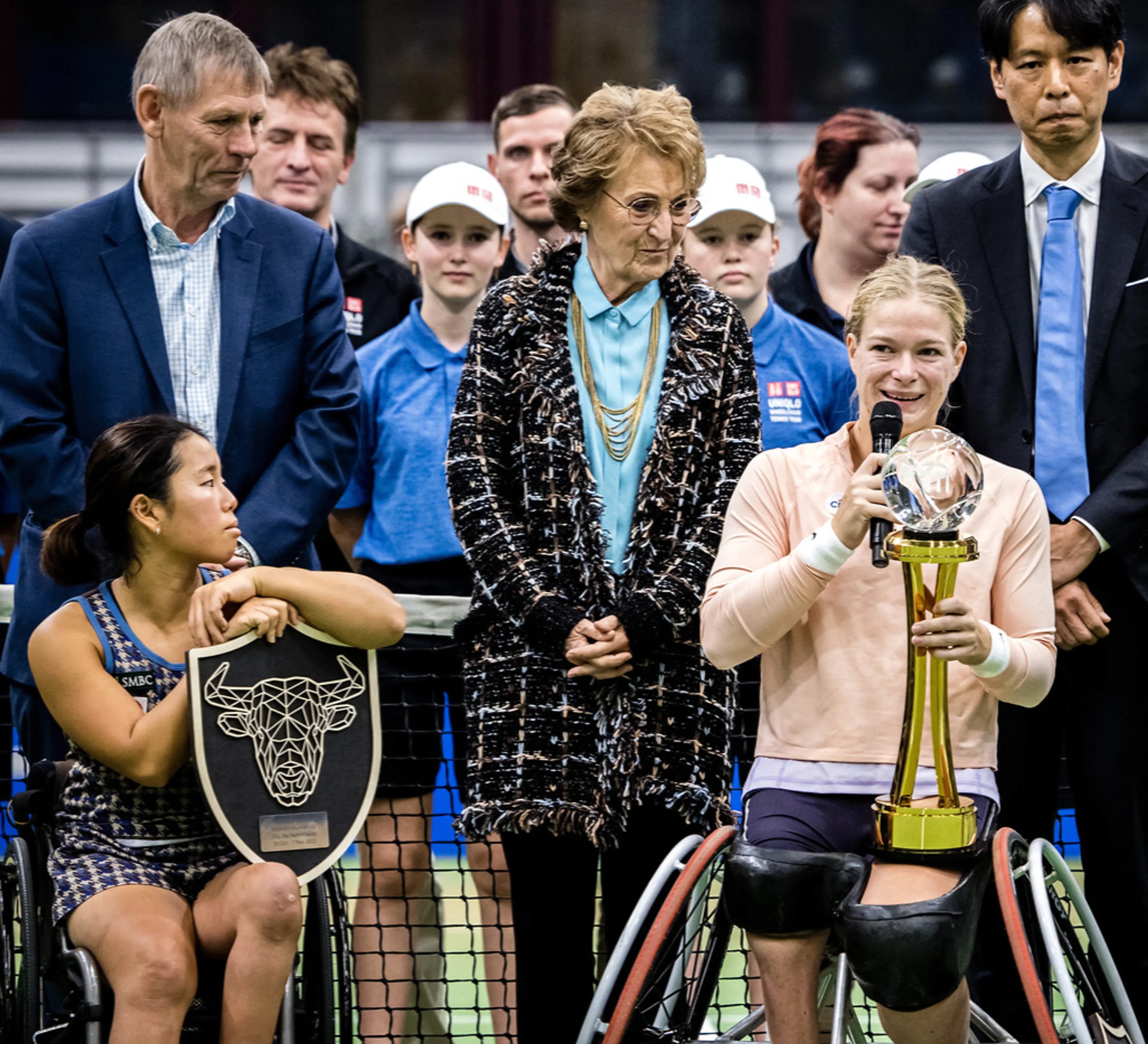 Prinses Margriet overhandigt prijs aan rolstoeltennisster