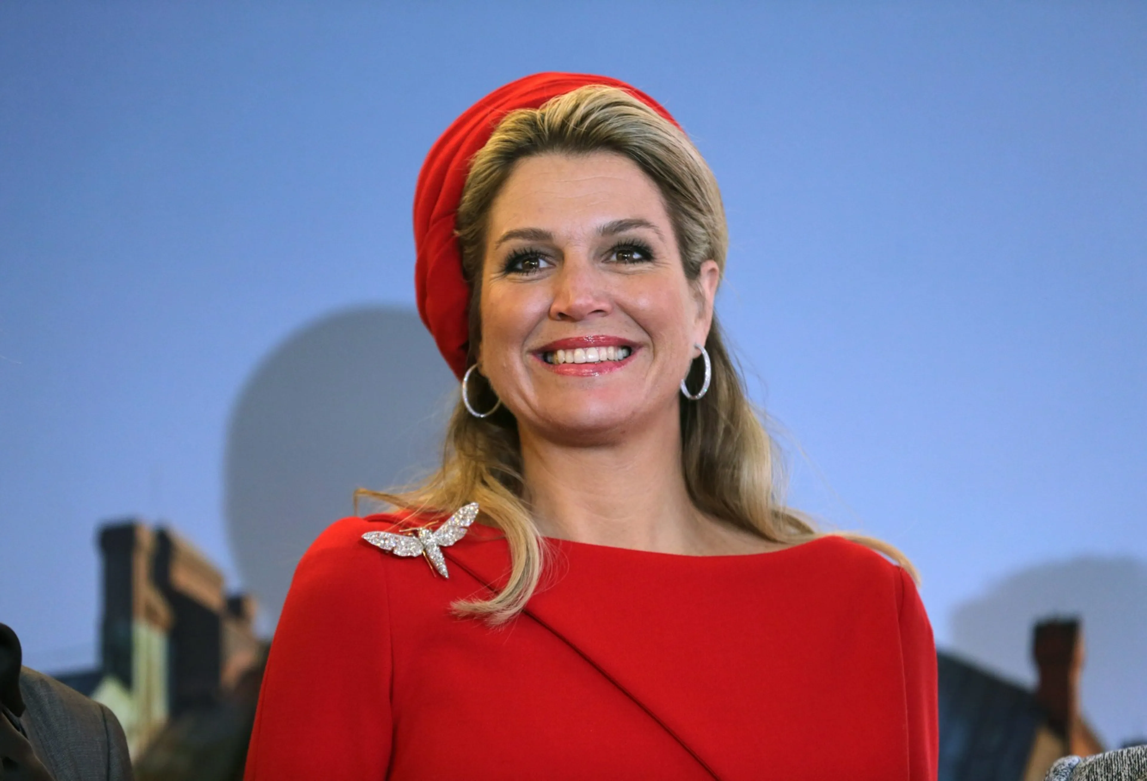 De ontwerper van deze turban hoed is Fabienne Delvigne. Máxima is dol op deze hoed, we hebben hem al een paar keer eerder gezien. De koningin droeg de hoed tijdens de opening van de Markthal in Rotterdam in 2014.