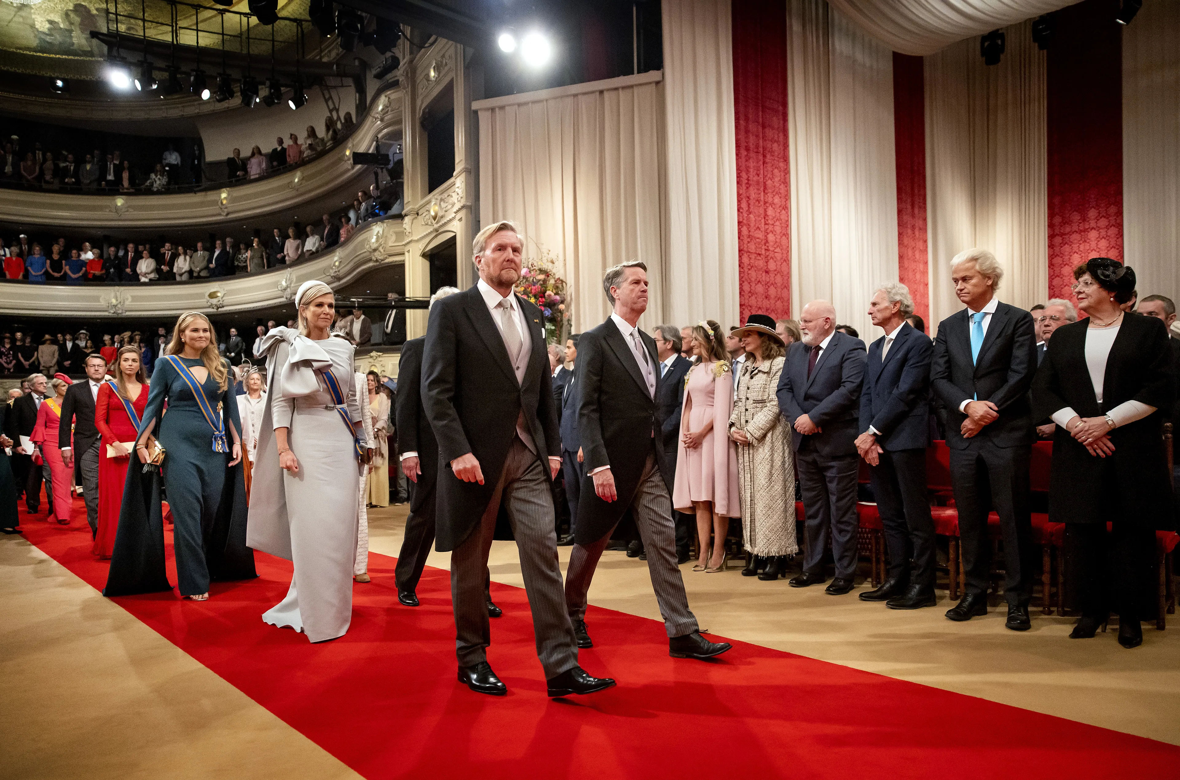 Kort na hun aankomst bij de schouwburg wordt koning Willem-Alexander aangekondigd. Samen met koningin Máxima, prinses Amalia, prinses Alexia, prins Constantijn, prinses Laurentien en een aantal ministers komt hij de Koninklijke Schouwburg binnen. De koning en de koningin nemen plaats voor de Troonrede en kort na binnenkomst begint de koning met het voorlezen ervan. De prinsessen Amalia en Alexia zitten naast elkaar op de eerste rij.