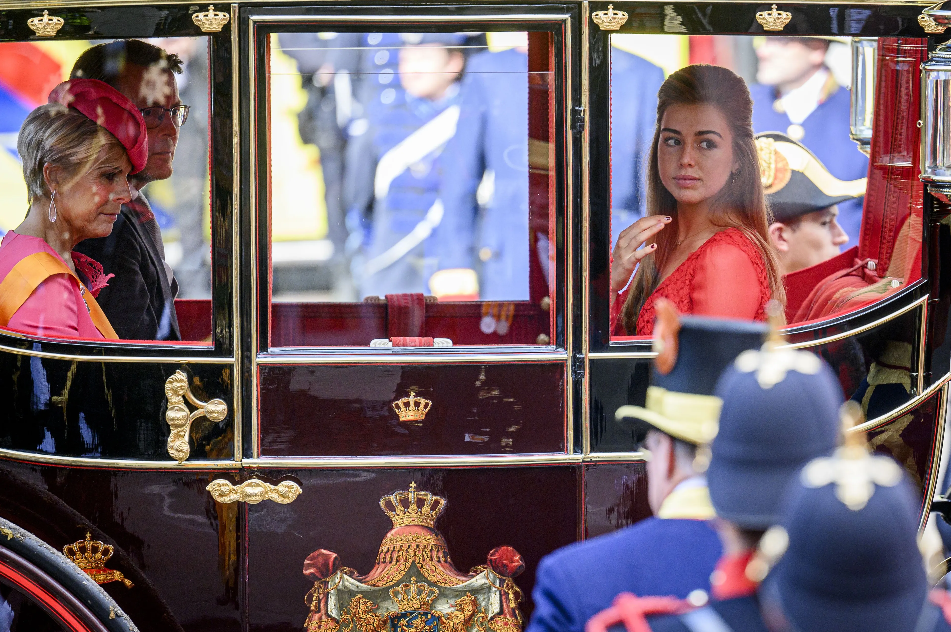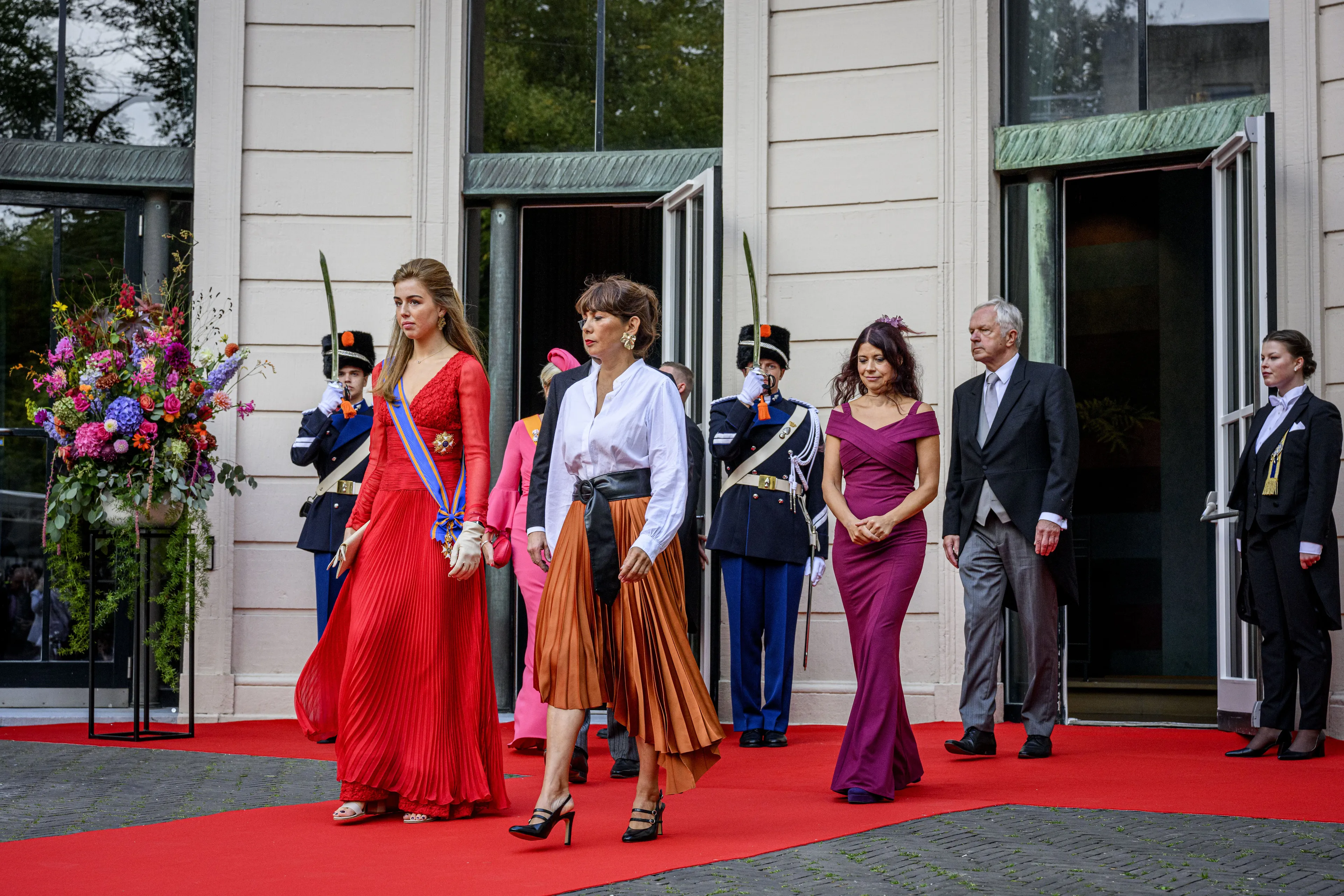 Even na 13:00 uur is het zover: de eerste leden van het Koninklijk Huis vertrekken vanaf Paleis Noordeinde richting de Koninklijke Schouwburg. Prinses Alexia, prins Constantijn en prinses Laurentien nemen plaats in de Gala Glas Berline. Prinses Laurentien stapt als eerste in, daarna volgen prinses Alexia en prins Constantijn. Prinses Alexia is dit jaar voor de tweede keer aanwezig tijdens Prinsjesdag.