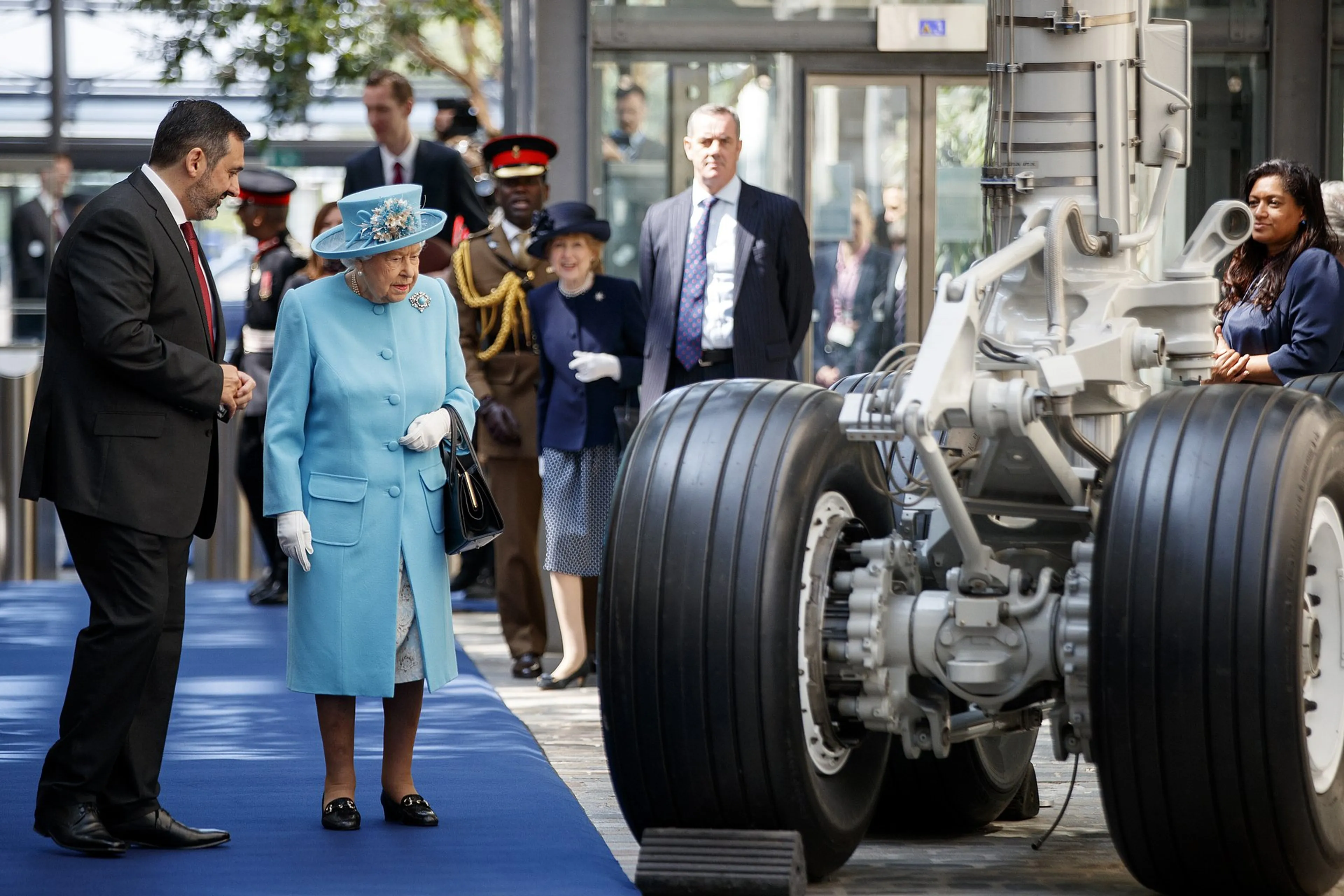De Britse koningin ontmoette medewerkers die gekleed waren in uniformen sinds de jaren 30 tot nu. Aan de hand van historische voorwerpen, foto's en documenten over vliegtuigmodellen kreeg de koningin daarna een kijkje in honderd jaar Britse luchtvaartgeschiedenis.