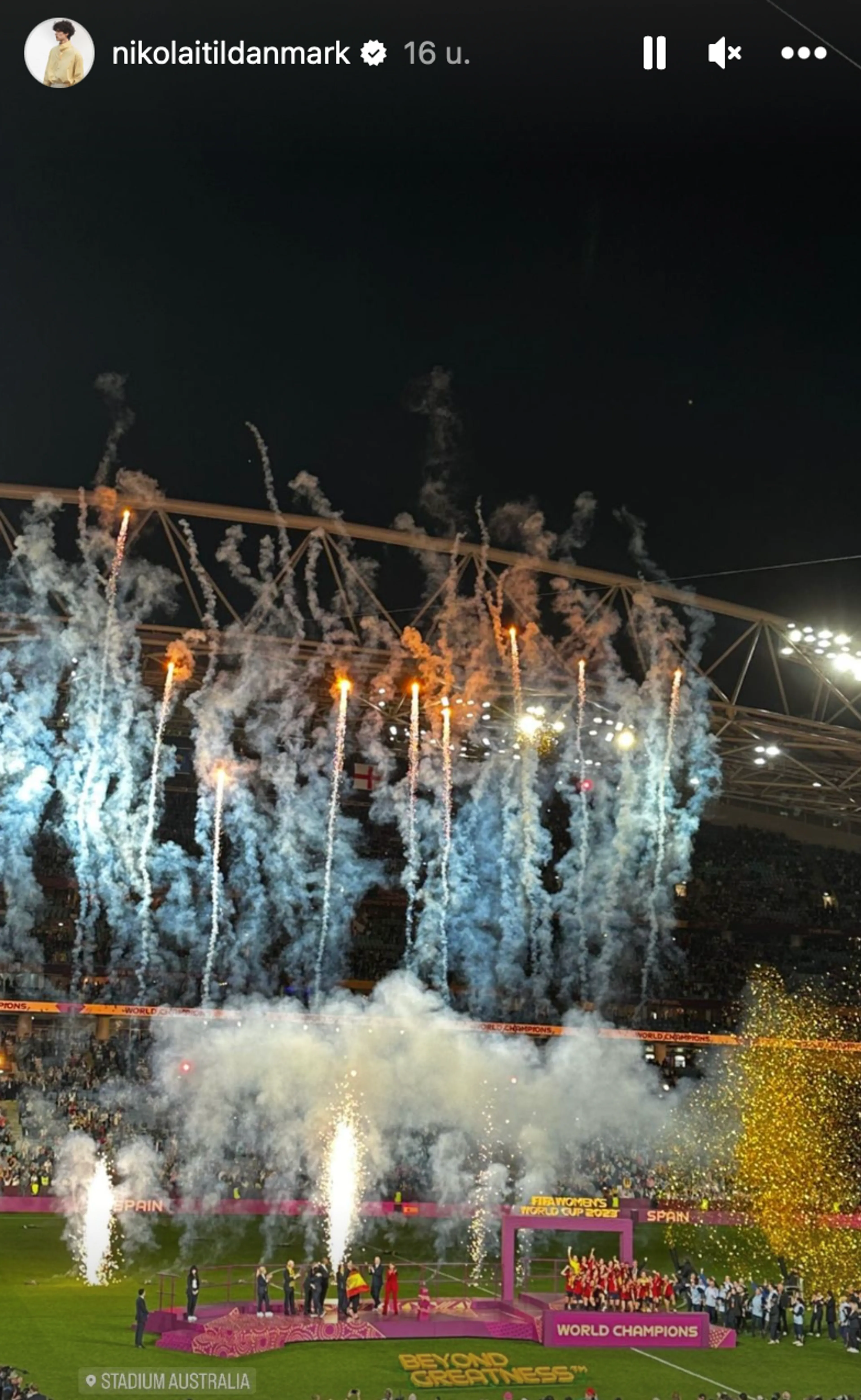 Niemand minder dan de graaf van Monpezat keek zijn ogen uit in Australië. De Deense zoon van prins Joachim en zijn eerste vrouw Alexandra Christina Manley was een van de koninklijke gasten op het sportieve toernooi down under. In zijn verhaal op Instagram laat hij zien dat hij in het stadion zit waar op dat moment de bloedstollende finale wordt gespeeld tussen Engeland en Spanje.