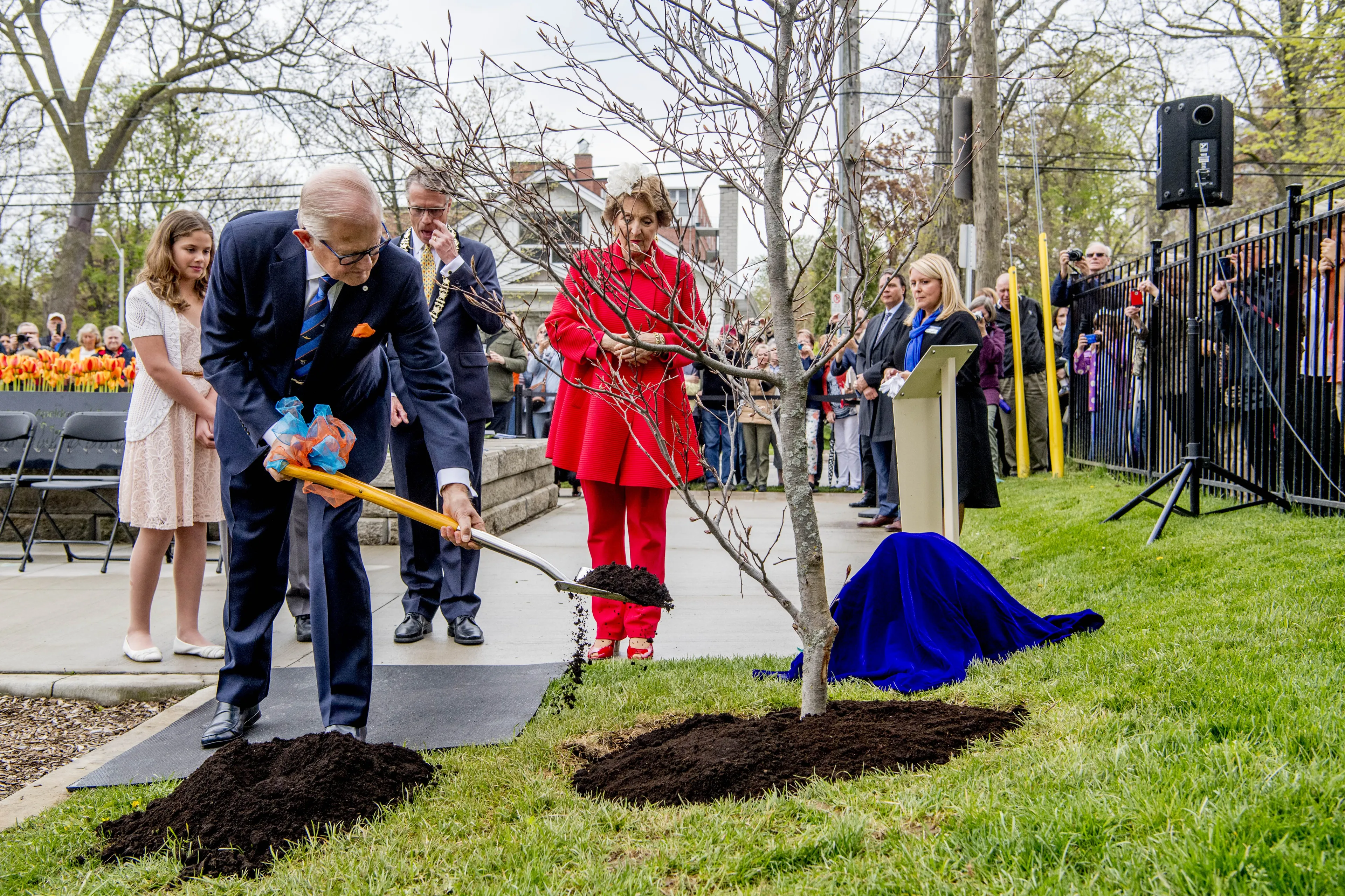 Het is niet alleen in Nederland een traditie om bomen te planten bij koninklijk bezoek. In 2016 plantten prinses Margriet en prof. mr. Pieter van Vollenhoven samen een boom tijdens een bezoek aan Canada. Helemaal buitenlands was de plek overigens niet. De boom staat in het Apeldoornpark in het Canadese Burlington.