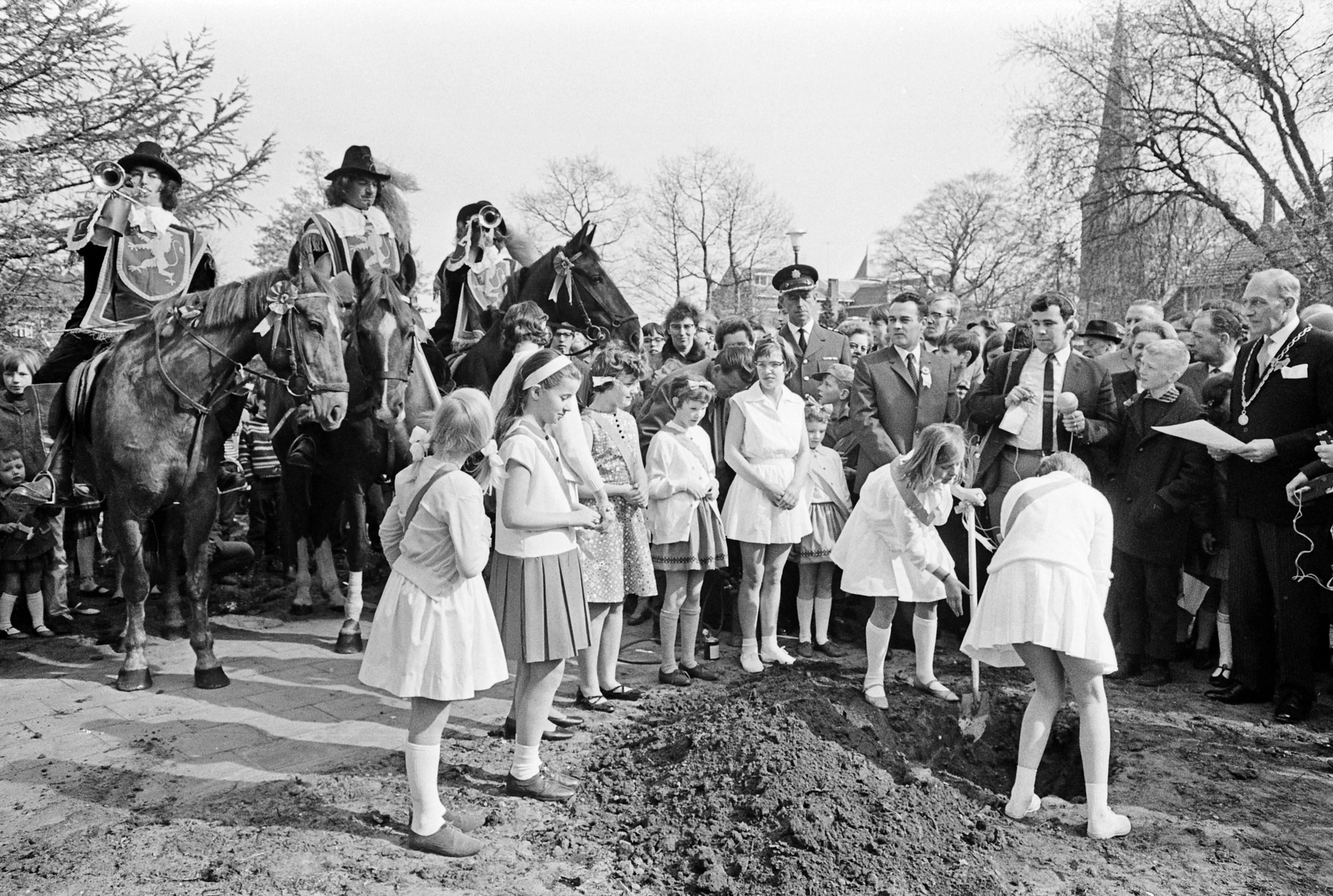 Een foto uit de oude doos! Zonder royal, maar wel ter gelegenheid van een royal. Deze foto is genomen op 28 april 1967. De boom op de foto is geplant ter gelegenheid van de geboorte van Willem-Alexander. Bij de boom is ook een oorkonde begraven. Daar staat onder andere de tekst: 'Ter gelegenheid van de geboorte van de eerste Oranjetelg uit het huwelijk van Prinses Beatrix en Prins Claus.' De boom staat nabij het gemeentehuis in Baarn in het Oranjepark. Schoolkinderen hebben de boom geplant.