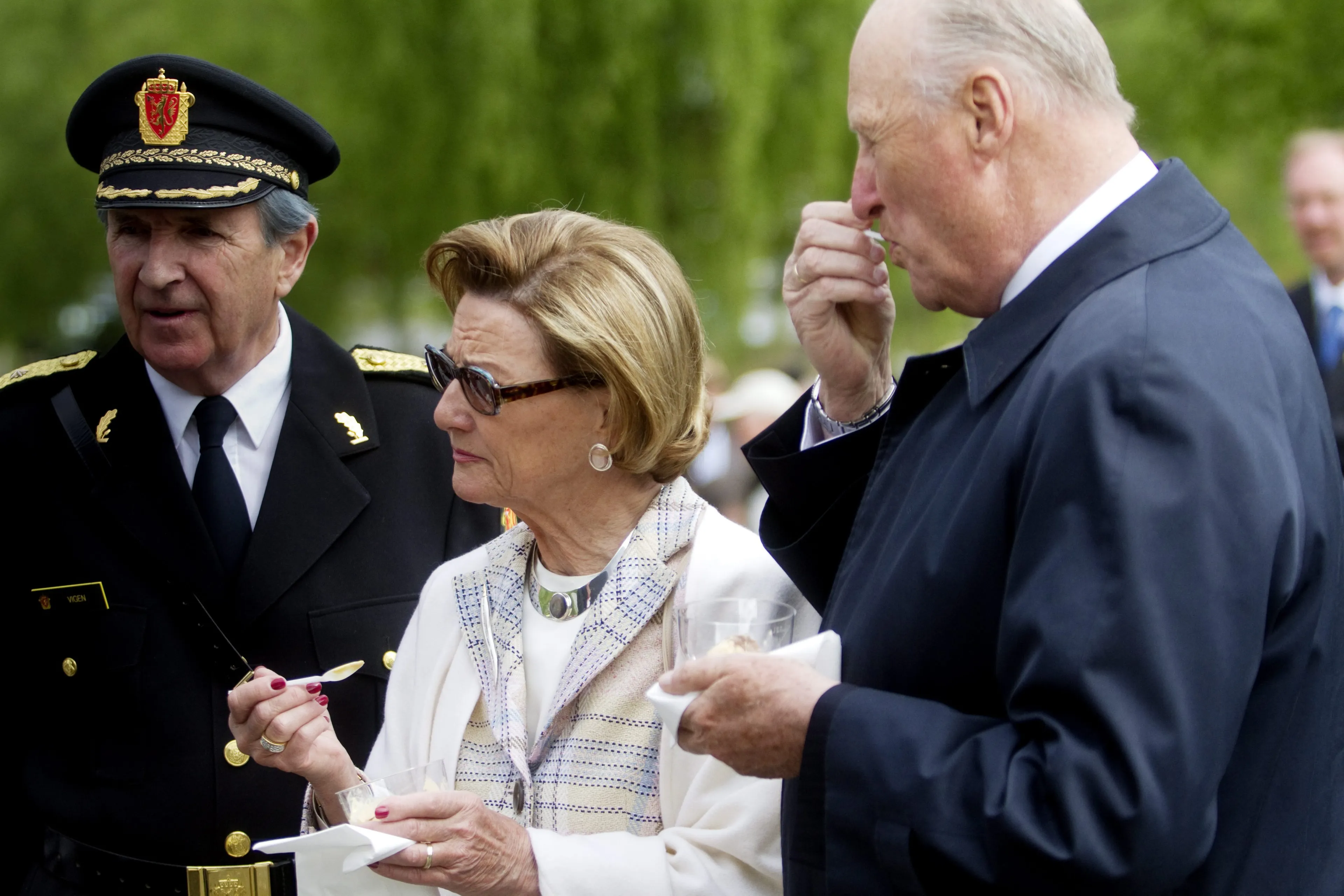 Tijdens de drukke planning van het Noorse koningspaar door, moet je soms ook wat tijd inlassen om wat te eten. Tijdens een streekbezoek in Noorwegen worden koning Harald en koningin Sonja getrakteerd op een ijsje die ze meteen opeten.