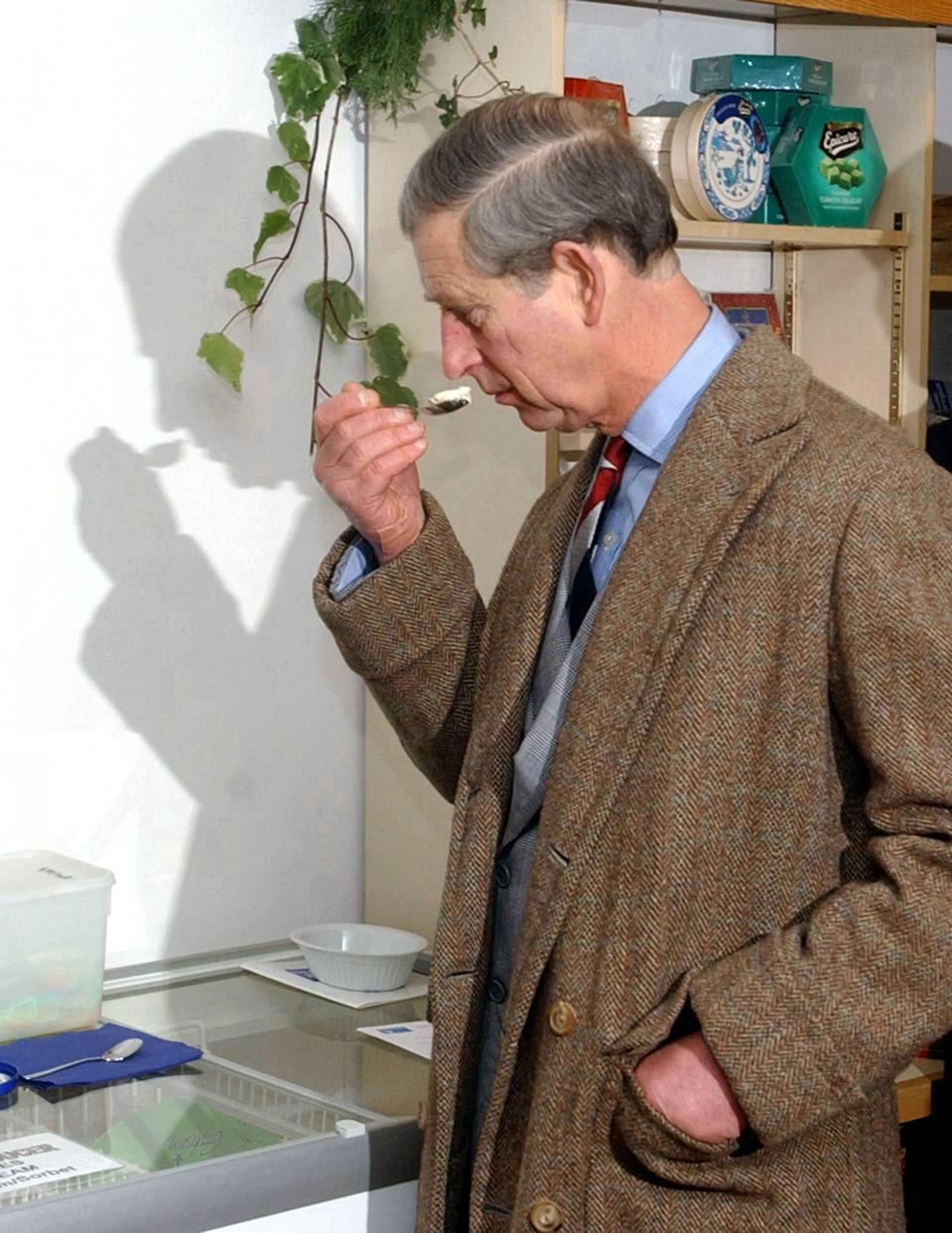 Als prins en inmiddels koning mag Charles tijdens bezoeken veel verschillende hapjes proeven. Ook ijs laat hij – letterlijk – niet aan zijn neus voorbijgaan. De toenmalige prins van Wales neemt nauwkeurig alle geuren van de lokale lekkernij in zich op voordat hij een hap neemt.
