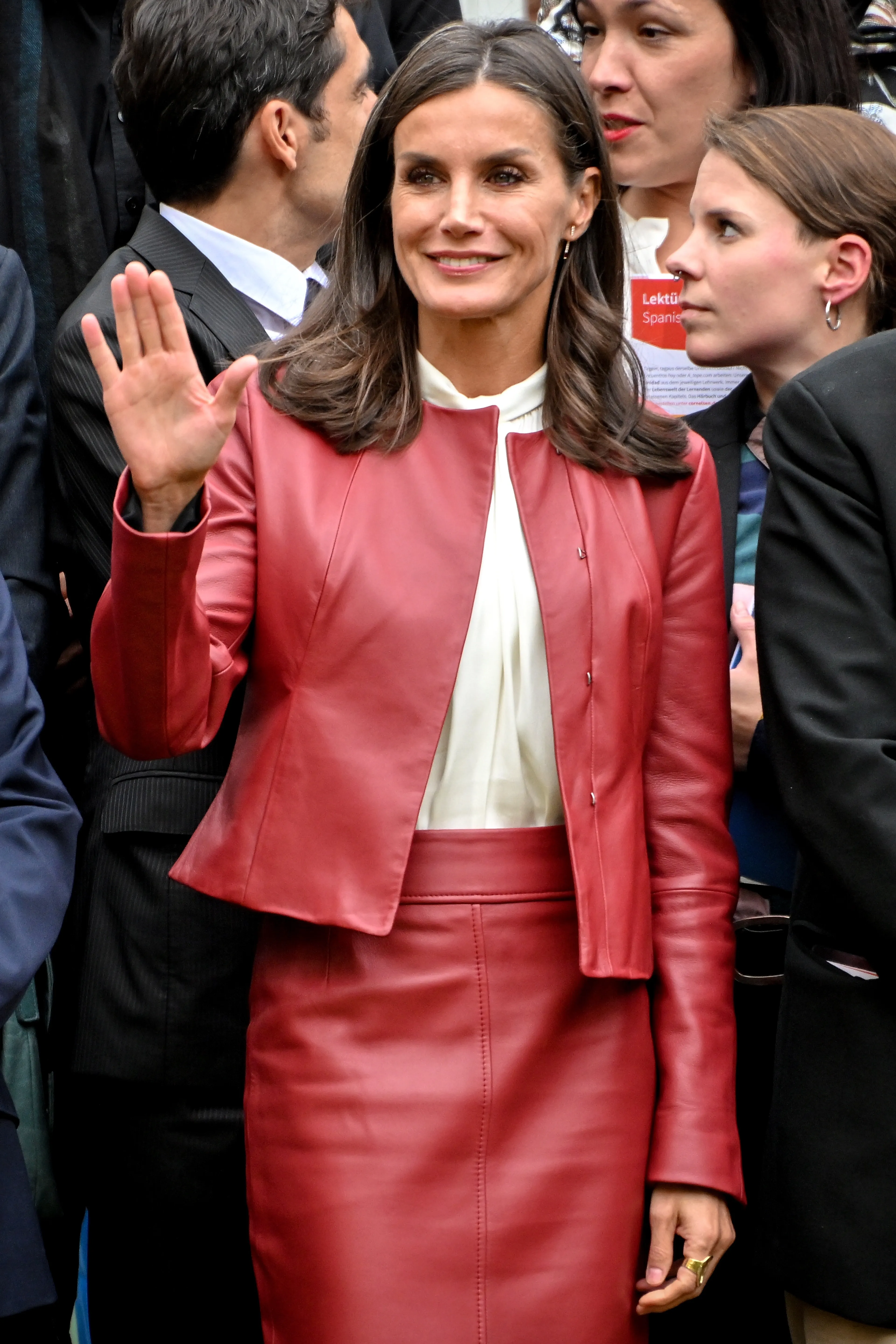 Hoe anders is dat bij de Spaanse koningin Letizia die regelmatig voor een (imitatie-)leren item kiest. Ook zij draagt regelmatig een leren rok die ze combineert met een blouse met volants. Een ultieme mix van vrouwelijk en sexy, maar de outfit is tevens heel klassiek en netjes. Vooral de kleur rood staat de Spaanse goed. En de rok? Die heeft hertogin Meghan ook!
