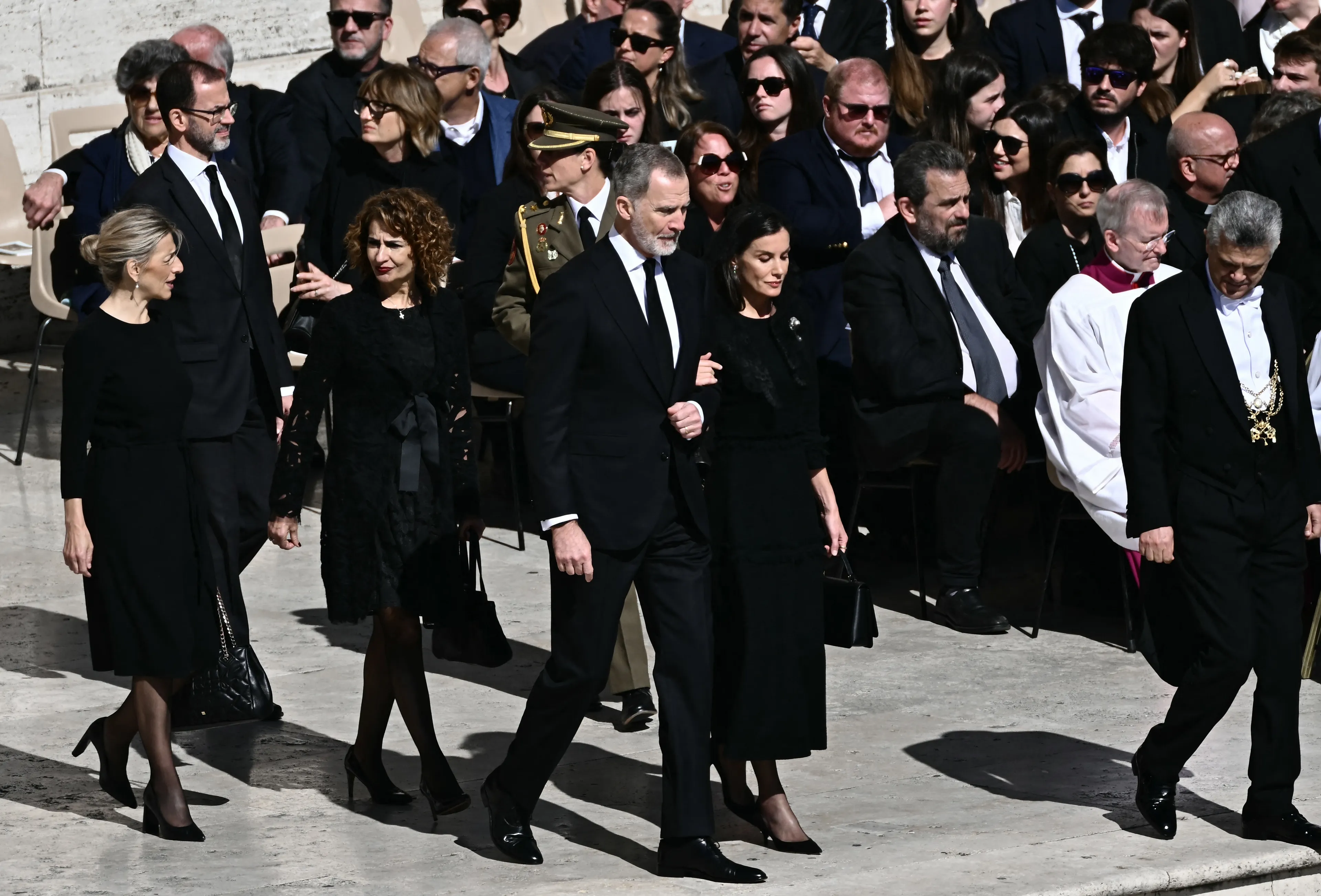 De uitvaartsmis begint om 10:00 uur op het Sint-Pietersplein in Vaticaanstad. Voorafgaand aan de dienst arriveren ook de koninklijke gasten. Zij worden bij aankomst eerst langs de kist van paus Franciscus geleid die bij het hoofdaltaar van de Sint-Pietersbasiliek staat. Onder hen zijn de koningsparen uit Zweden, Spanje, België, Jordanië. Verder zijn het kroonprinselijk paar uit Noorwegen, het prinselijk paar uit Monaco en het groothertogelijk paar uit Luxemburg aanwezig. Koningin Mary van Denemarken is er vandaag in haar eentje bij. Het bezoek van koning Frederik aan Japan dat tot en met vrijdag duurde, is mogelijk de reden dat hij er niet bij is. Ook prins William is alleen, als vertegenwoordiger van koning Charles.