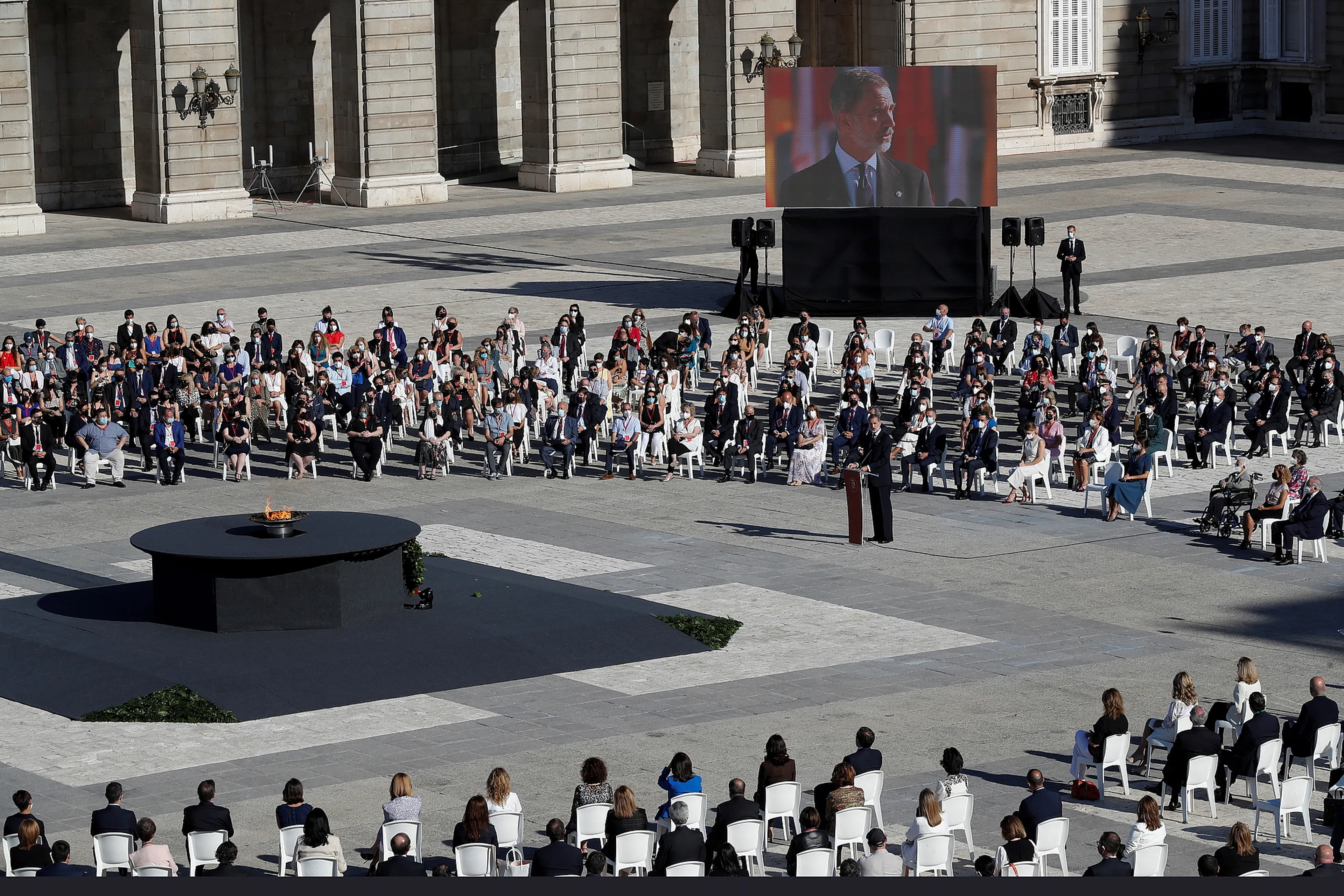 In Spanje zijn vrijdagochtend de ongeveer 81.000 coronadoden herdacht met een speciale ceremonie in Madrid, onder leiding van koning Felipe VI. De ceremonie werd ook gebruikt om zorgpersoneel te eren. Ongeveer 700 mensen waren op de plechtigheid voor het koninklijk paleis afgekomen.