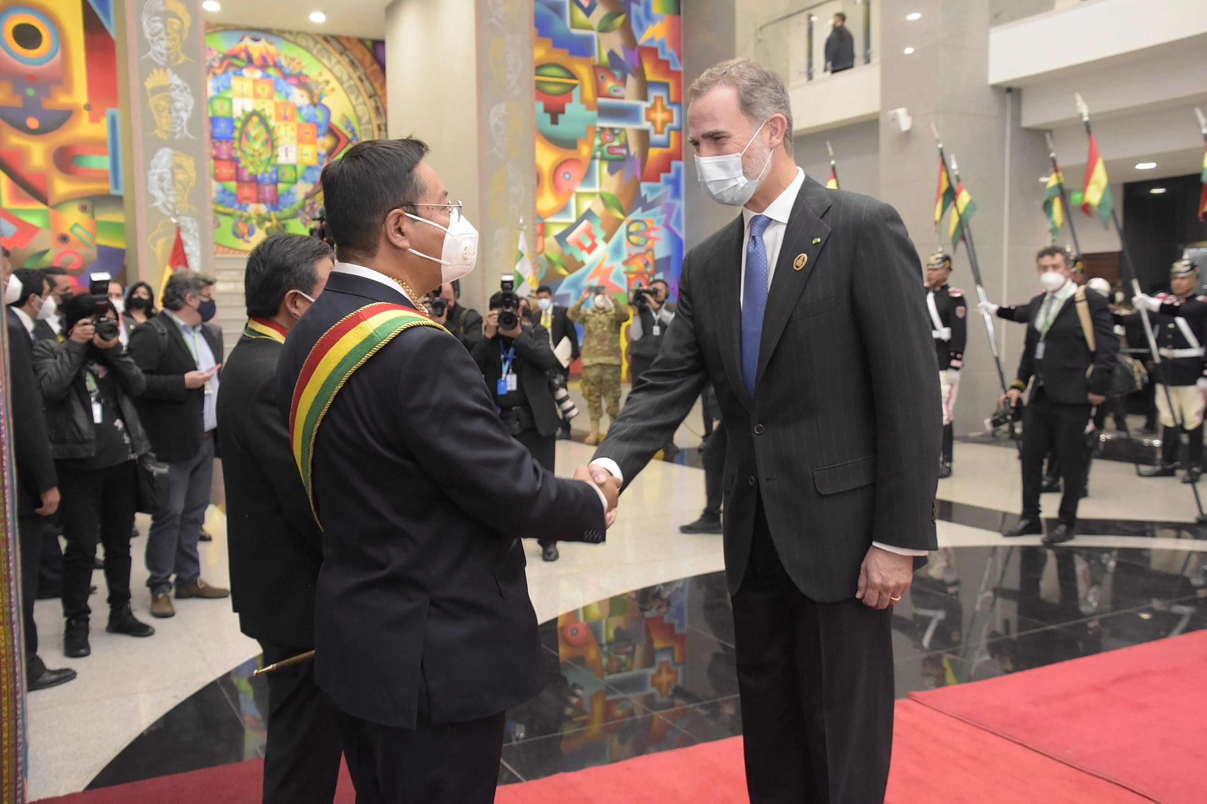 De Spaanse koning Felipe was dit weekend ver van huis. De koning vloog zaterdag naar de Boliviaanse stad La Paz, waar hij zondag de inauguratie bijwoonde van de nieuwe president Luis Arce van Bolivia.